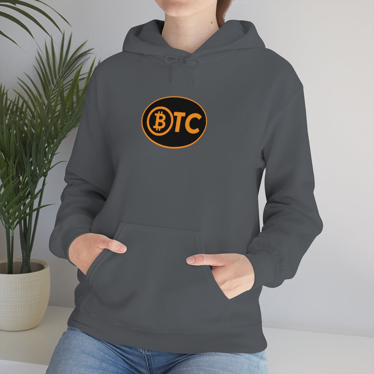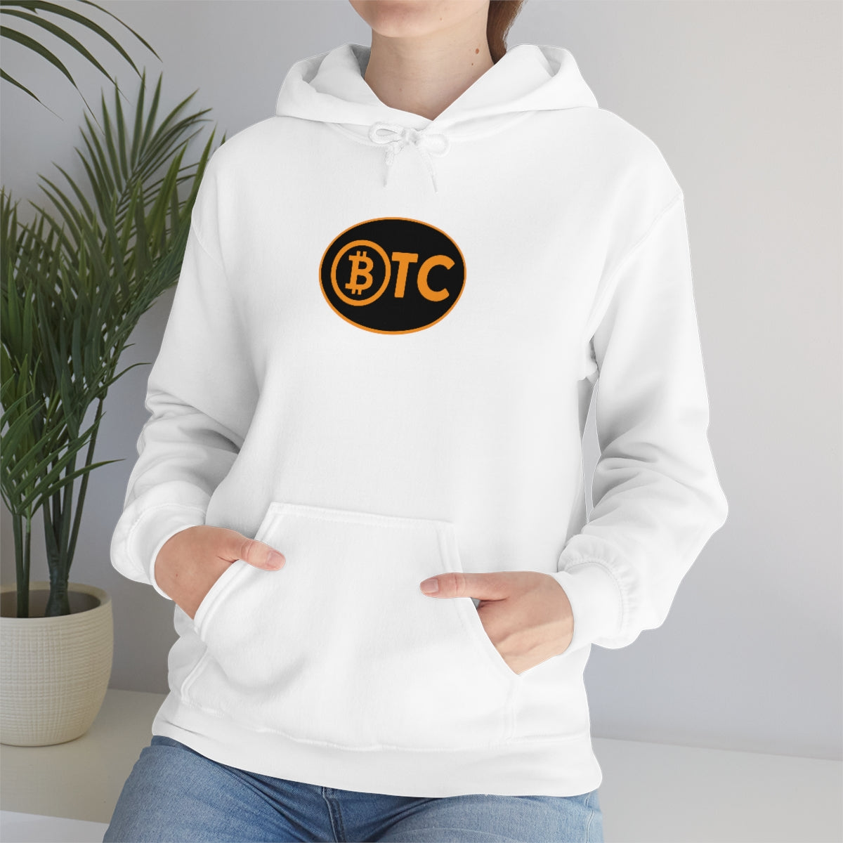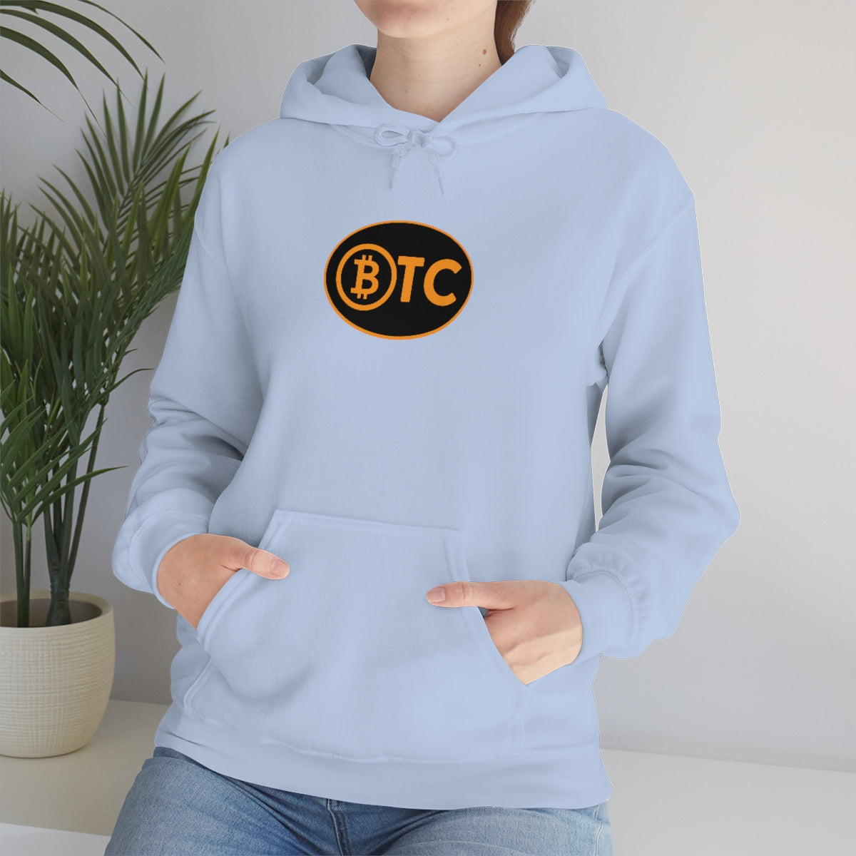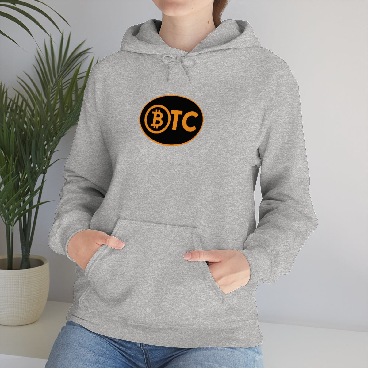 Show your pride in Bitcoin with this awesome hoodie with BTC logo inspired by the European country code decals. This unisex heavy blend hooded sweatshirt is relaxation itself. Made with a thick blend of cotton and polyester, it feels plush, soft and warm, a perfect choice for any cold day. In the front, the spacious kangaroo pocket adds daily practicality while the hood's drawstring is the same color as the base sweater for extra style points.