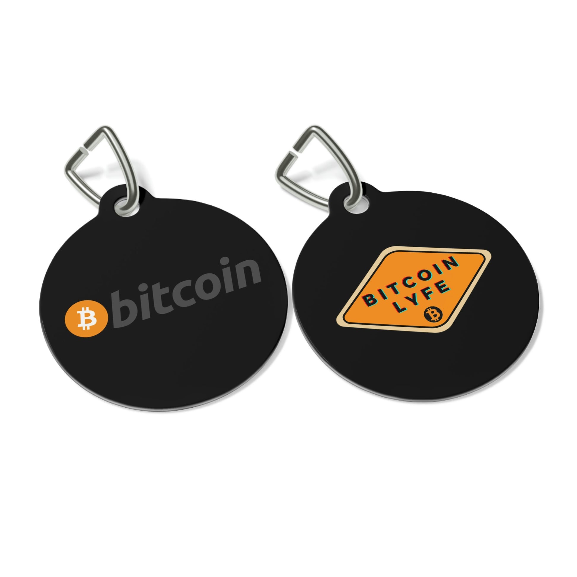 BItcoin pet tags provide a fresh way to spice up a furry friend's collar. The tag and clip are both made of metal. This increased durability comes in handy, as collar pieces can snag on brush, corners, etc.