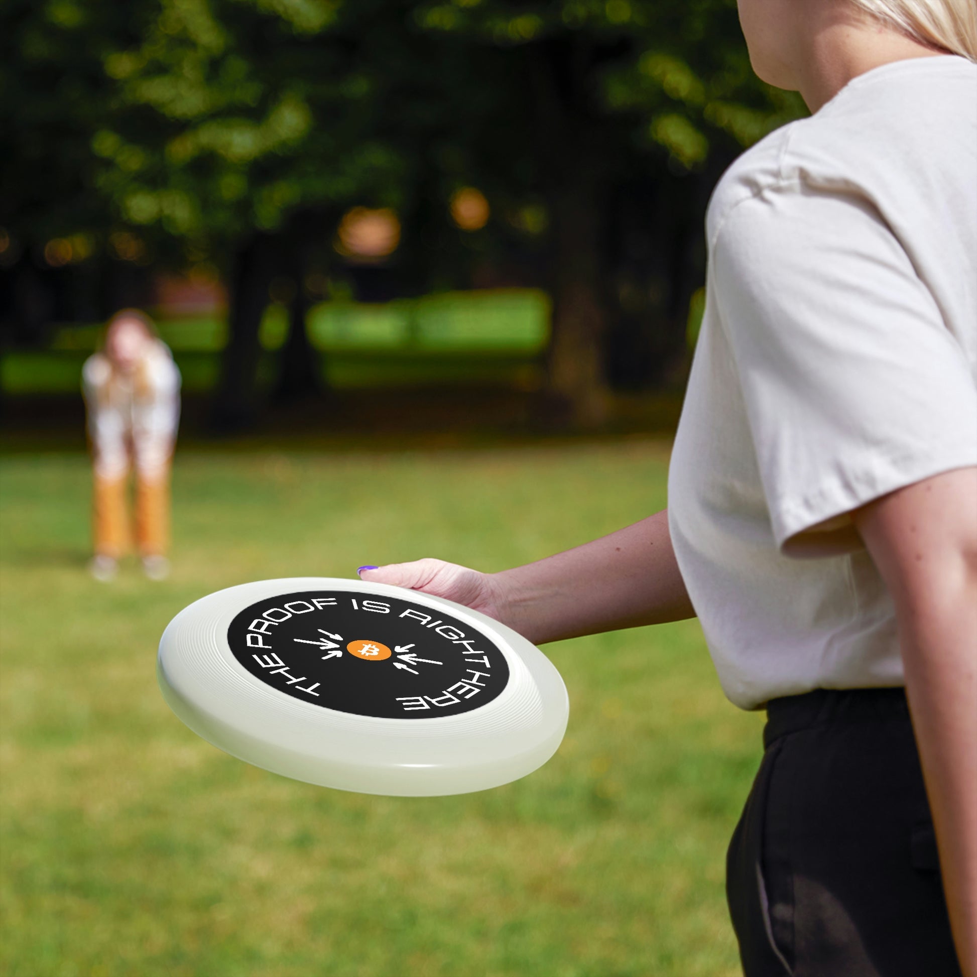 The iconic Wham-O frisbee is here and it carries an awesome Bitcoin proof-of-work message message. Thanks to its advanced design, you can count on Wham-O's excellent performance under any weather conditions, while its floating ability makes the perfect choice for serious Ultimate Frisbee action or casual fun. Available in black, white, green, blue, or red colors.