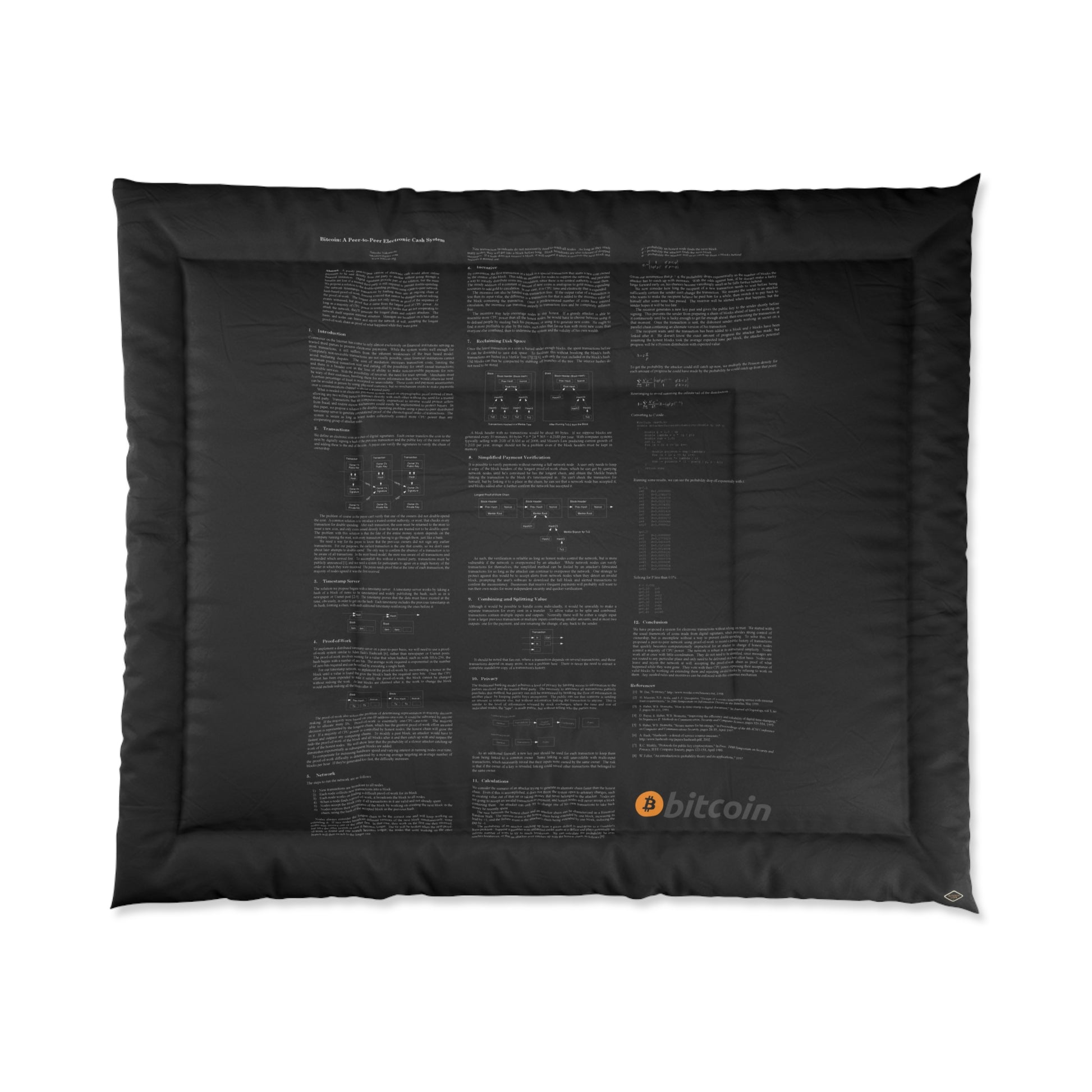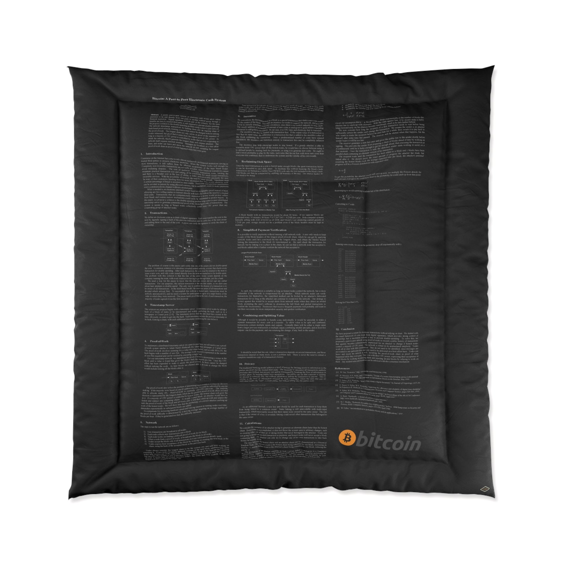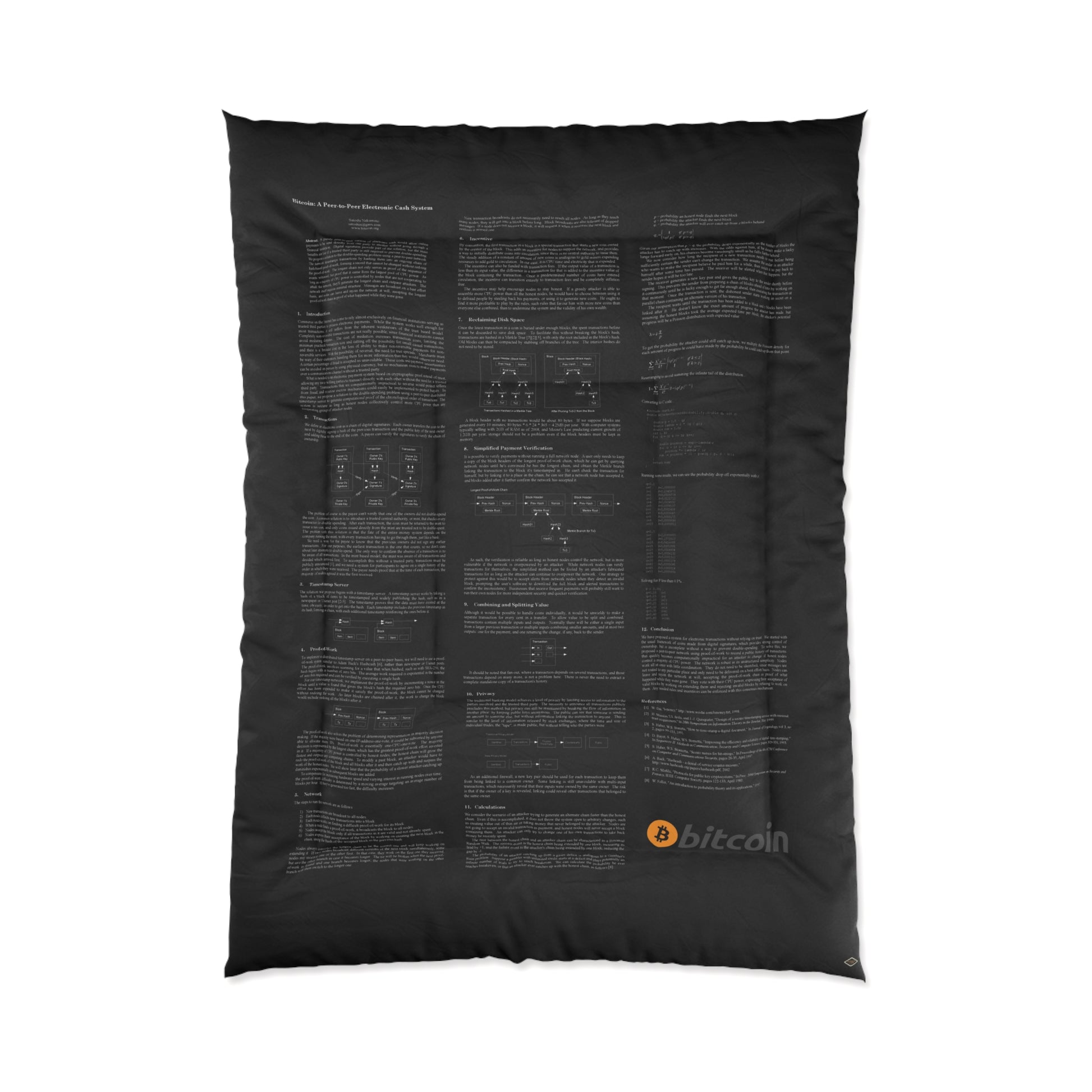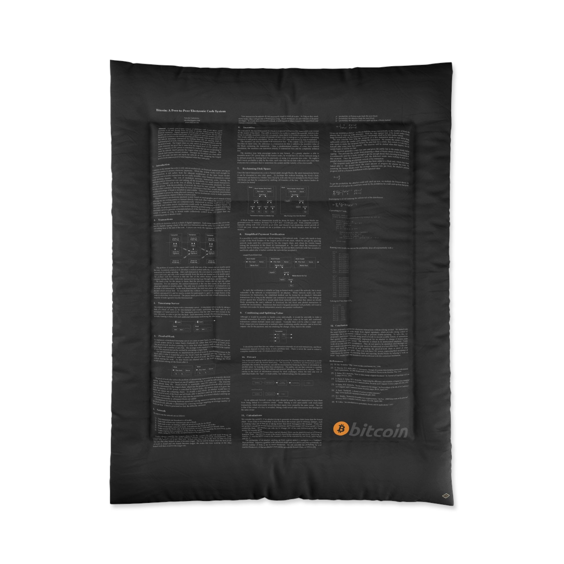 Comfy, fluffy, and warm. Cozy up underneath our snug comforter for a deep and relaxing sleep. This Bitcoin White Paper comforter is the perfect solution for cold days in bed with coffee, waiting for the morning light to peak through the window and wake up the house.