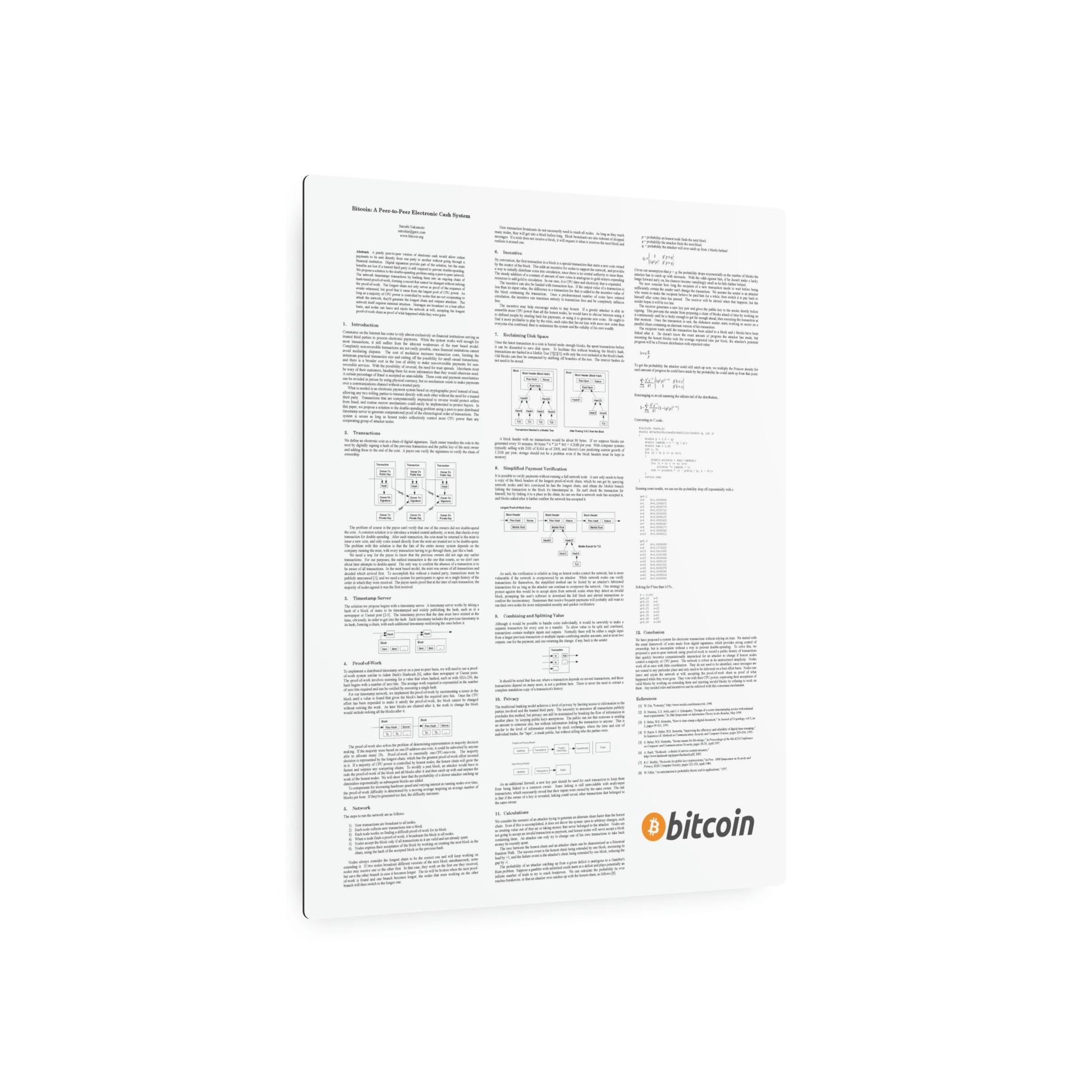 Bitcoin White Paper Metal Art Sign, 16" x 20"