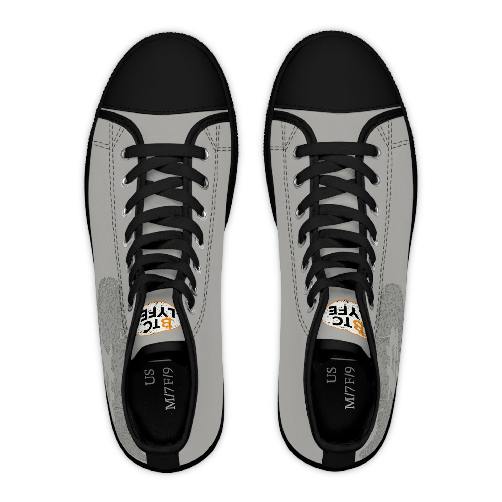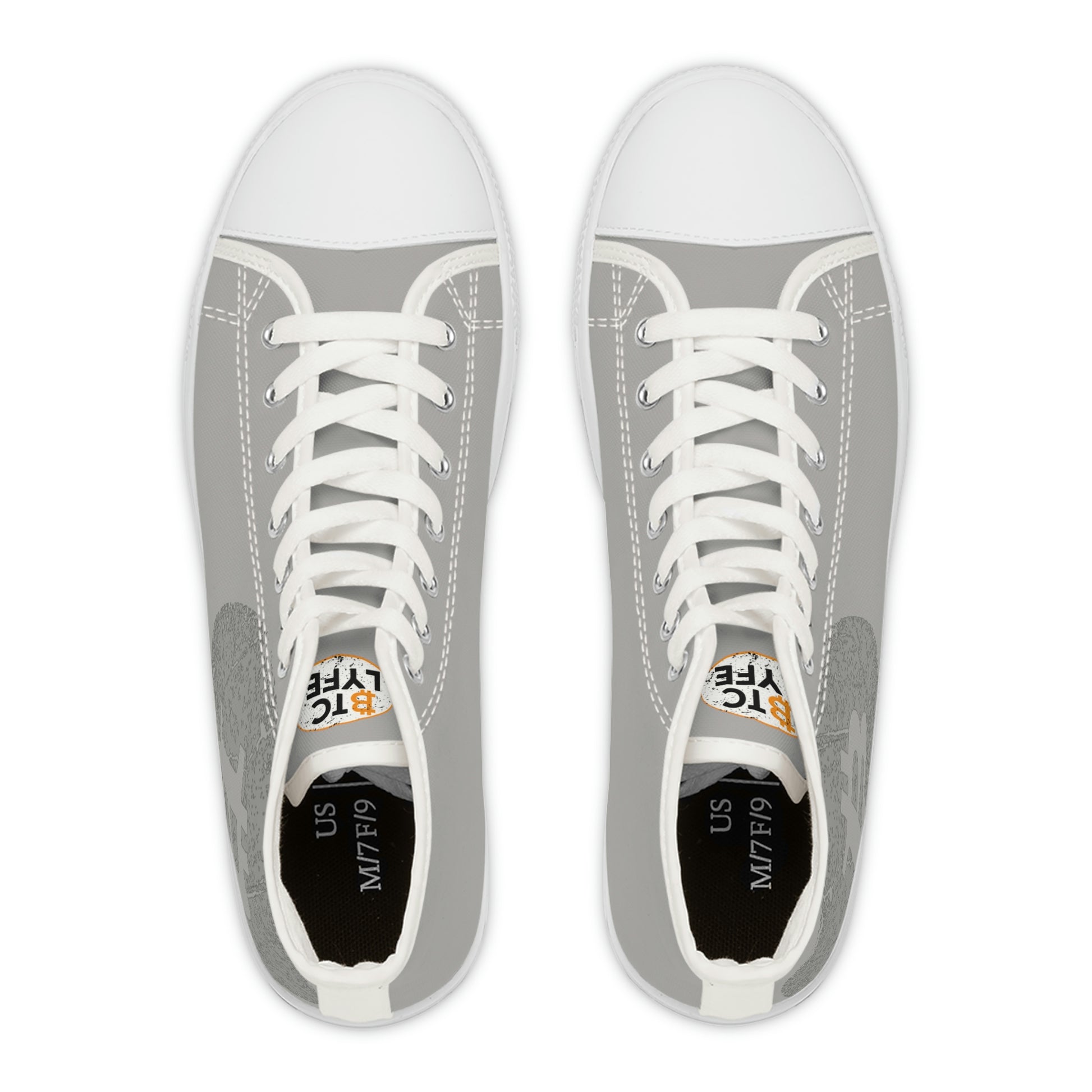 Made with breathable polyester canvas and featuring hi-poly deodorant memory foam insoles, these women's high top sneakers bear all the marks of an awesome shoe. Choose between black or white sole and laces, and enjoy the silver metal eyelets along with the lace-up closure. Add your designs and bring a bespoke staple to life.