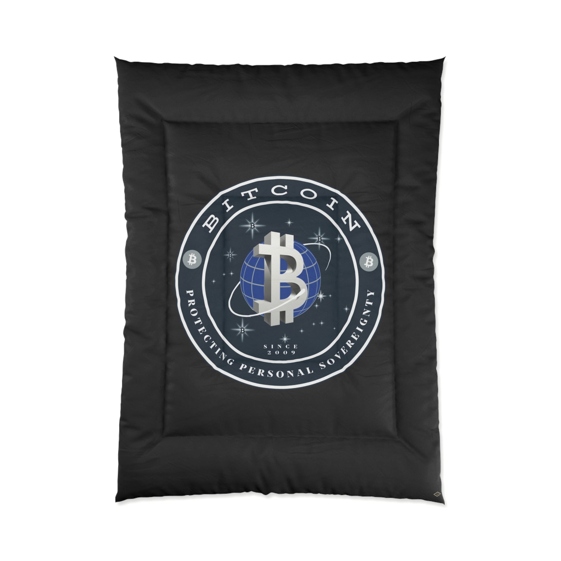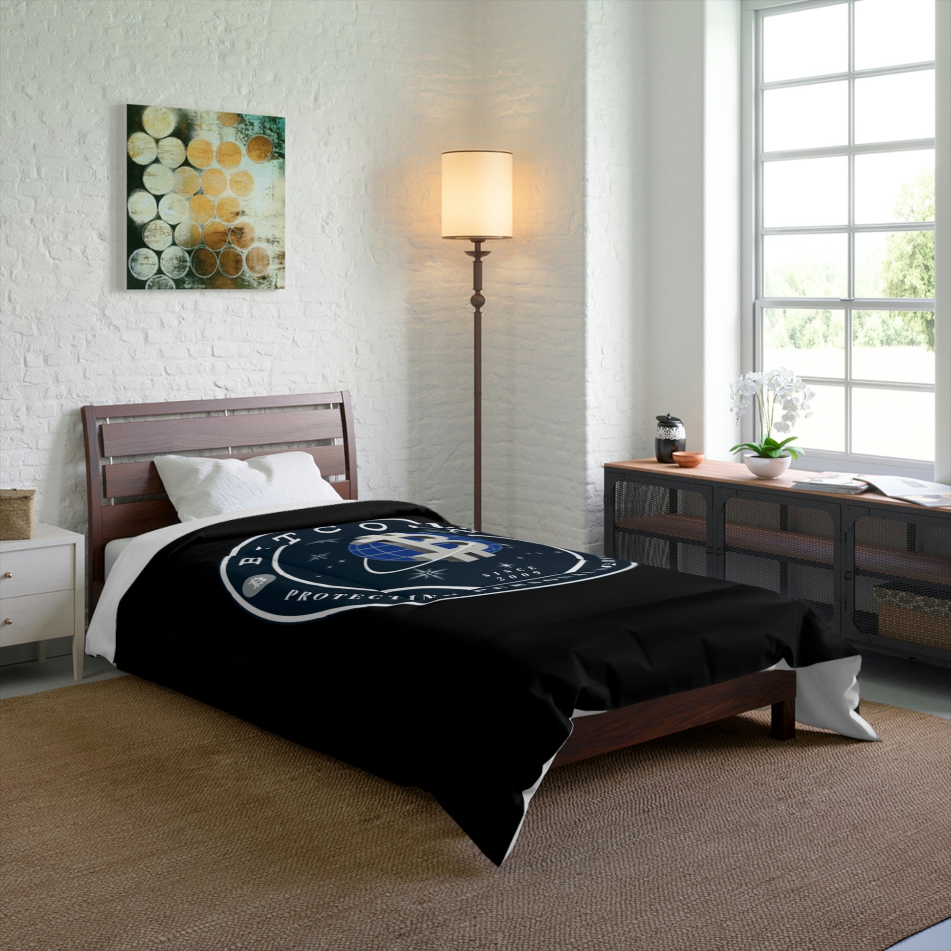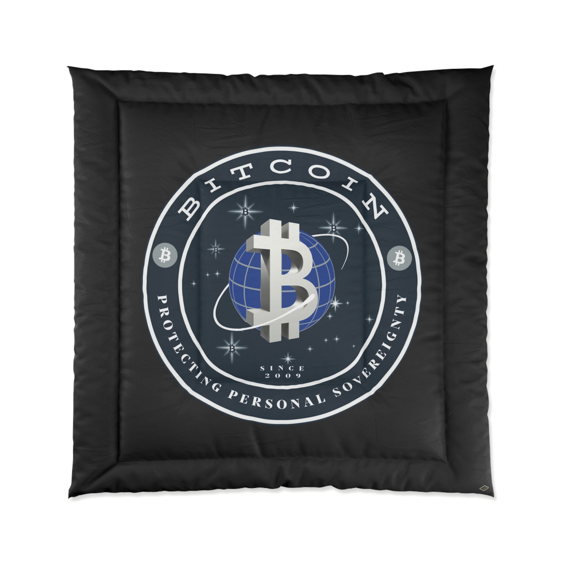 Comfy, fluffy, and warm. Cozy up underneath our snug comforter for a deep and relaxing sleep. This Bitcoin comforter is the perfect solution for cold days in bed with coffee, waiting for the morning light to peak through the window and wake up the house.
