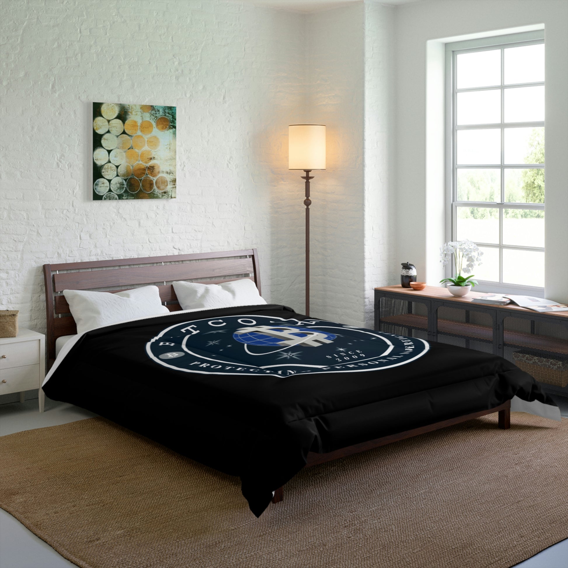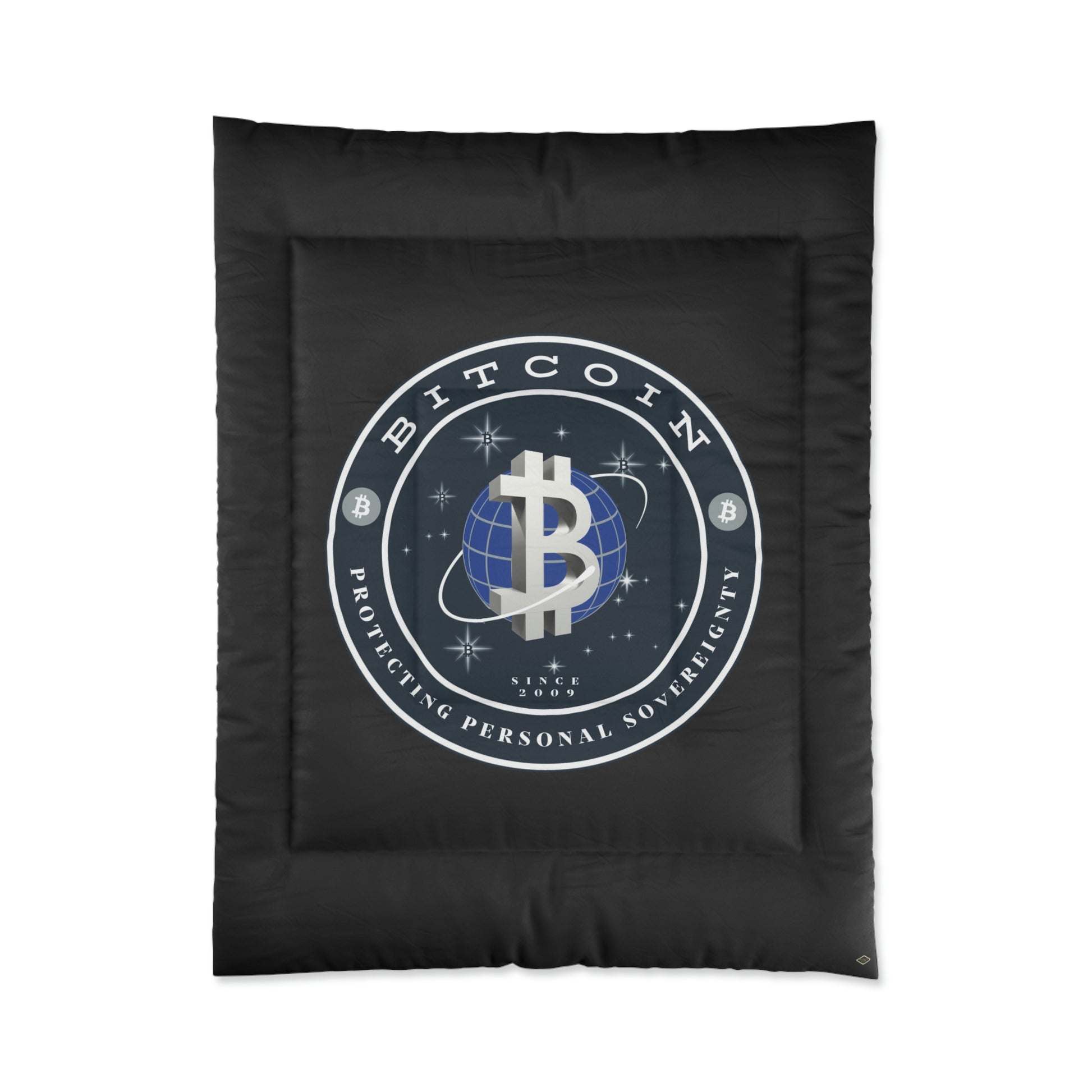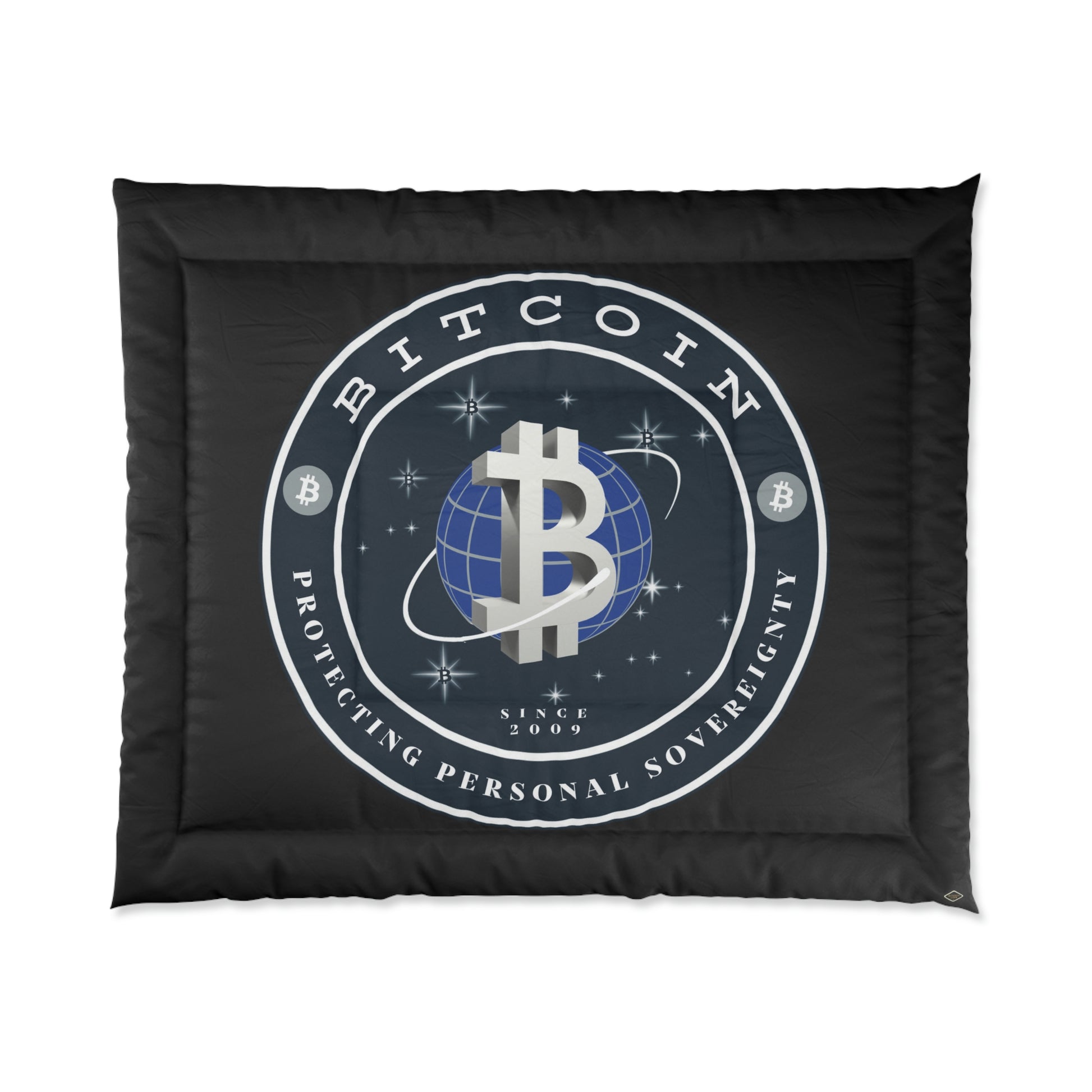 Comfy, fluffy, and warm. Cozy up underneath our snug comforter for a deep and relaxing sleep. This Bitcoin comforter is the perfect solution for cold days in bed with coffee, waiting for the morning light to peak through the window and wake up the house.