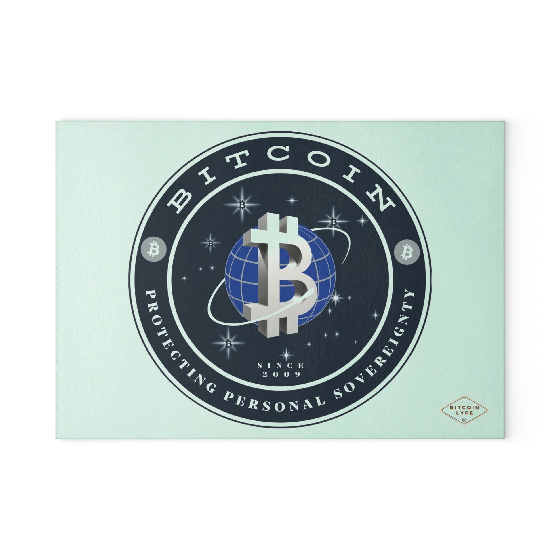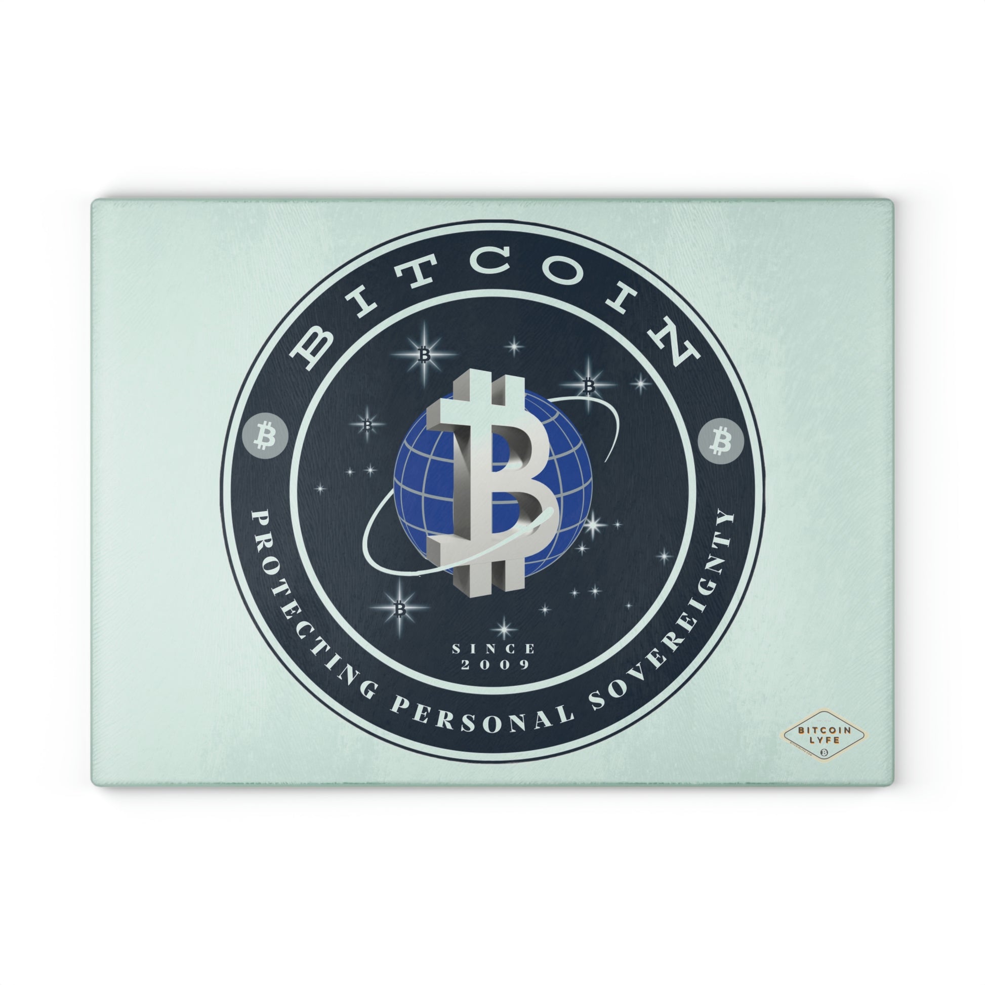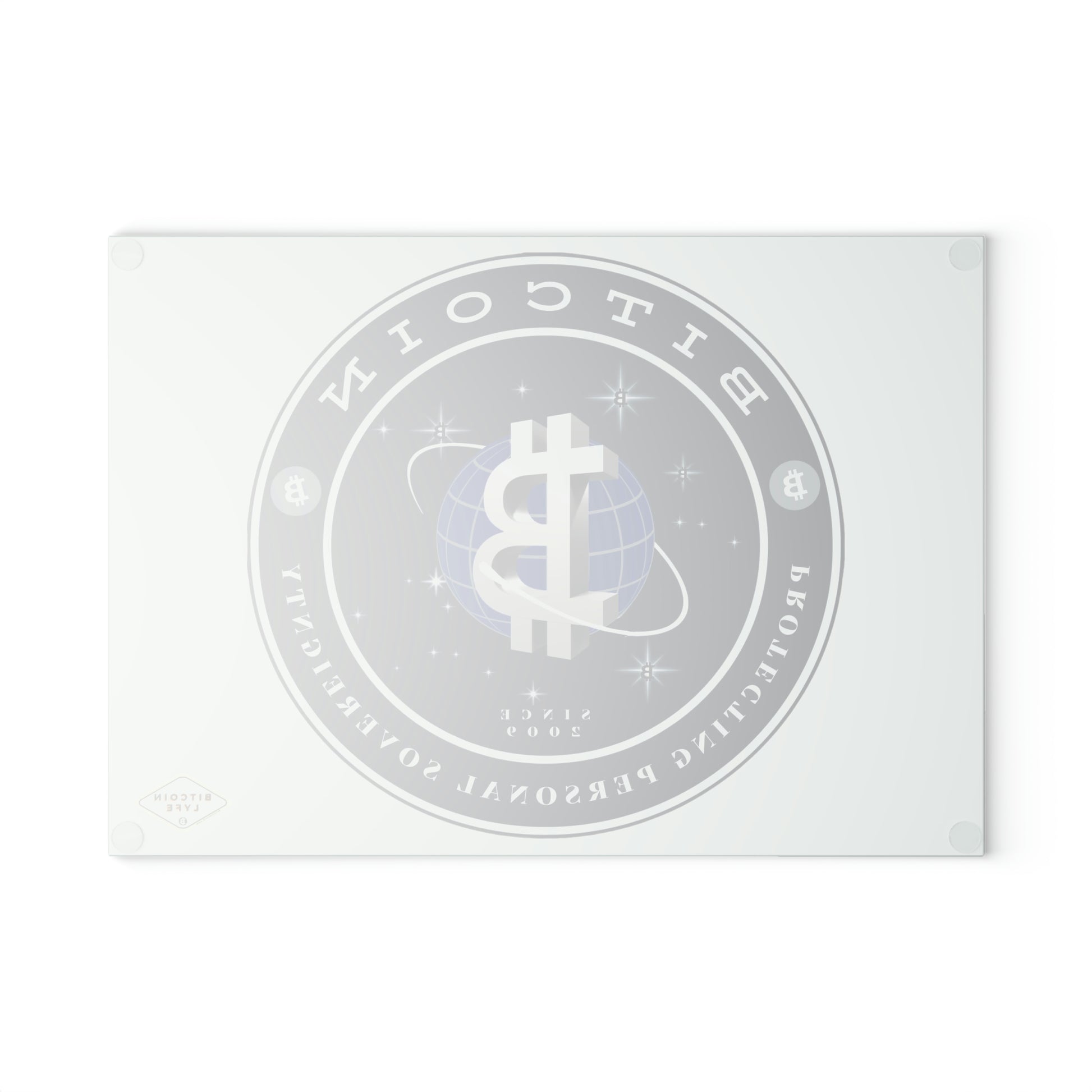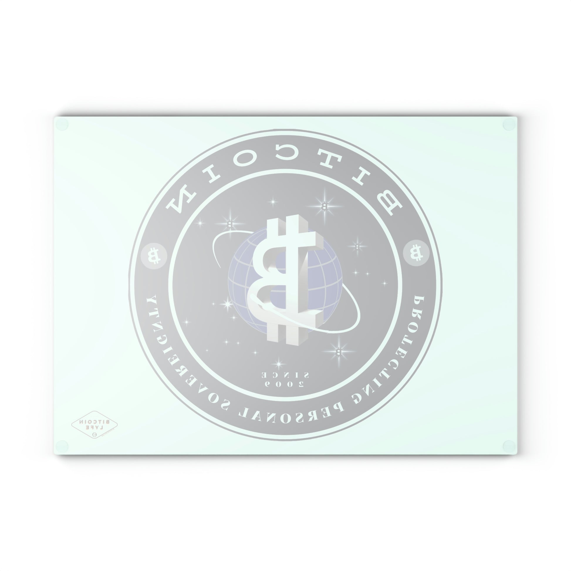 Bring a touch of character into any kitchen with this Bitcoin glass cutting board. Its tampered glass material is robust and helps prepare many a tasty meal for a long time to come. The textured surface makes it an ideal chopping, slicing, and dicing area. Available in two sizes: 8" x 11" and 11" x 15".