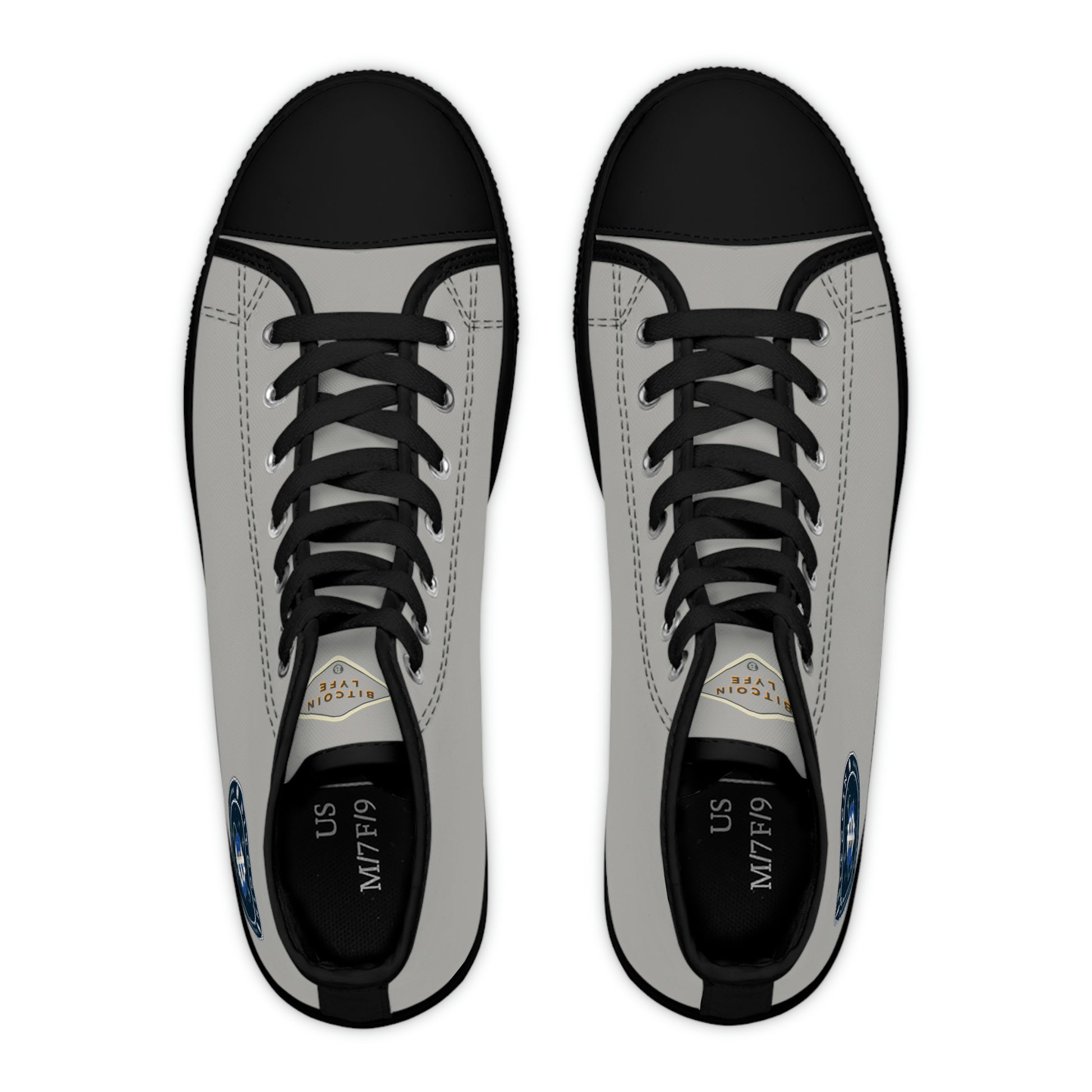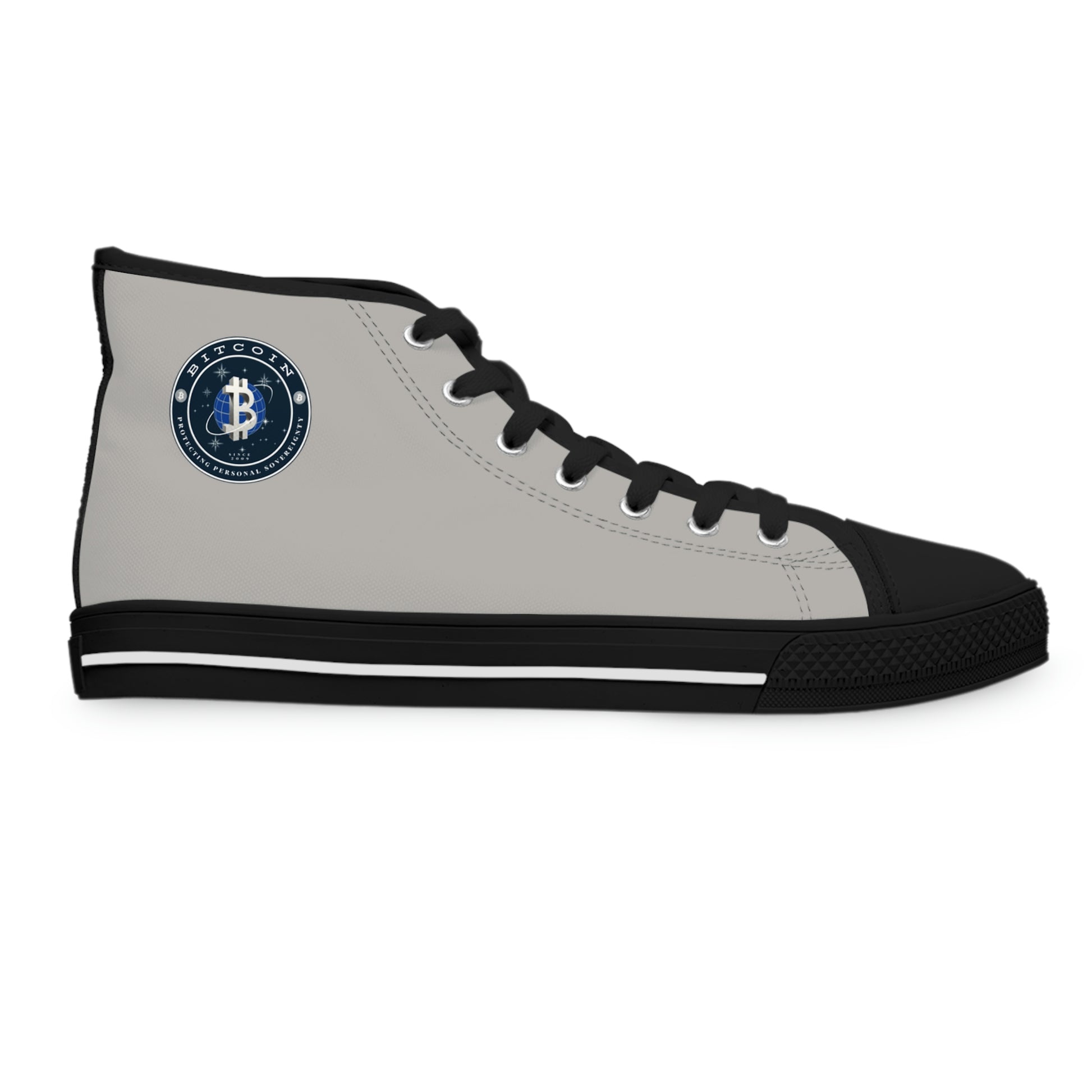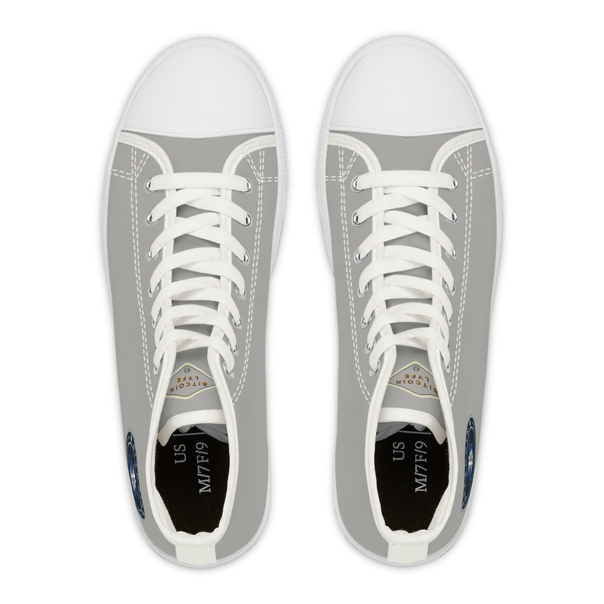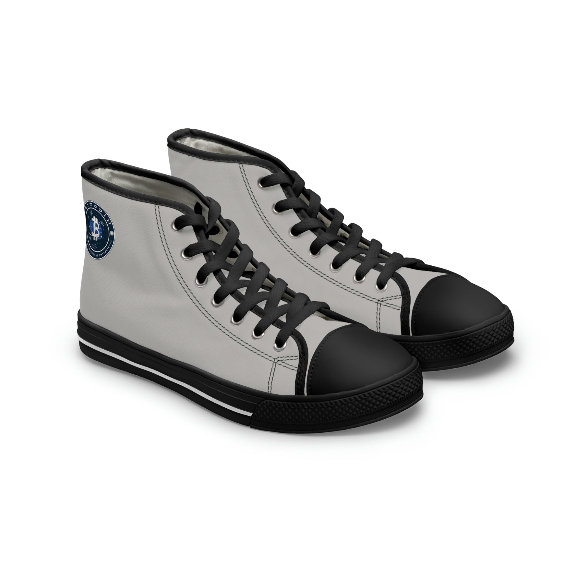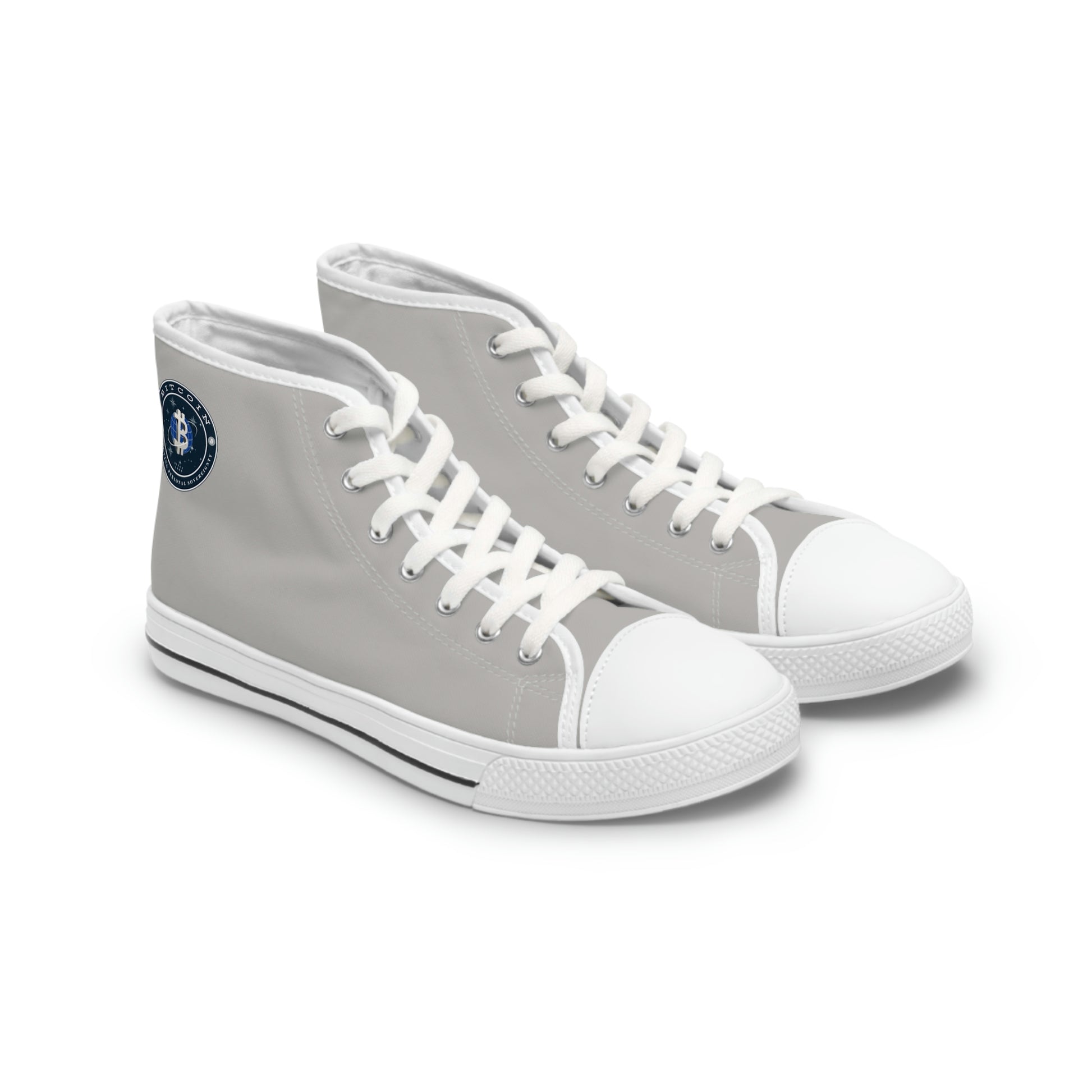 Made with breathable polyester canvas and featuring hi-poly deodorant memory foam insoles, these women's high top sneakers bear all the marks of an awesome shoe. Choose between black or white sole and laces, and enjoy the silver metal eyelets along with the lace-up closure. Add your designs and bring a bespoke staple to life.