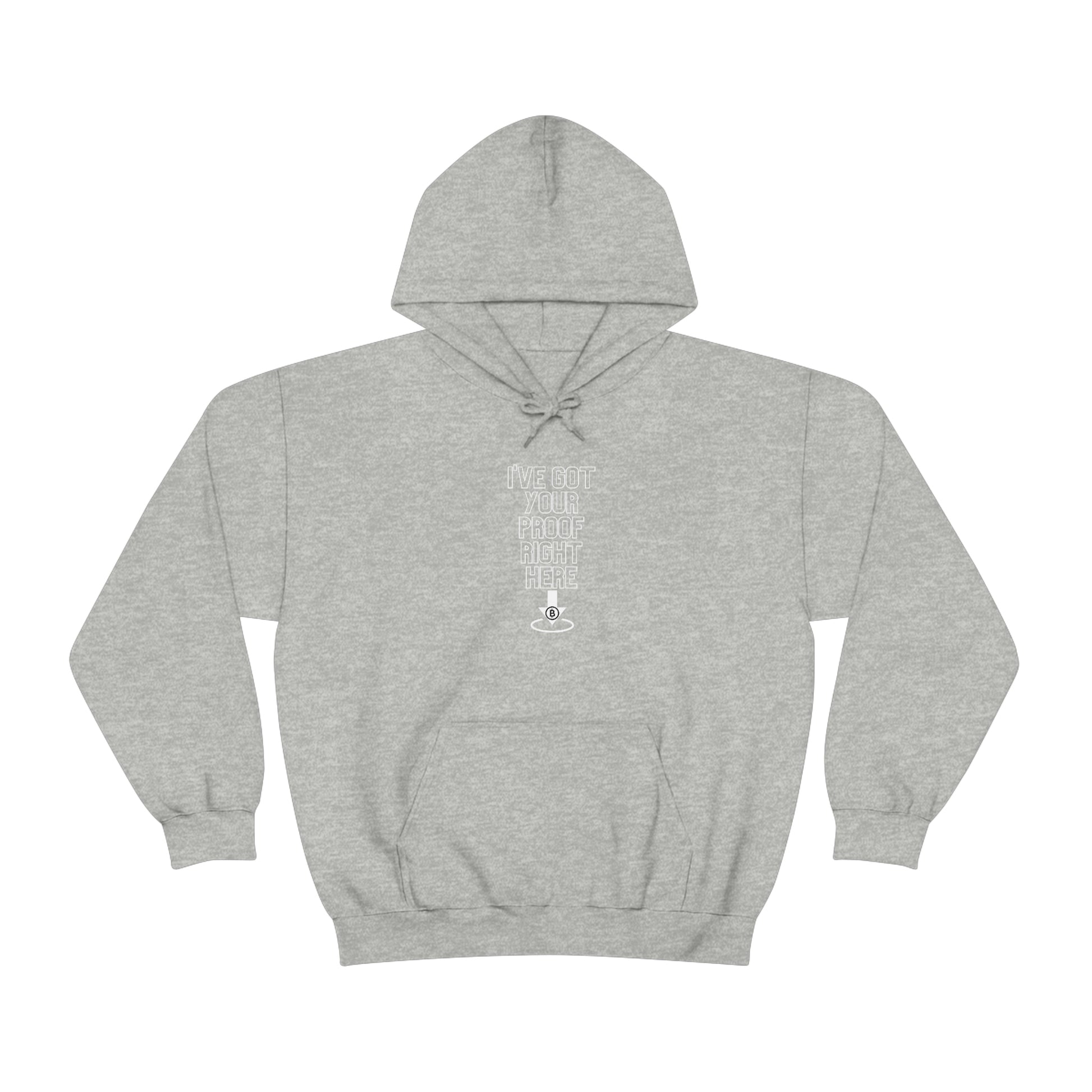 This BTC Proof unisex heavy blend hooded sweatshirt is relaxation itself. Made with a thick blend of cotton and polyester, it feels plush, soft and warm, a perfect choice for any cold day. In the front, the spacious kangaroo pocket adds daily practicality while the hood's drawstring is the same color as the base sweater for extra style points.