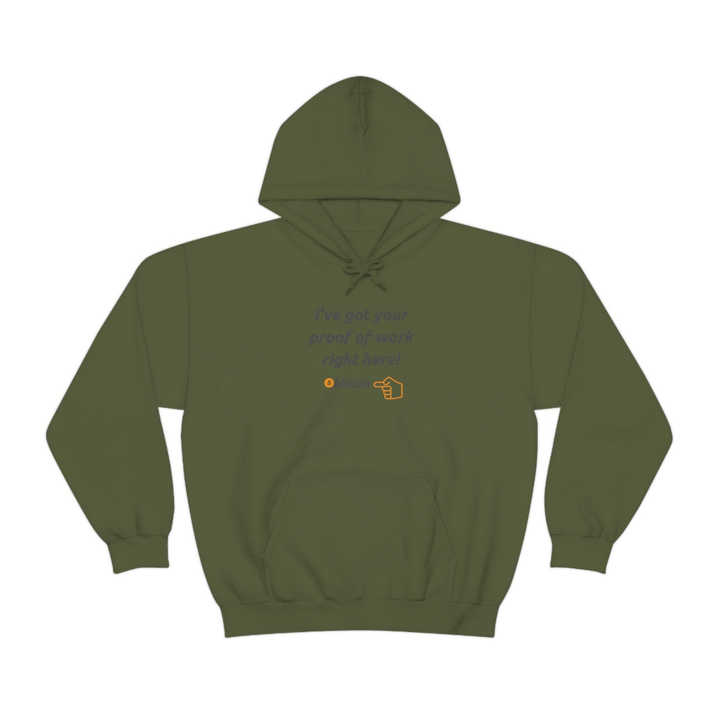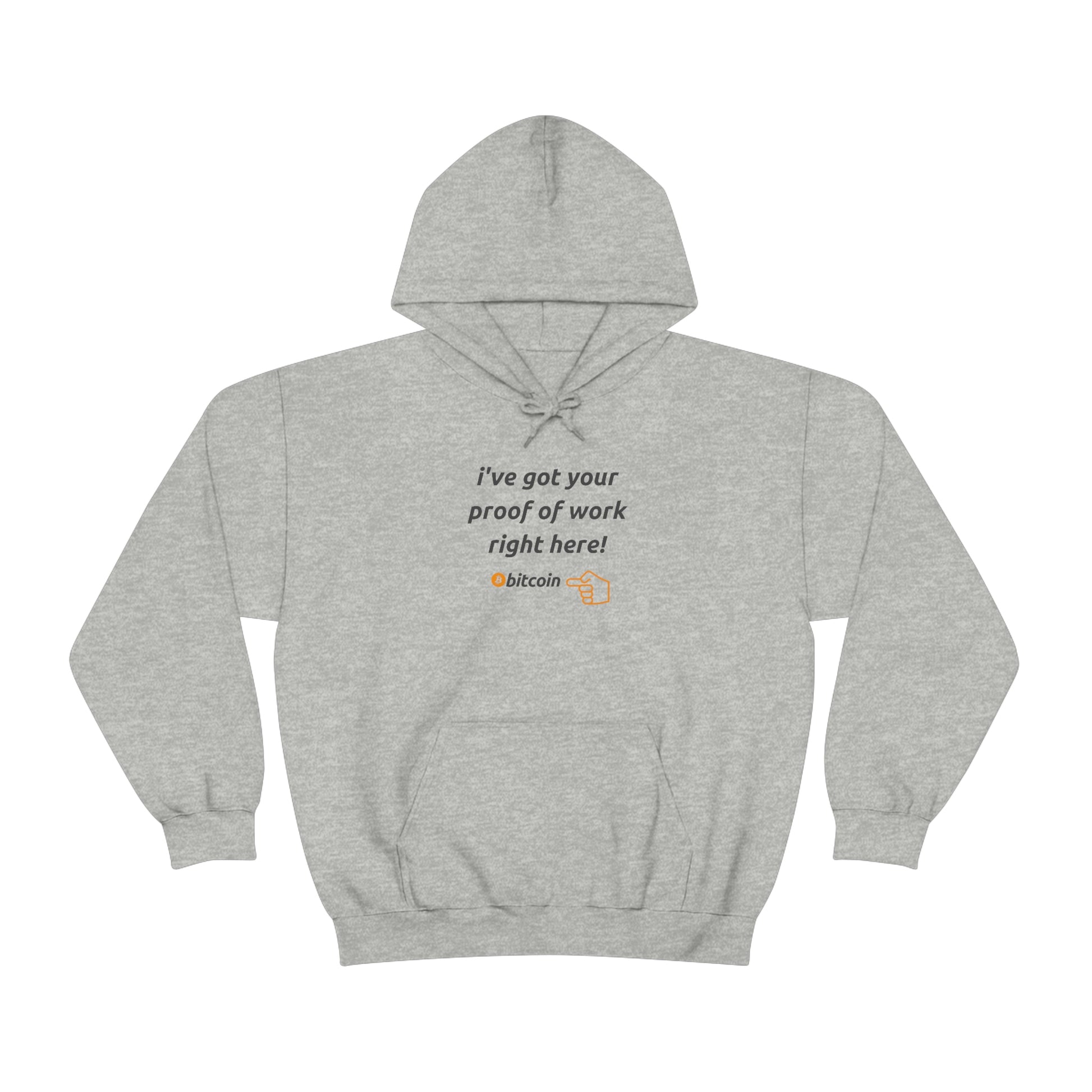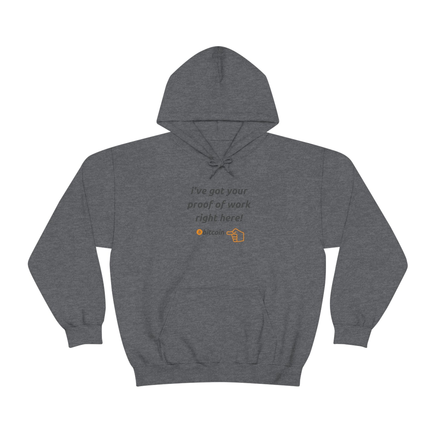This BTC Proof unisex heavy blend hooded sweatshirt is relaxation itself. Made with a thick blend of cotton and polyester, it feels plush, soft and warm, a perfect choice for any cold day. In the front, the spacious kangaroo pocket adds daily practicality while the hood's drawstring is the same color as the base sweater for extra style points.