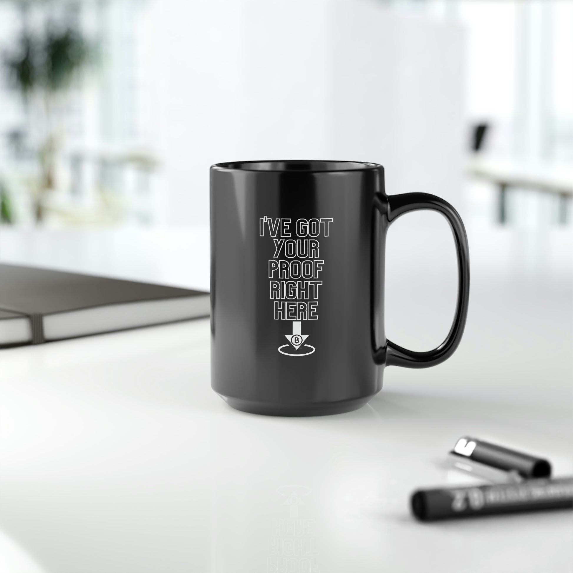 These black mugs come in one size – 15oz (0.44l) – plenty for morning caffeine boosts and hot cups of tea on a rainy day. They're easy to grip and feel sturdy thanks to the C-shaped handle. They're printed on the black ceramic material in picture-perfect quality with a glossy finish.