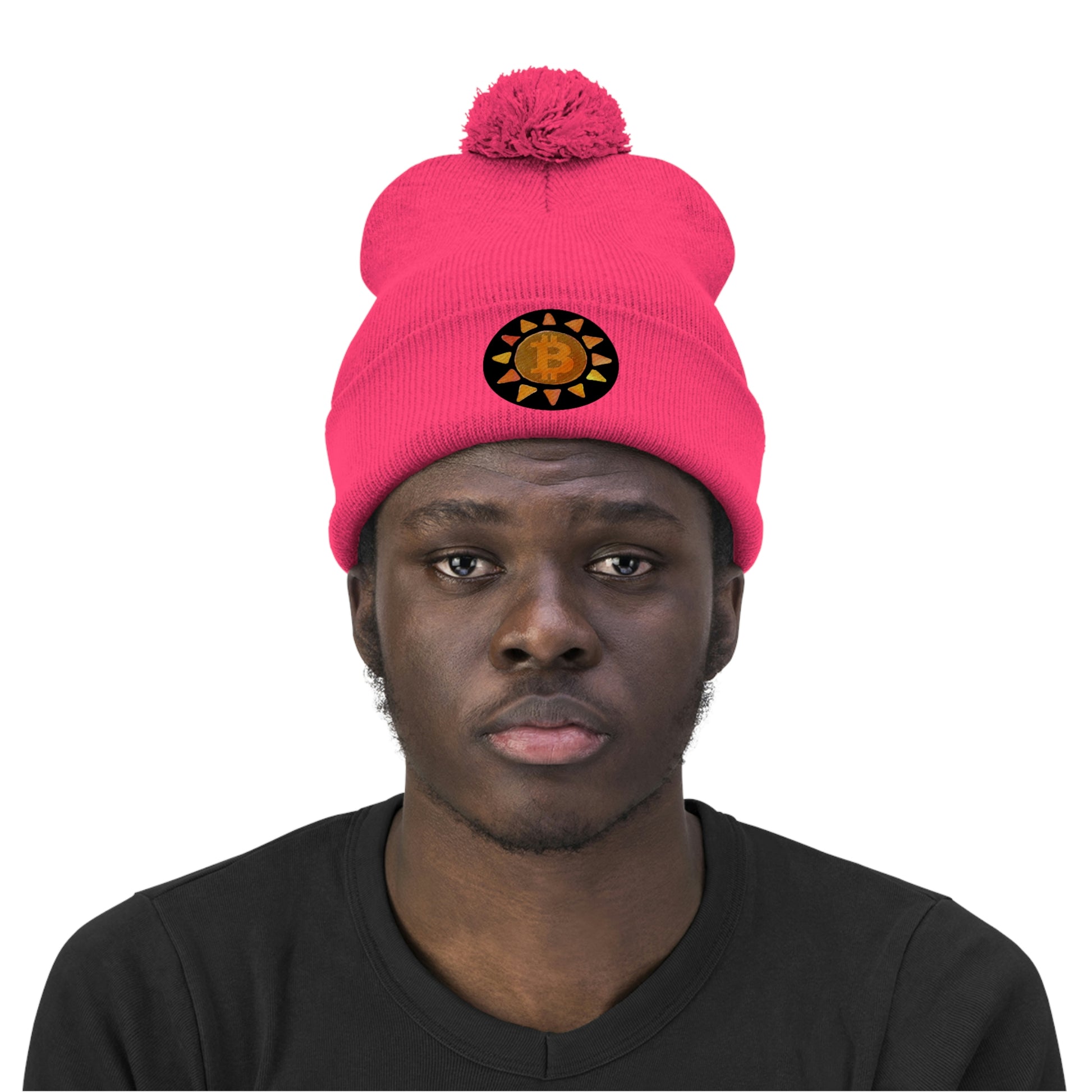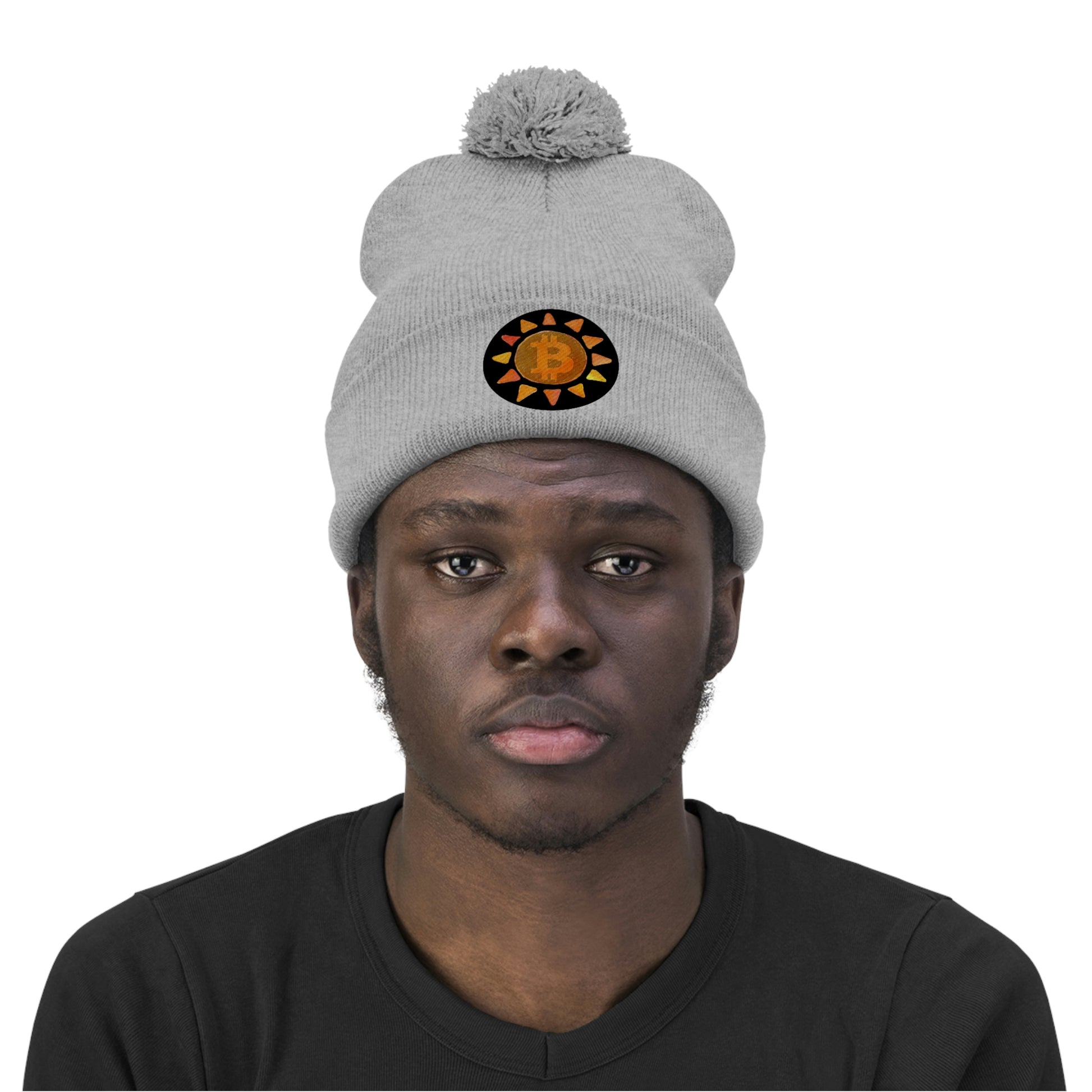 Be festive and fun in style with this Bitcoin Sun Pom Pom Beanie! Mix and match the color options with your winter wardrobe.