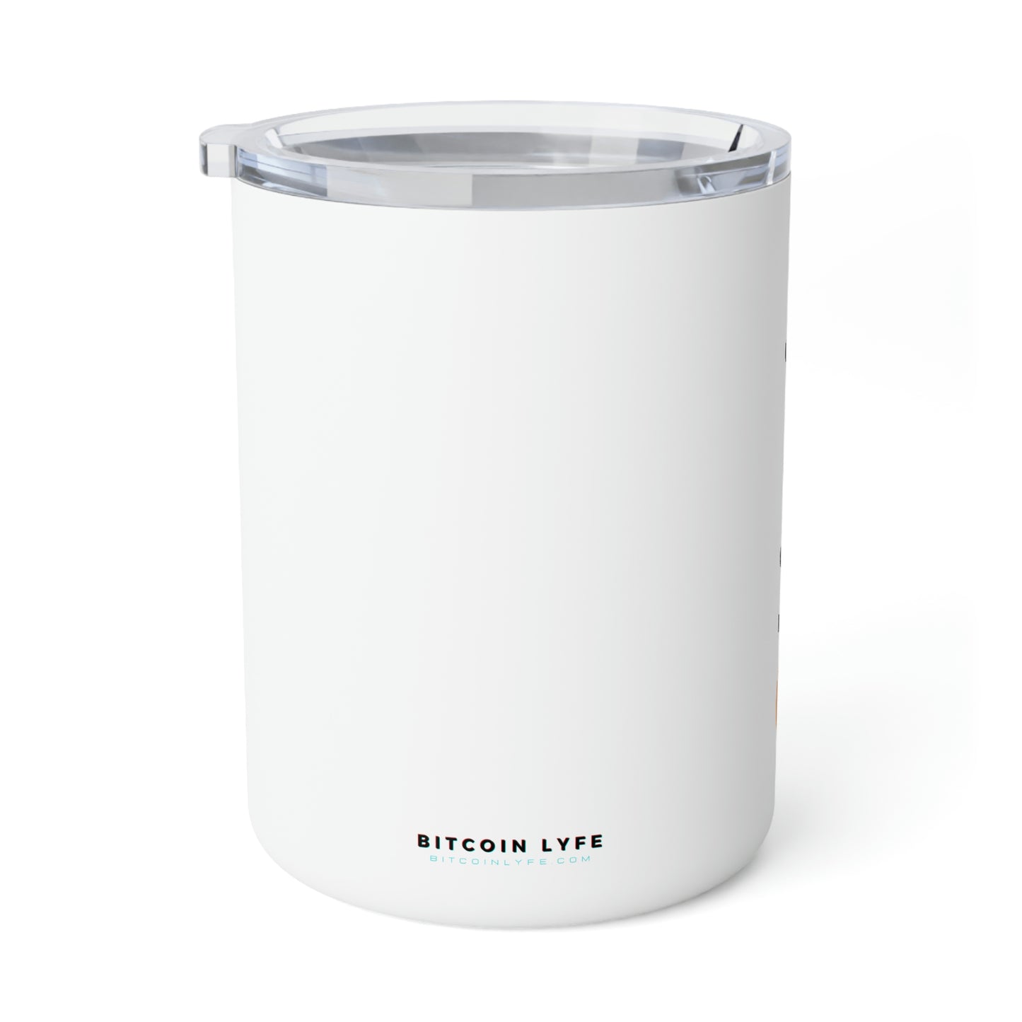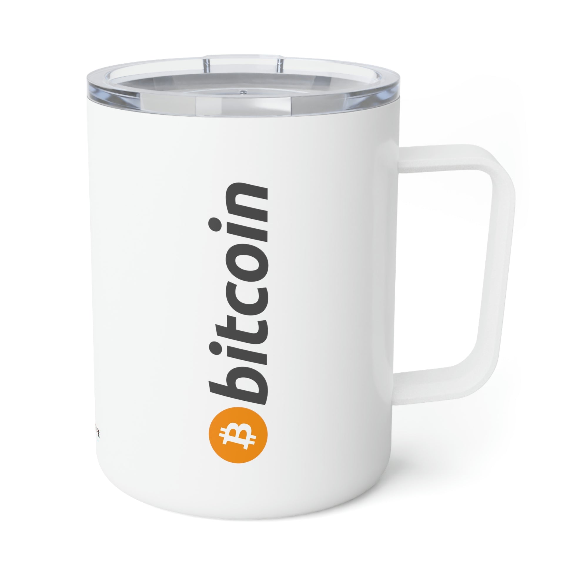 Nothing quite like a refreshing sip of one's favorite beverage in the middle of a long adventure with an awesome Bitcoin-inspired insulated mug. These insulated travel mugs hold 10oz of liquid and come with a robust stainless steel, double wall construction making them a hard-wearing sidekick for the road. The white detailing adds extra style points while the clear acrylic lid adds another layer of practicality to an already functional favorite.