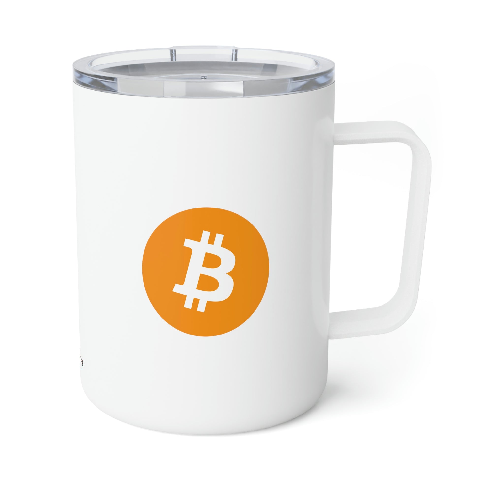 Nothing quite like a refreshing sip of one's favorite beverage in the middle of a long adventure with an awesome Bitcoin-inspired insulated mug. These insulated travel mugs hold 10oz of liquid and come with a robust stainless steel, double wall construction making them a hard-wearing sidekick for the road. The white detailing adds extra style points while the clear acrylic lid adds another layer of practicality to an already functional favorite.