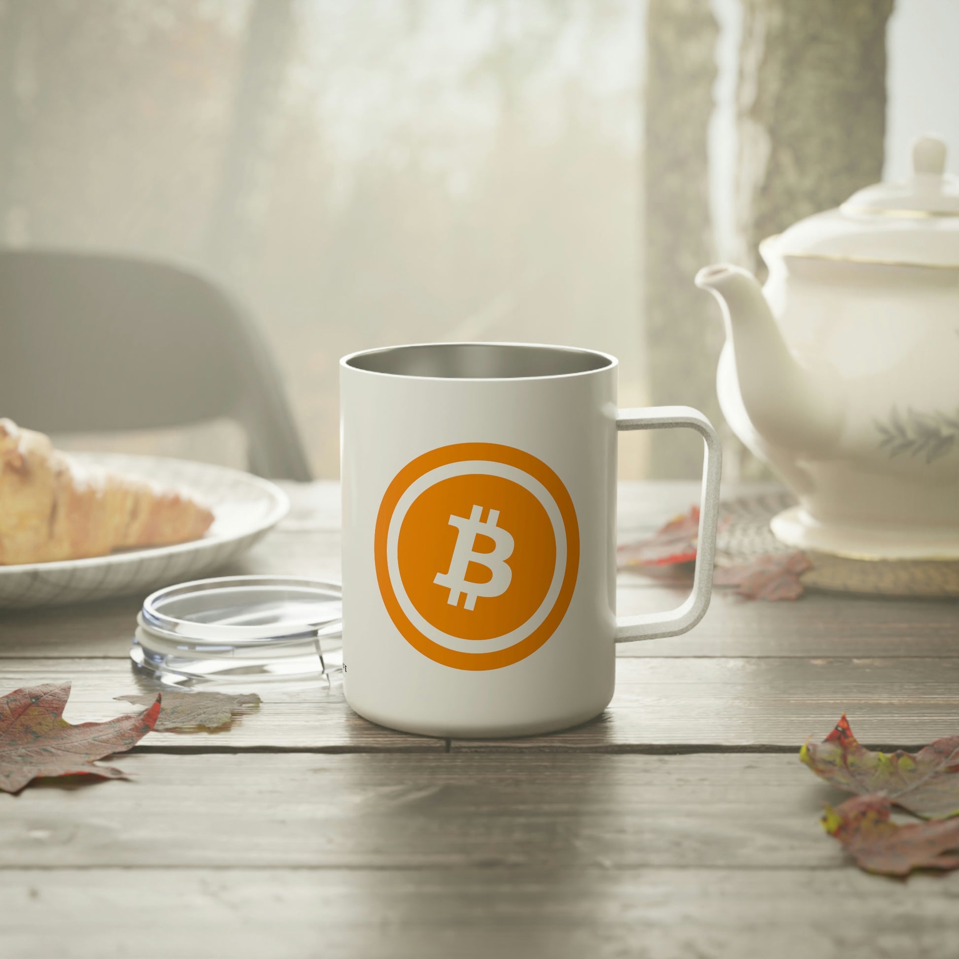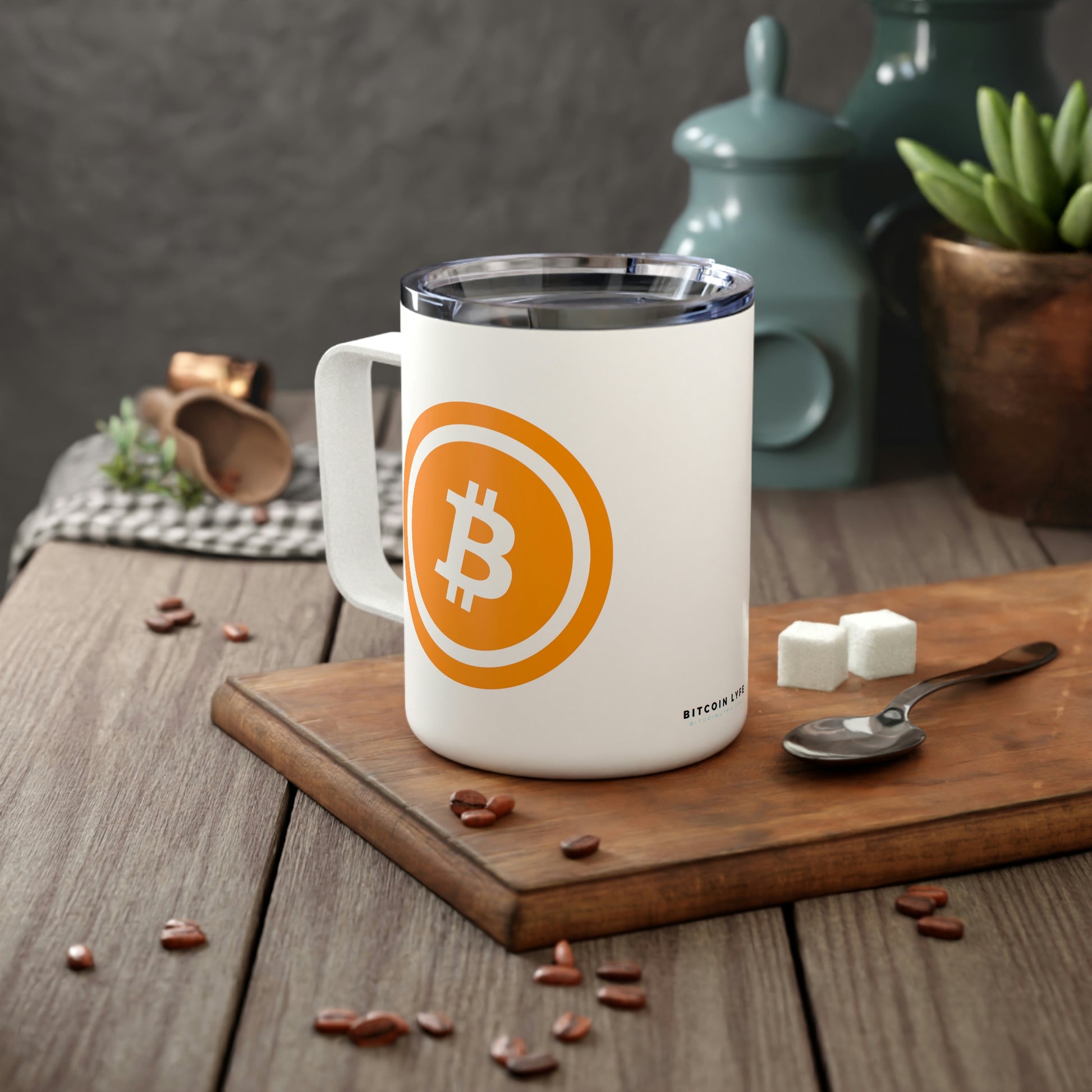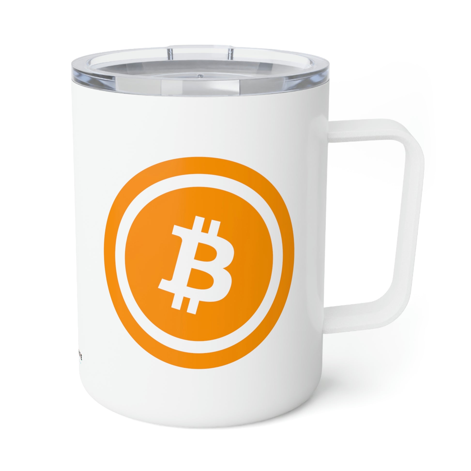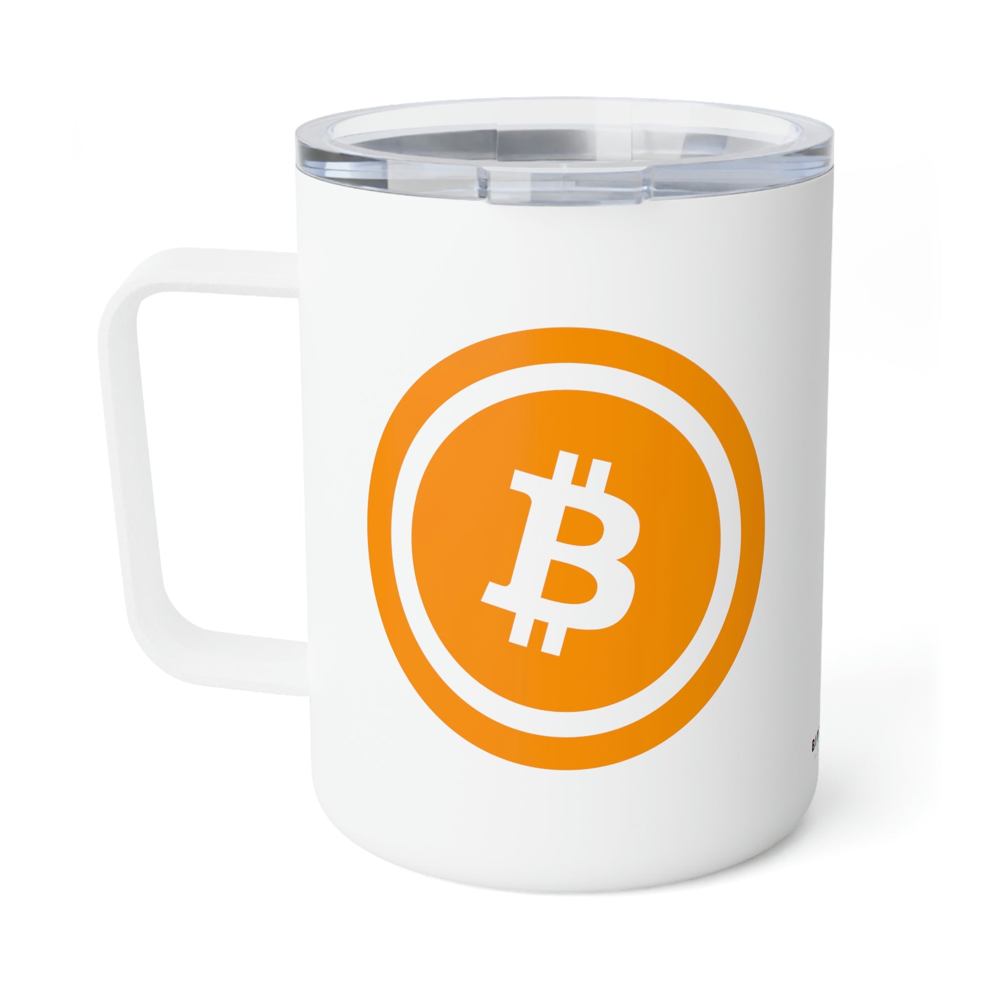 Nothing quite like a refreshing sip of one's favorite beverage in the middle of a long adventure with an awesome Bitcoin-inspired insulated mug. These insulated travel mugs hold 10oz of liquid and come with a robust stainless steel, double wall construction making them a hard-wearing sidekick for the road. The white detailing adds extra style points while the clear acrylic lid adds another layer of practicality to an already functional favorite.