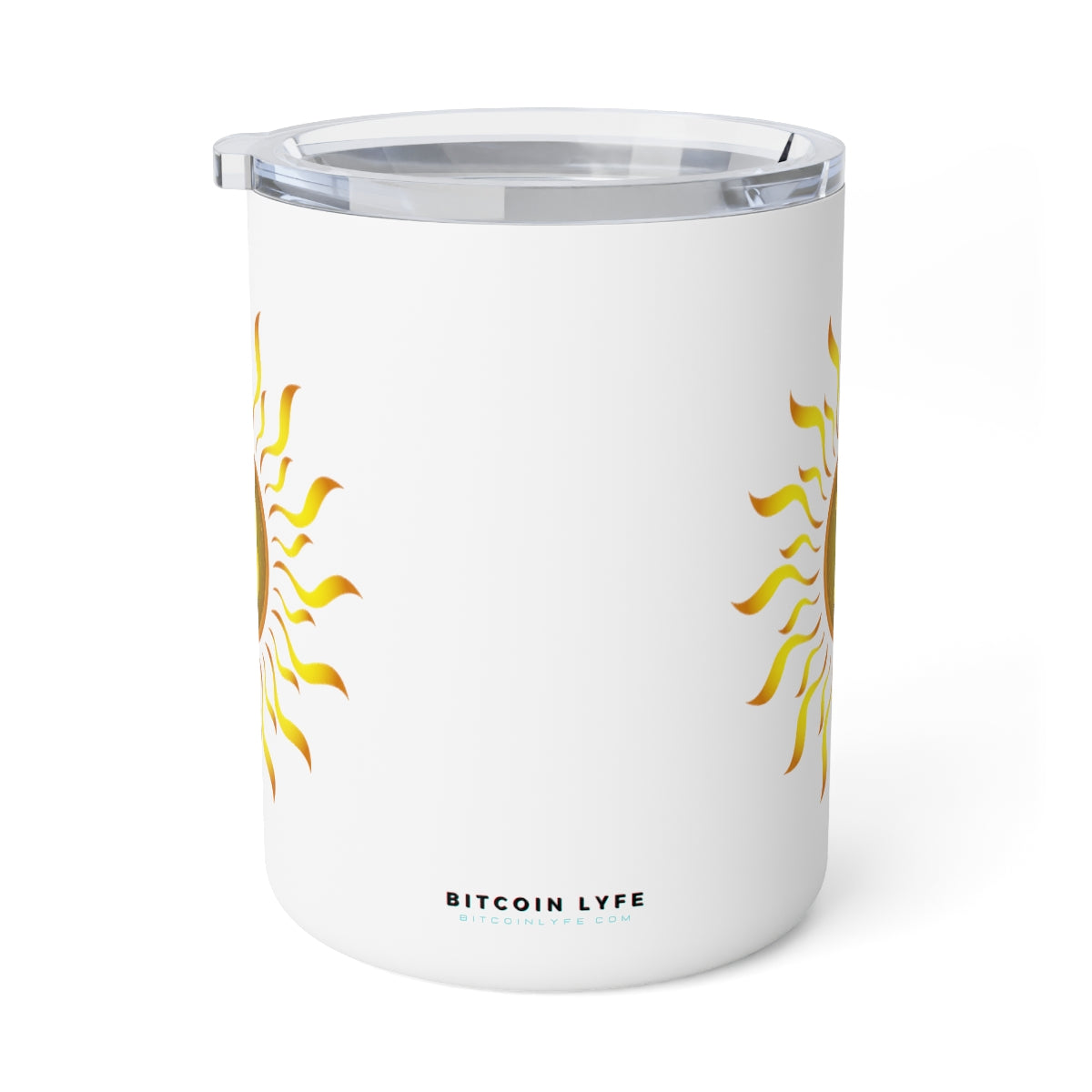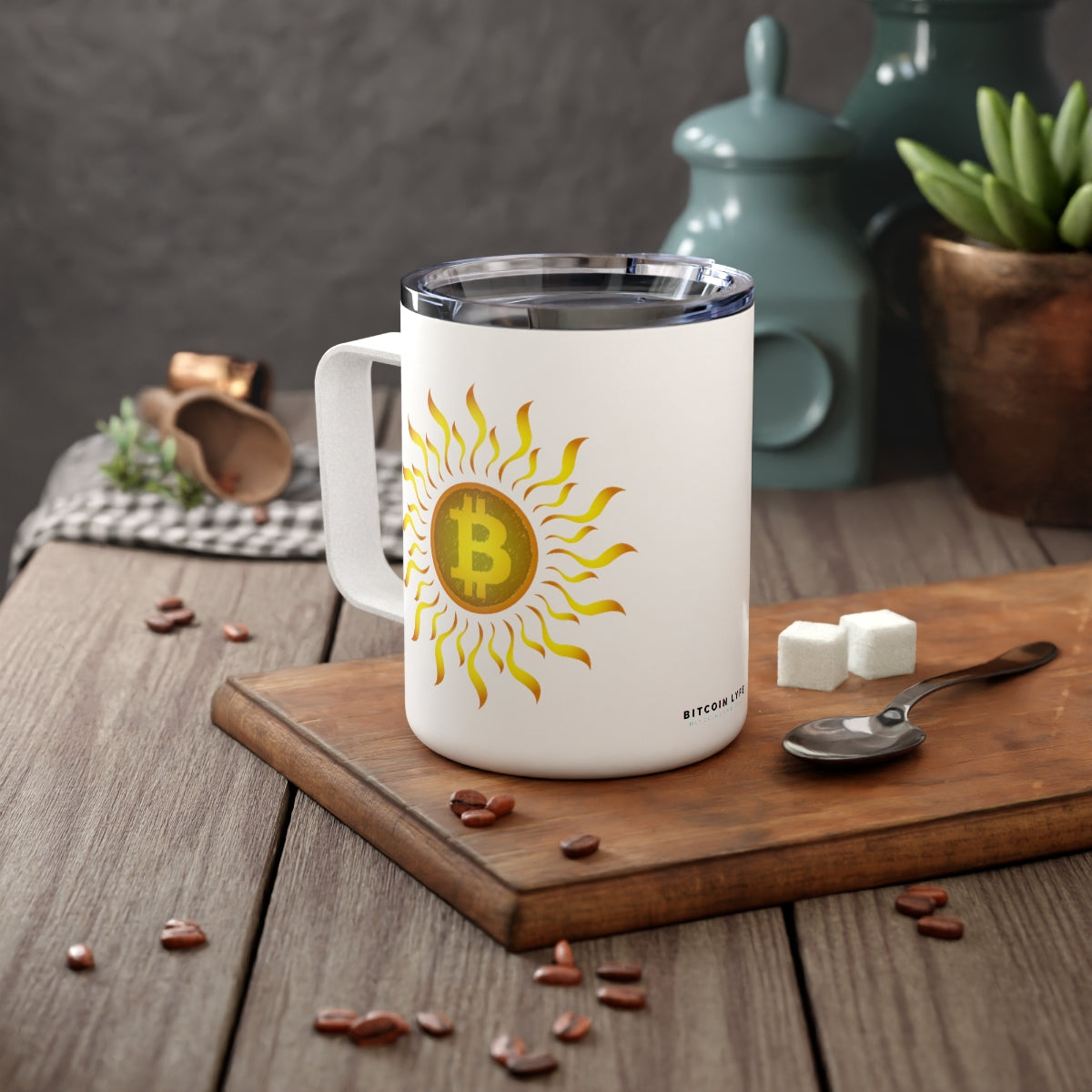 Nothing quite like a refreshing sip of one's favorite beverage in the middle of a long adventure with an awesome Bitcoin-inspired insulated mug. These insulated travel mugs hold 10oz of liquid and come with a robust stainless steel, double wall construction making them a hard-wearing sidekick for the road. The white detailing adds extra style points while the clear acrylic lid adds another layer of practicality to an already functional favorite.