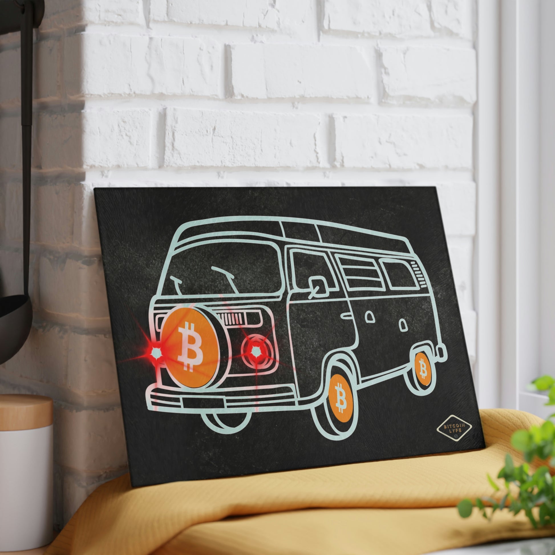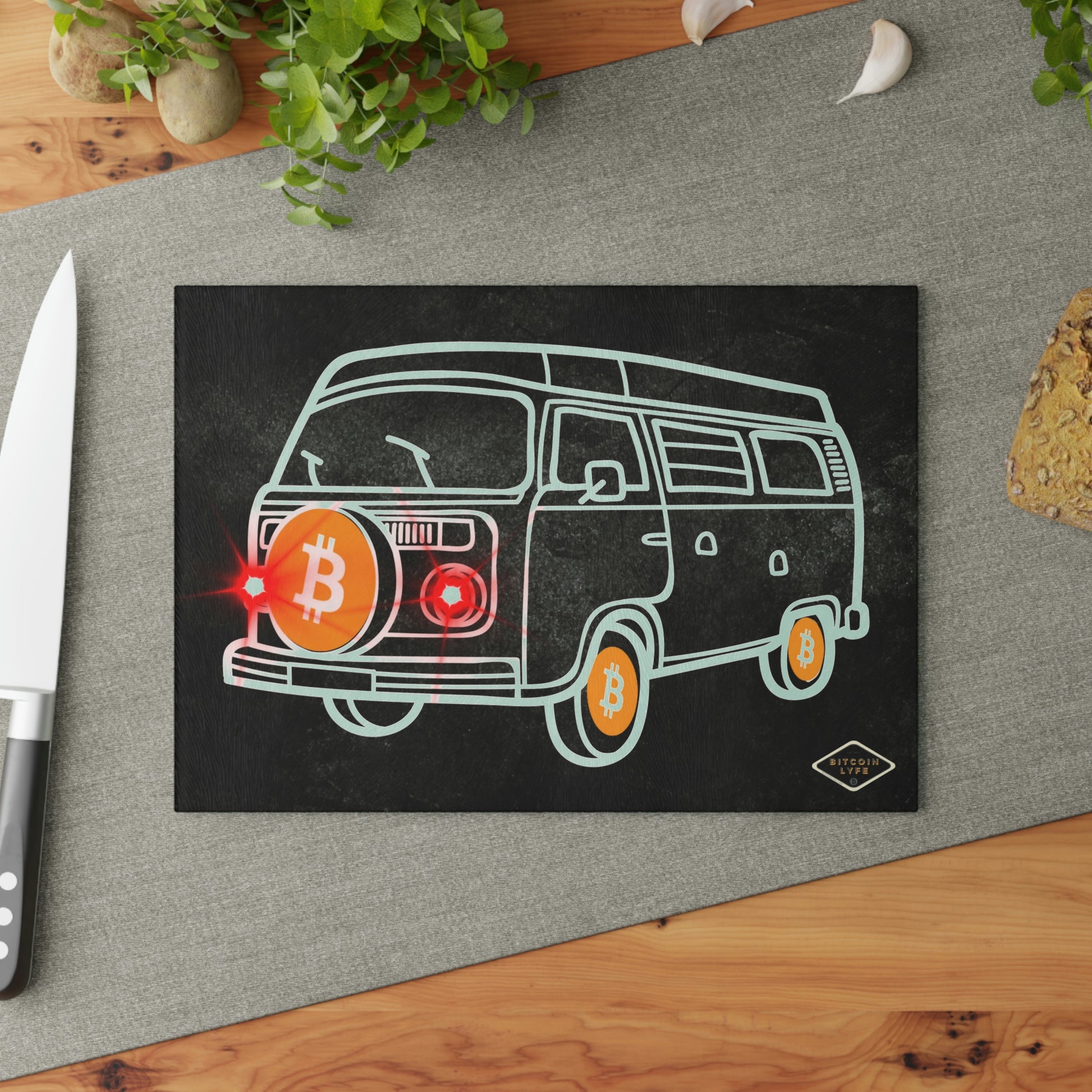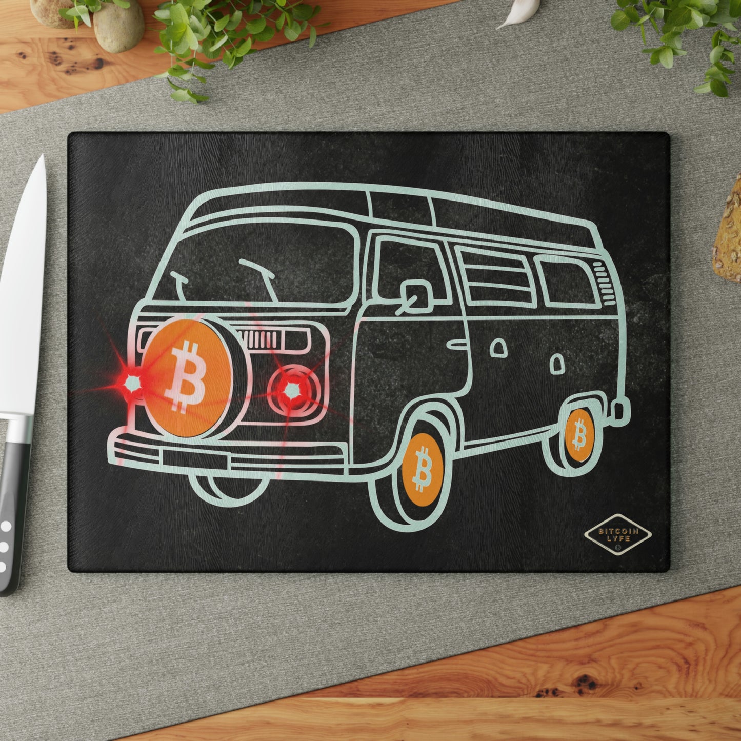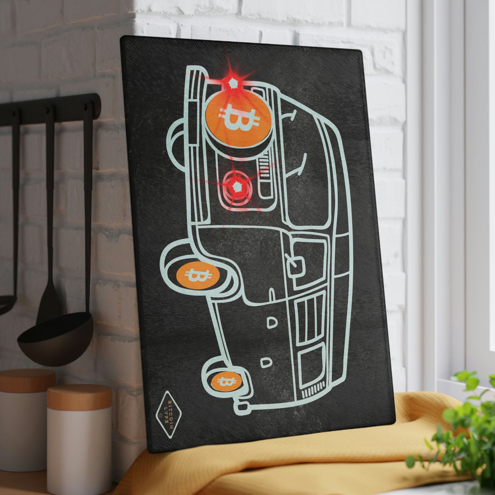 Bring a touch of character into any kitchen with this Bitcoin glass cutting board. Its tampered glass material is robust and helps prepare many a tasty meal for a long time to come. The textured surface makes it an ideal chopping, slicing, and dicing area. Available in two sizes: 8" x 11" and 11" x 15".