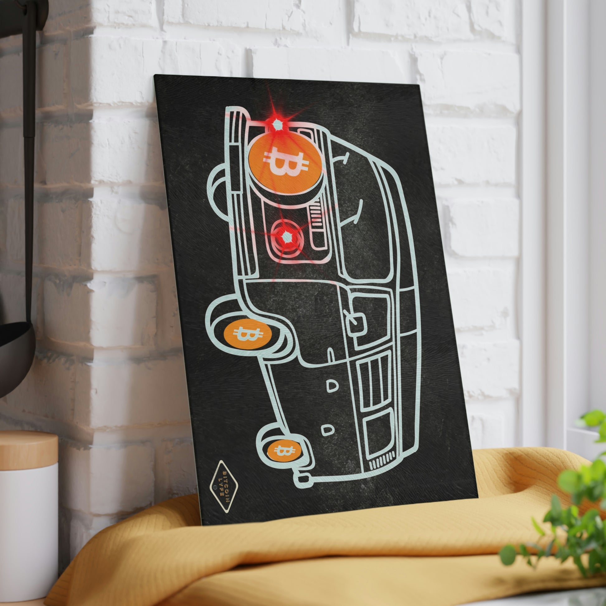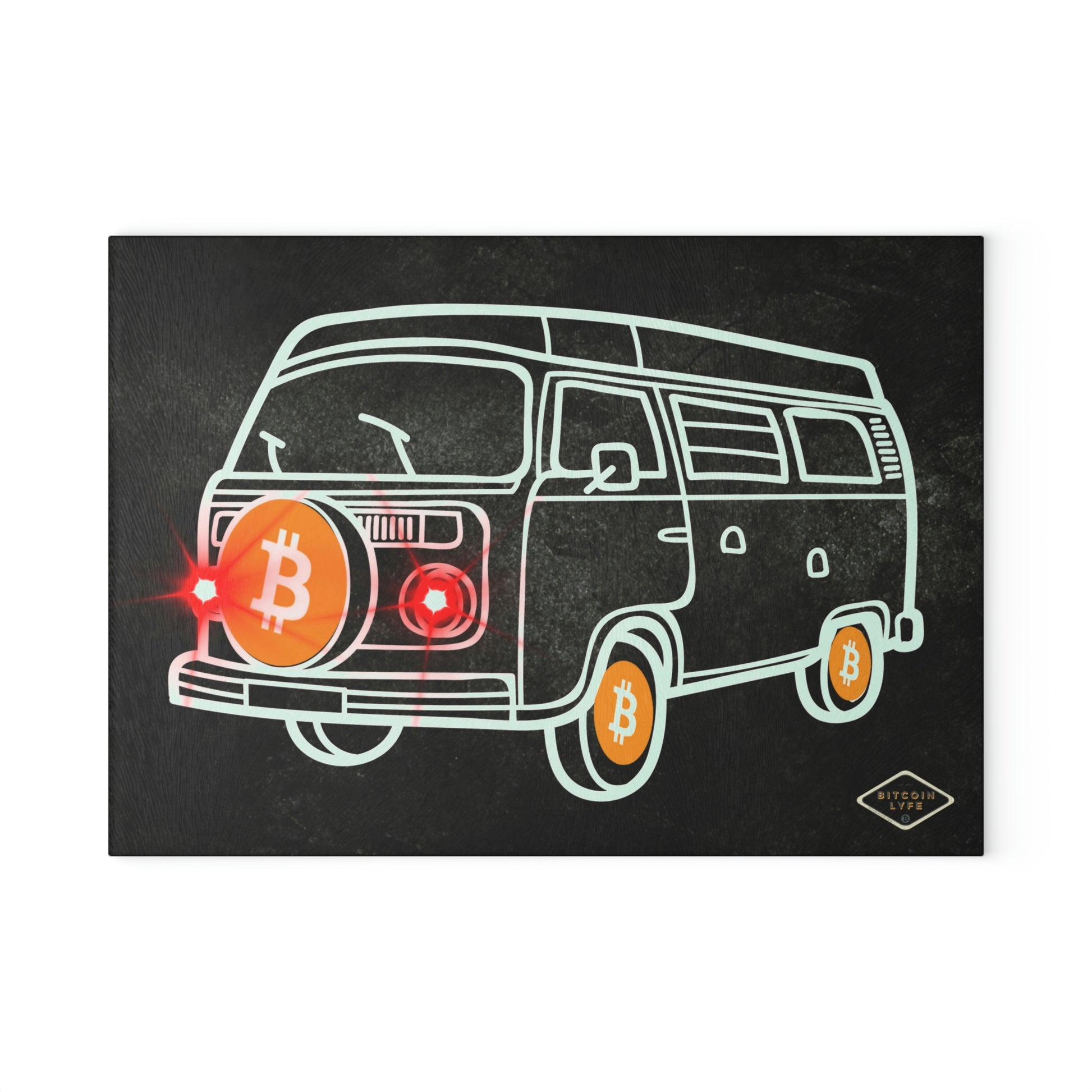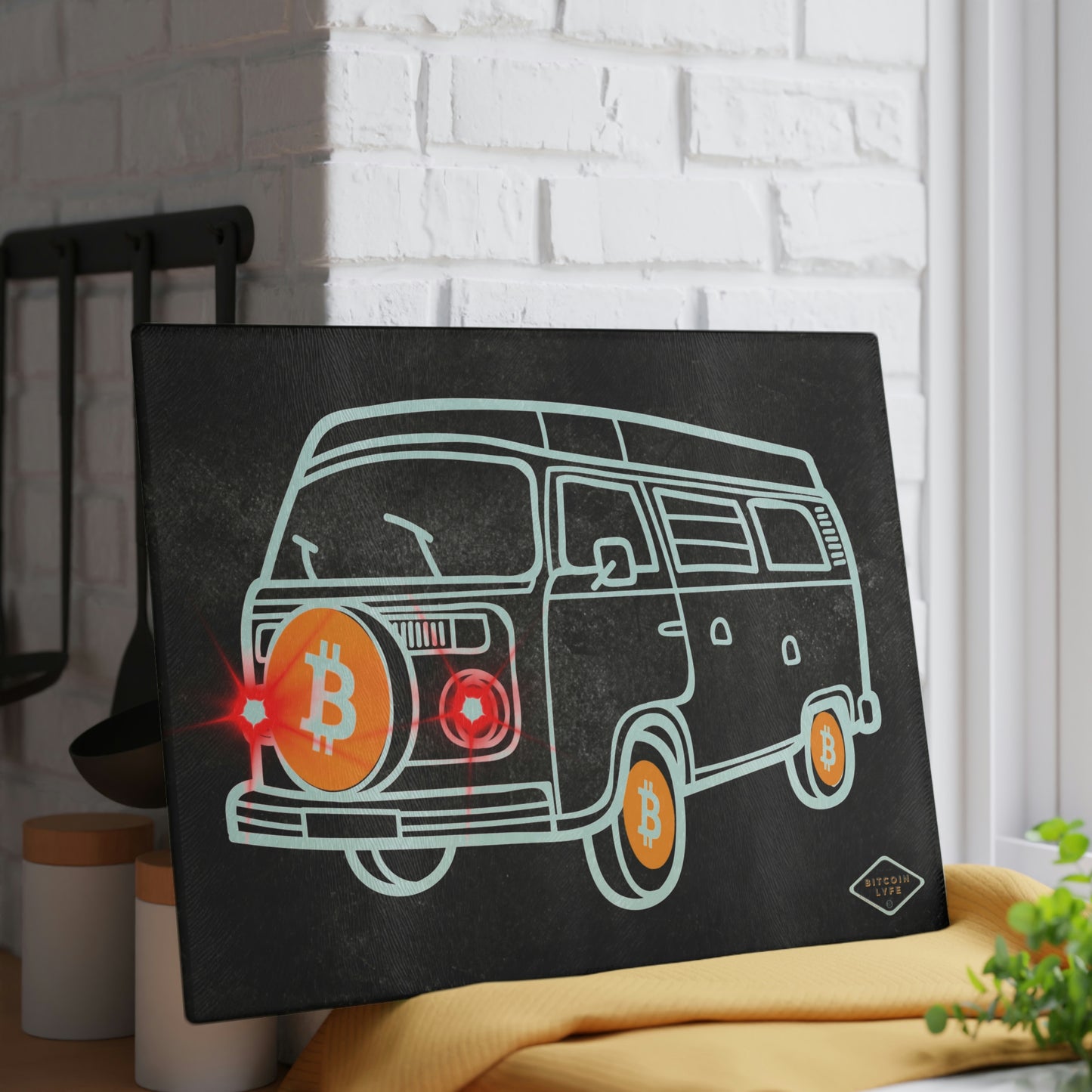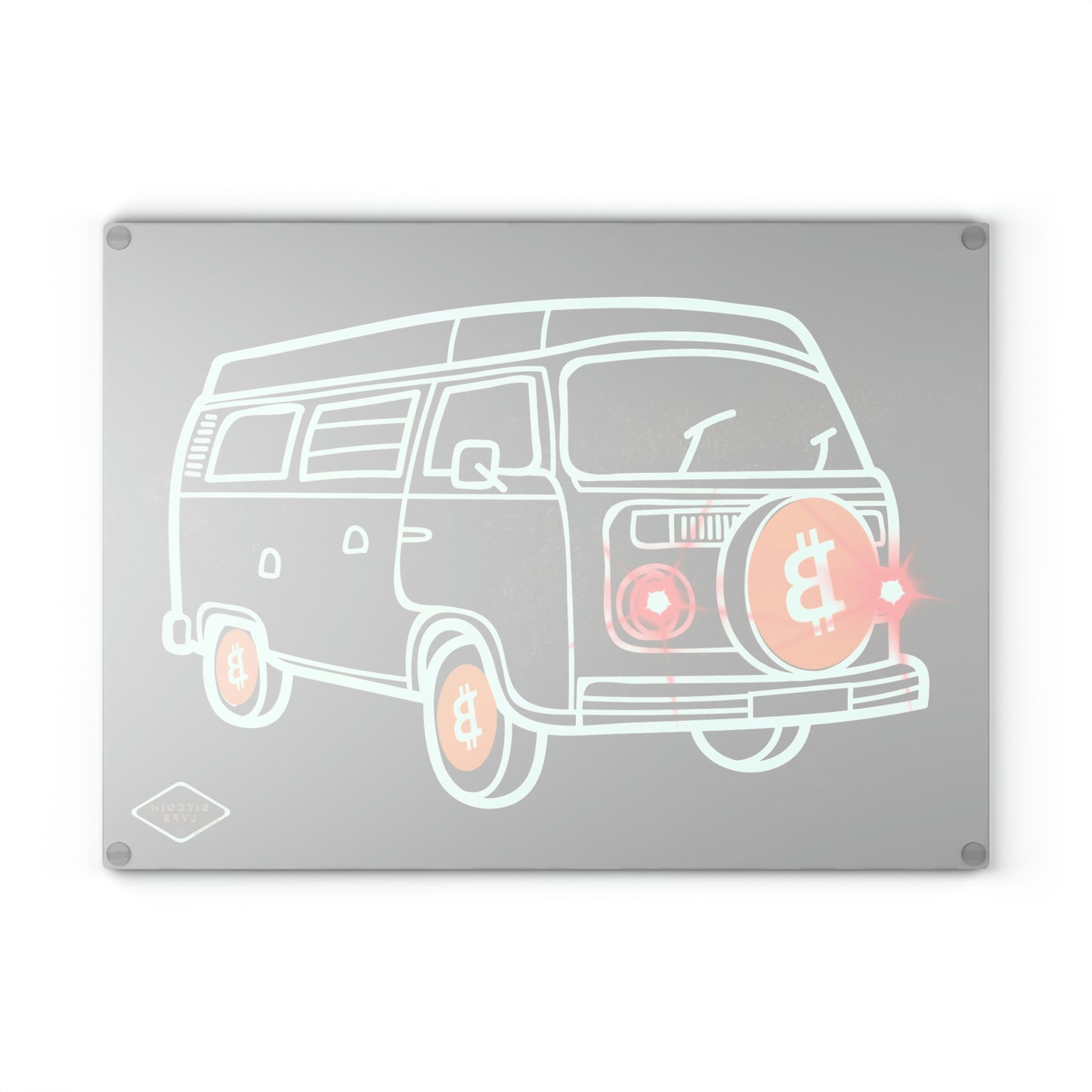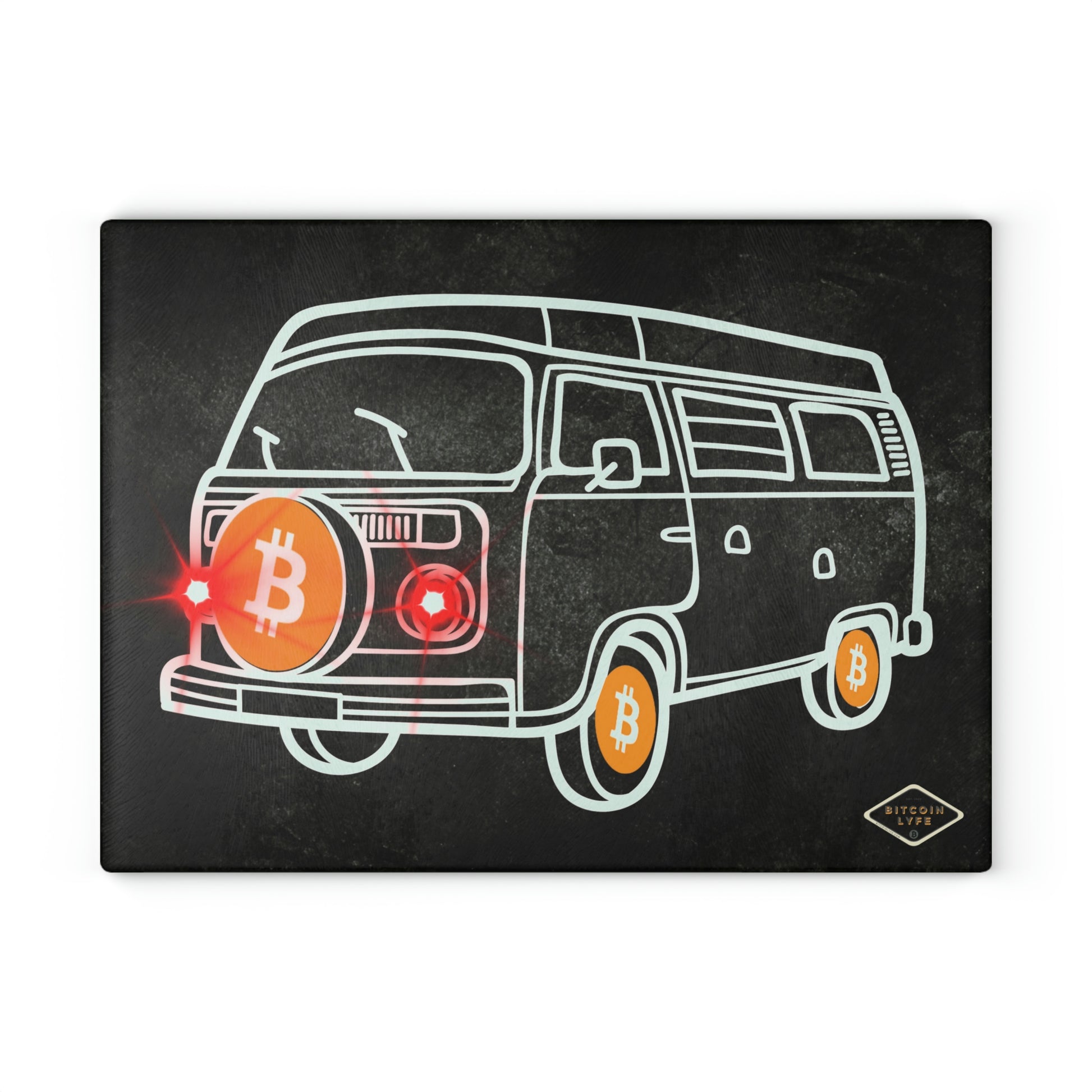 Bring a touch of character into any kitchen with this Bitcoin glass cutting board. Its tampered glass material is robust and helps prepare many a tasty meal for a long time to come. The textured surface makes it an ideal chopping, slicing, and dicing area. Available in two sizes: 8" x 11" and 11" x 15".