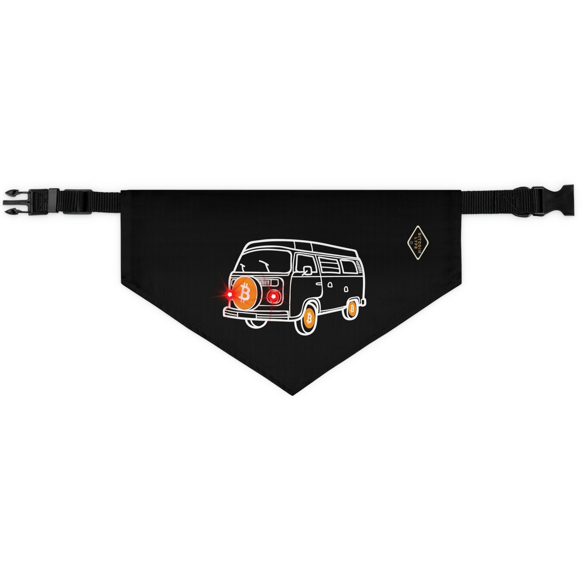 The pet bandana collar puts a fun spin on standard animal accessories, and this one helps your best furry friend to express their conviction for Bitcoin. It is made of polyester duck fabric and is printed on one side. The bandana collar is available in three sizes to fit any pet. The construction and printing is durable enough for machine washing. The collar fastening helps to keep the bandana fitting correctly, even during play.