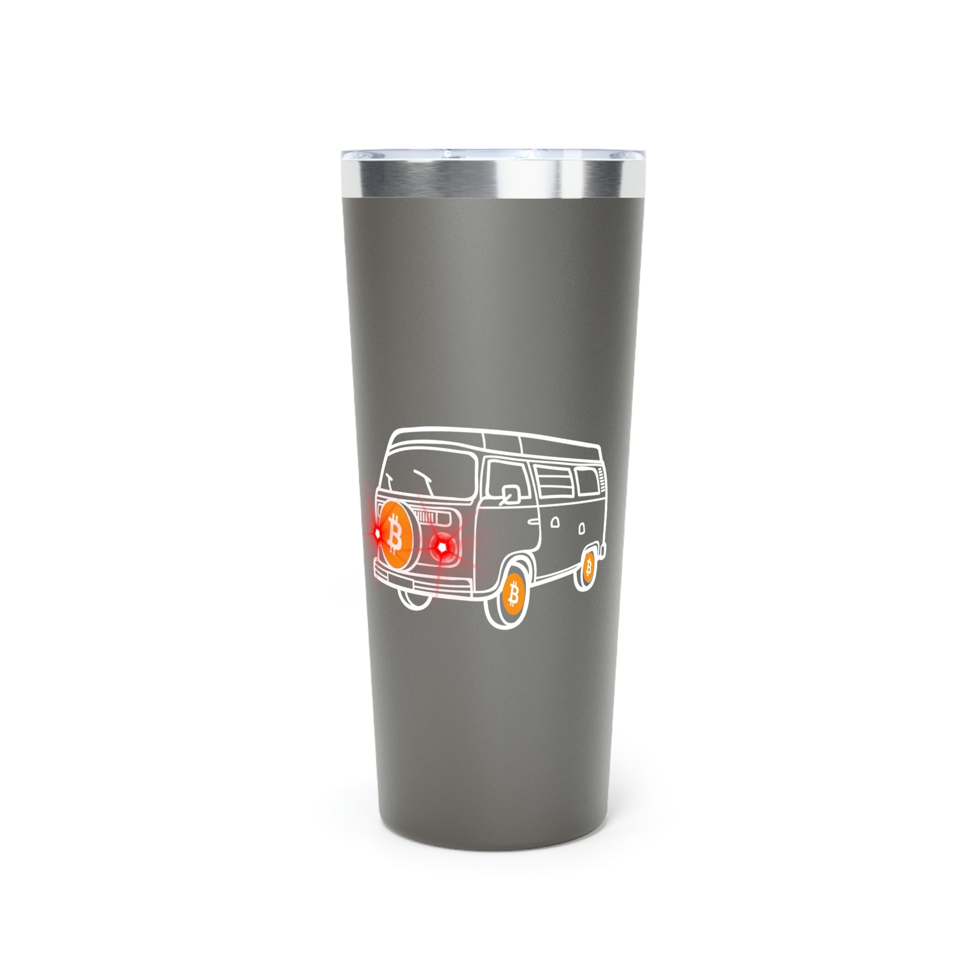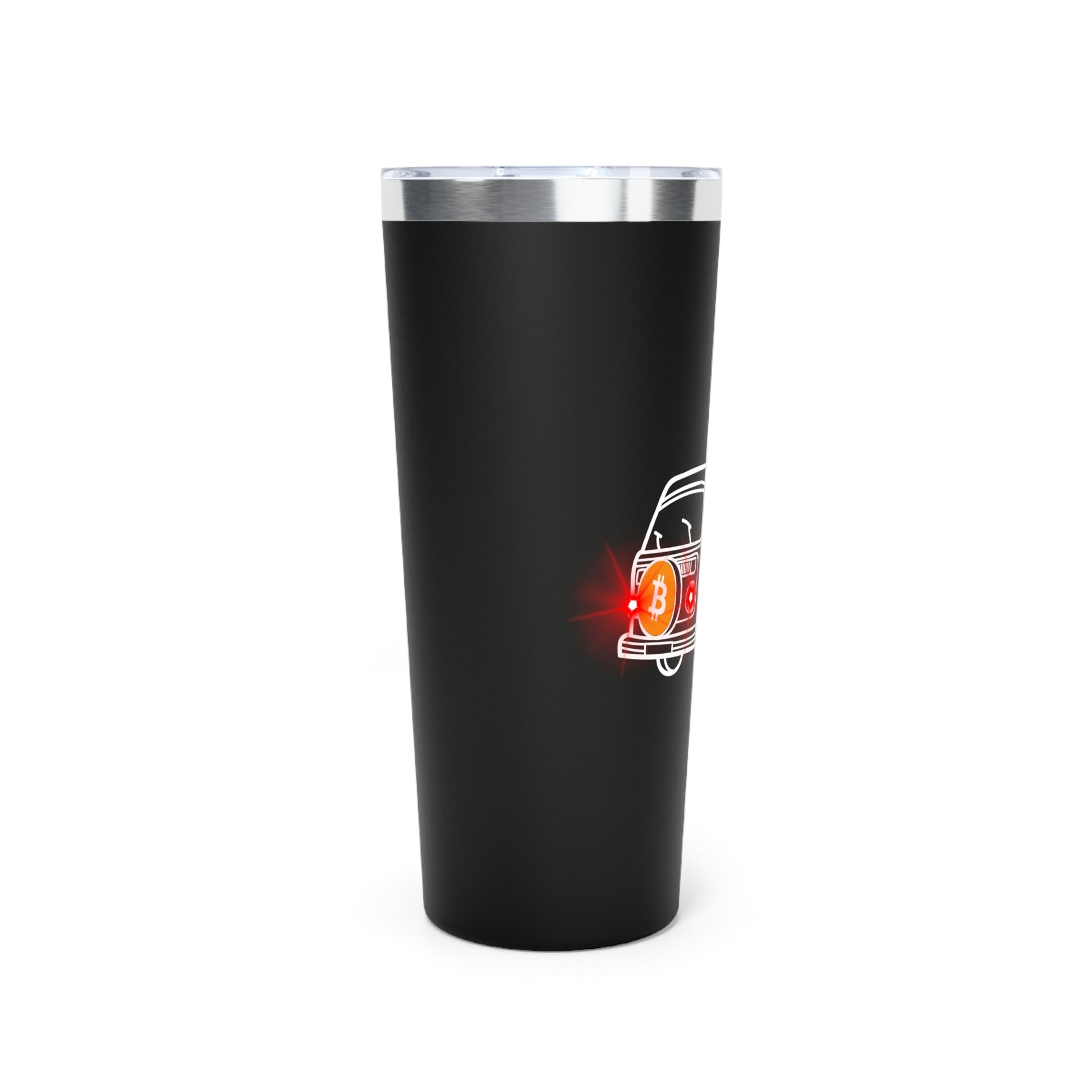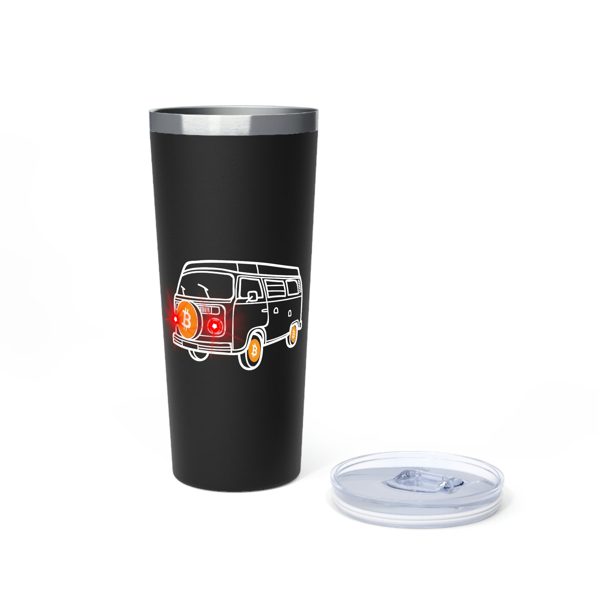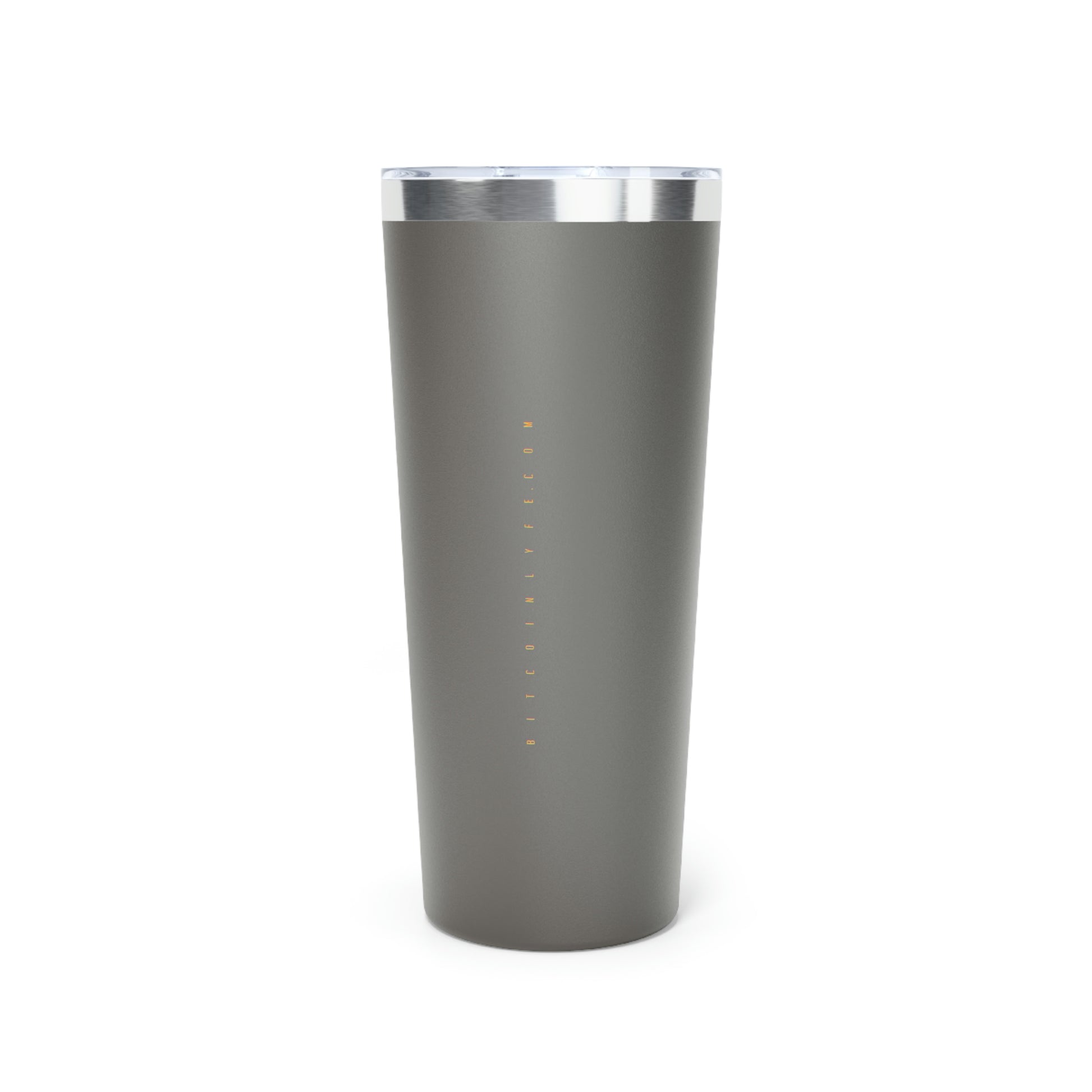 Stay hydrated in style on a daily basis with this Bitcoin tumbler. With a 22oz capacity and copper vacuum insulation, our tumbler keeps your favorite beverages refreshingly cold for 24 hours, and soothingly hot for up to 6. Its stainless steel exterior is condensation-resistant while the powder coating adds extra style points.