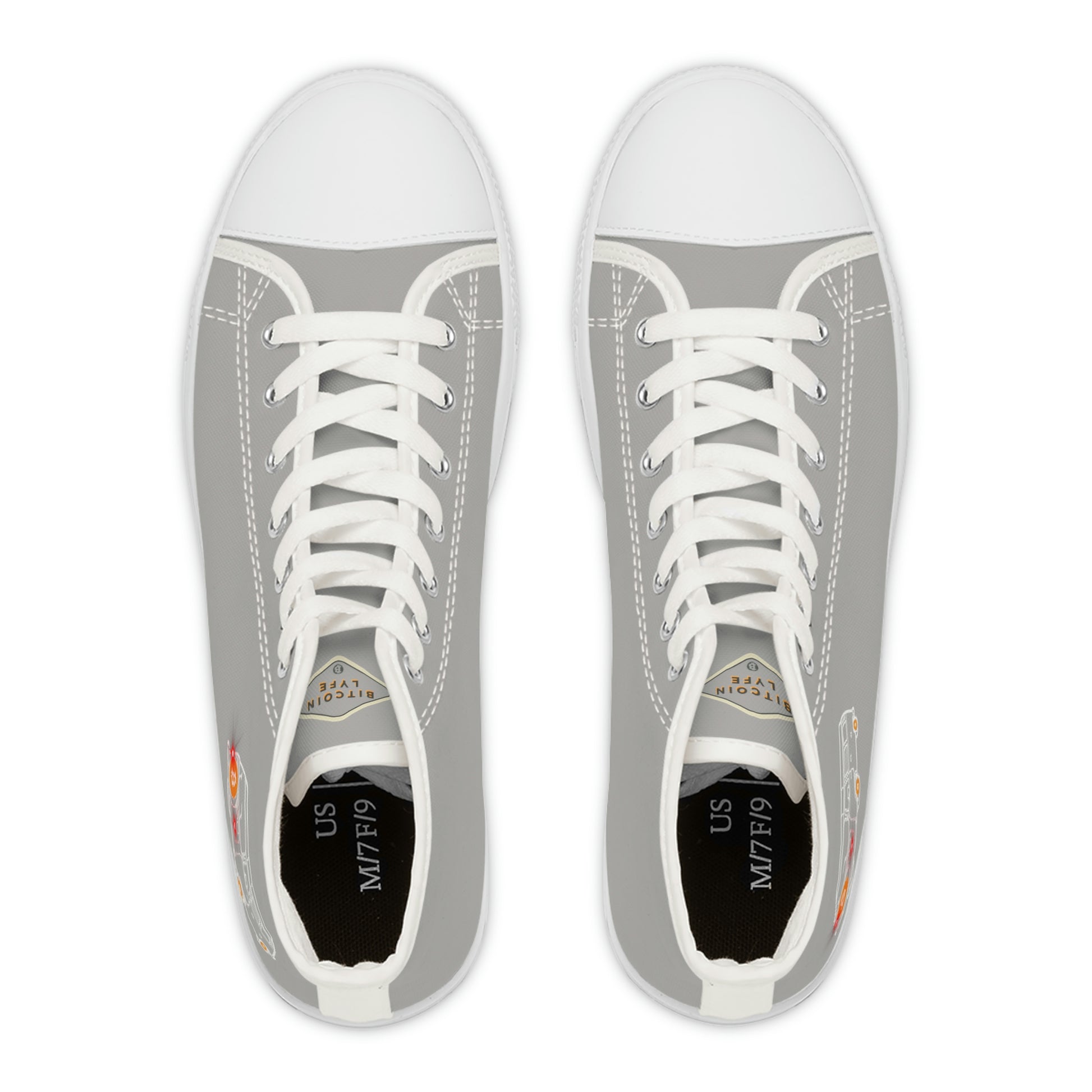 Made with breathable polyester canvas and featuring hi-poly deodorant memory foam insoles, these women's high top sneakers bear all the marks of an awesome shoe. Choose between black or white sole and laces, and enjoy the silver metal eyelets along with the lace-up closure. Add your designs and bring a bespoke staple to life.