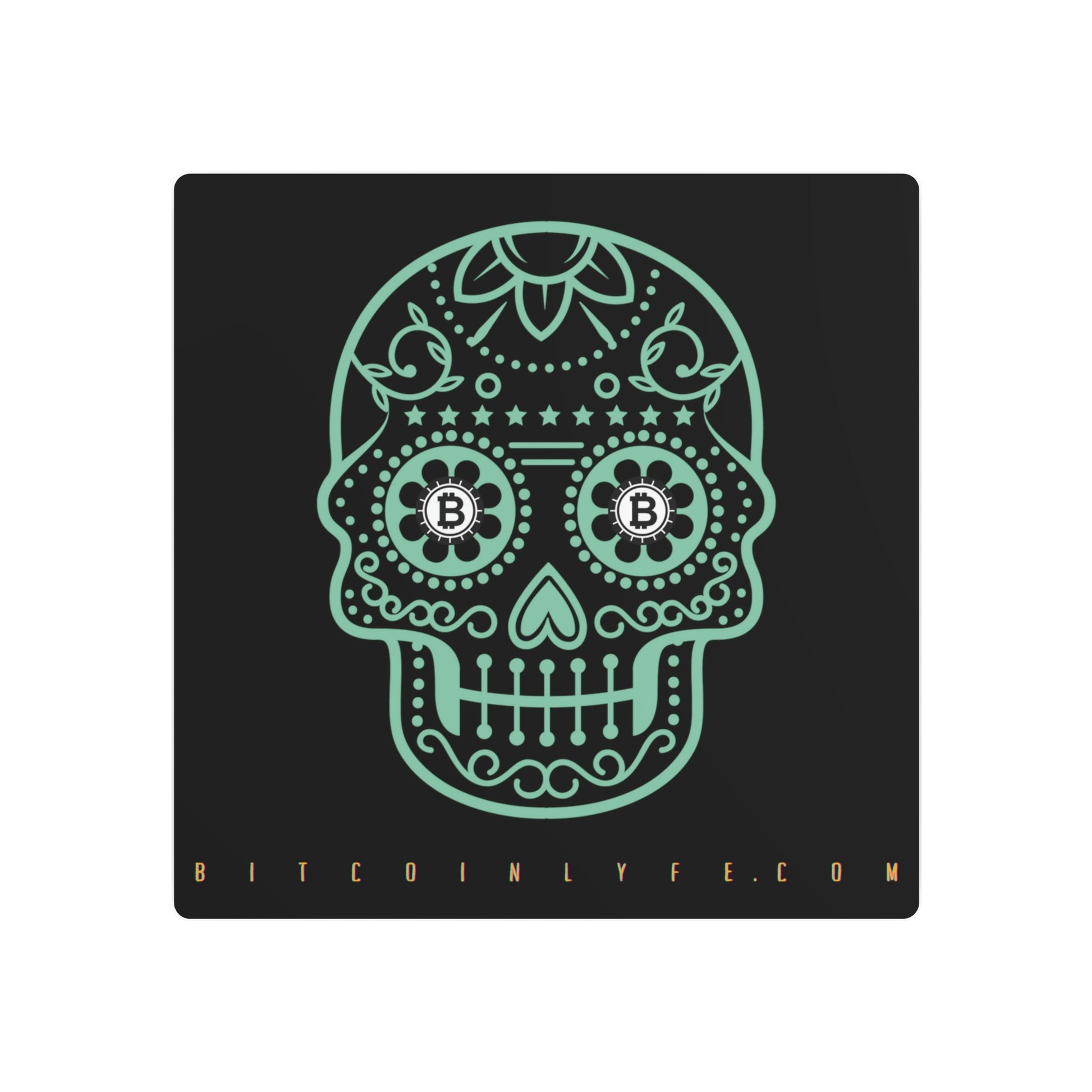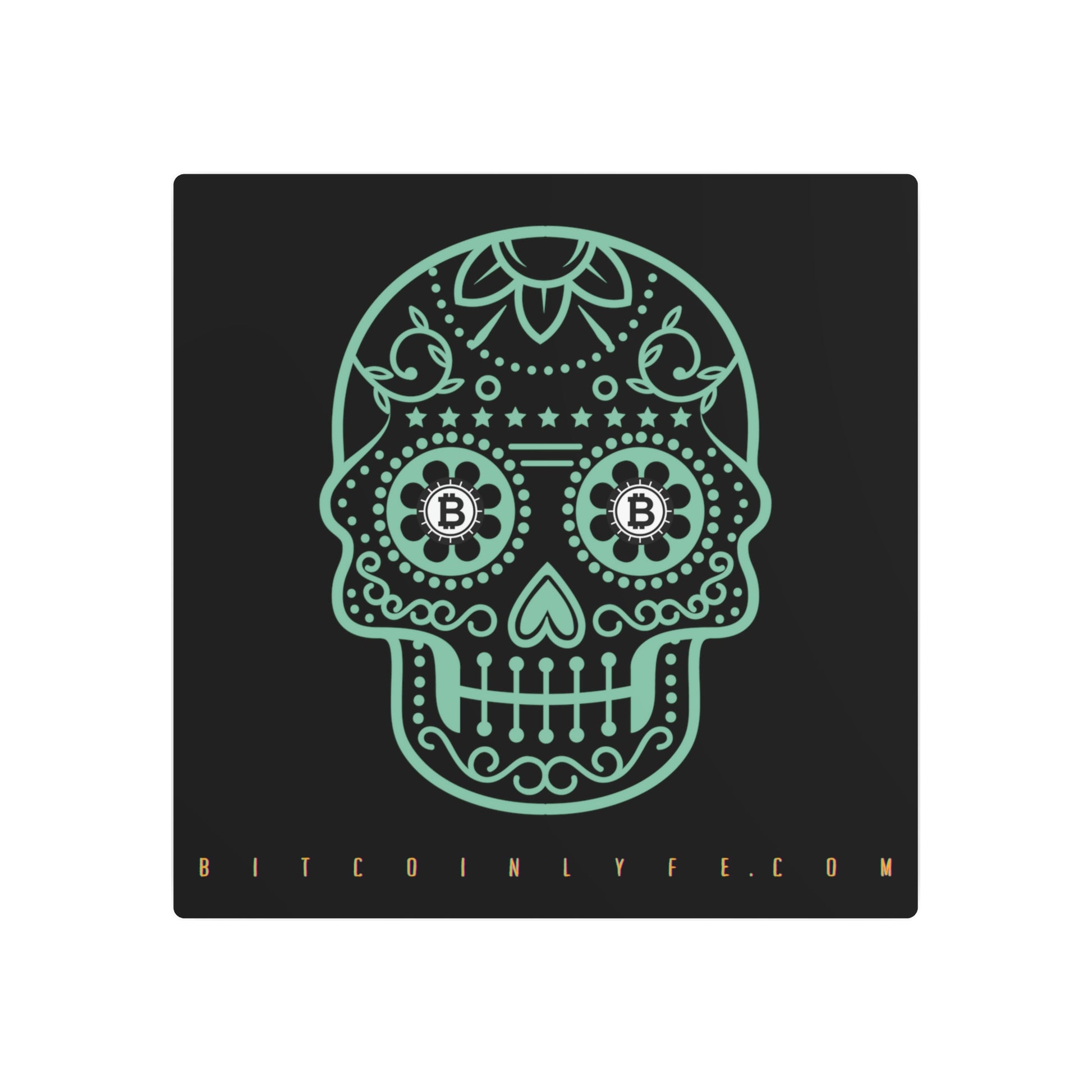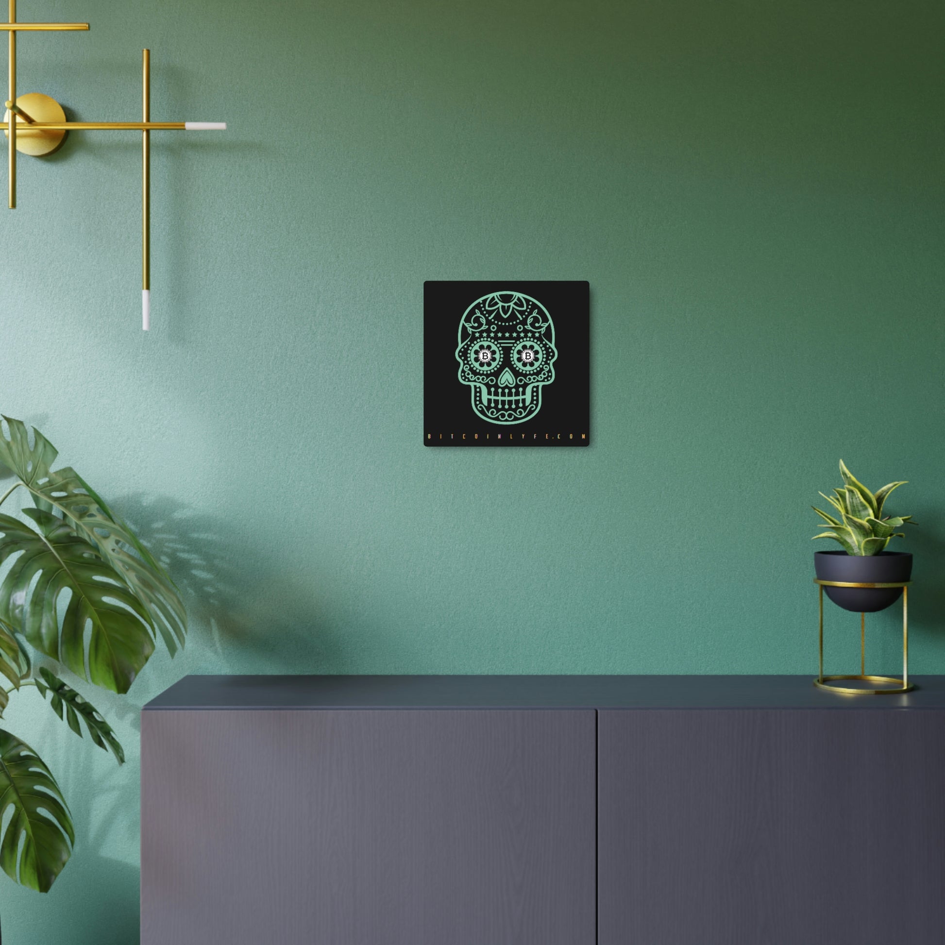 Made with 3mm aluminum composite, these Día de los Muertos Bitcoin signs come with a beautiful matte finish that is ideal for printing. Each sign comes with one mounting block for effortless hanging.
