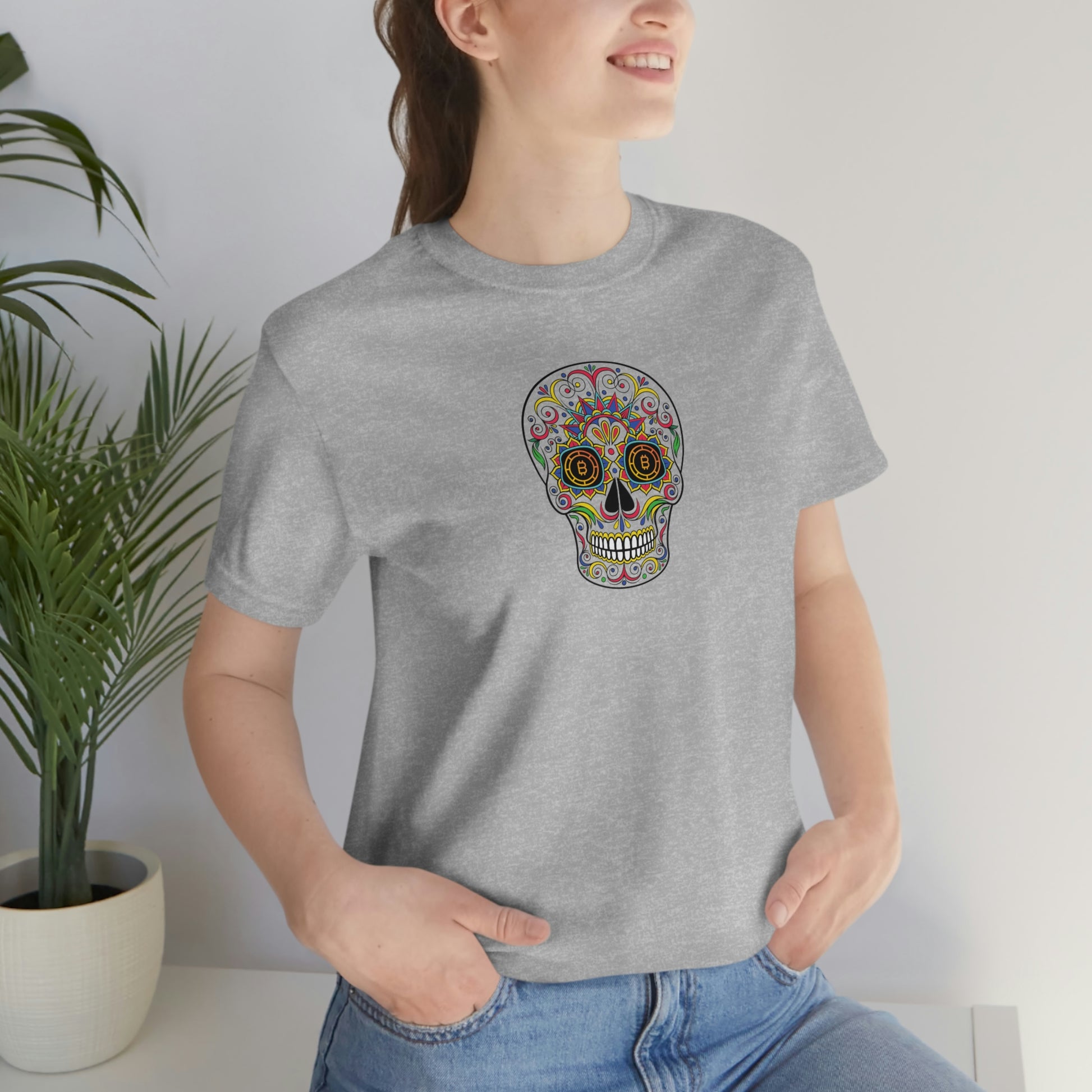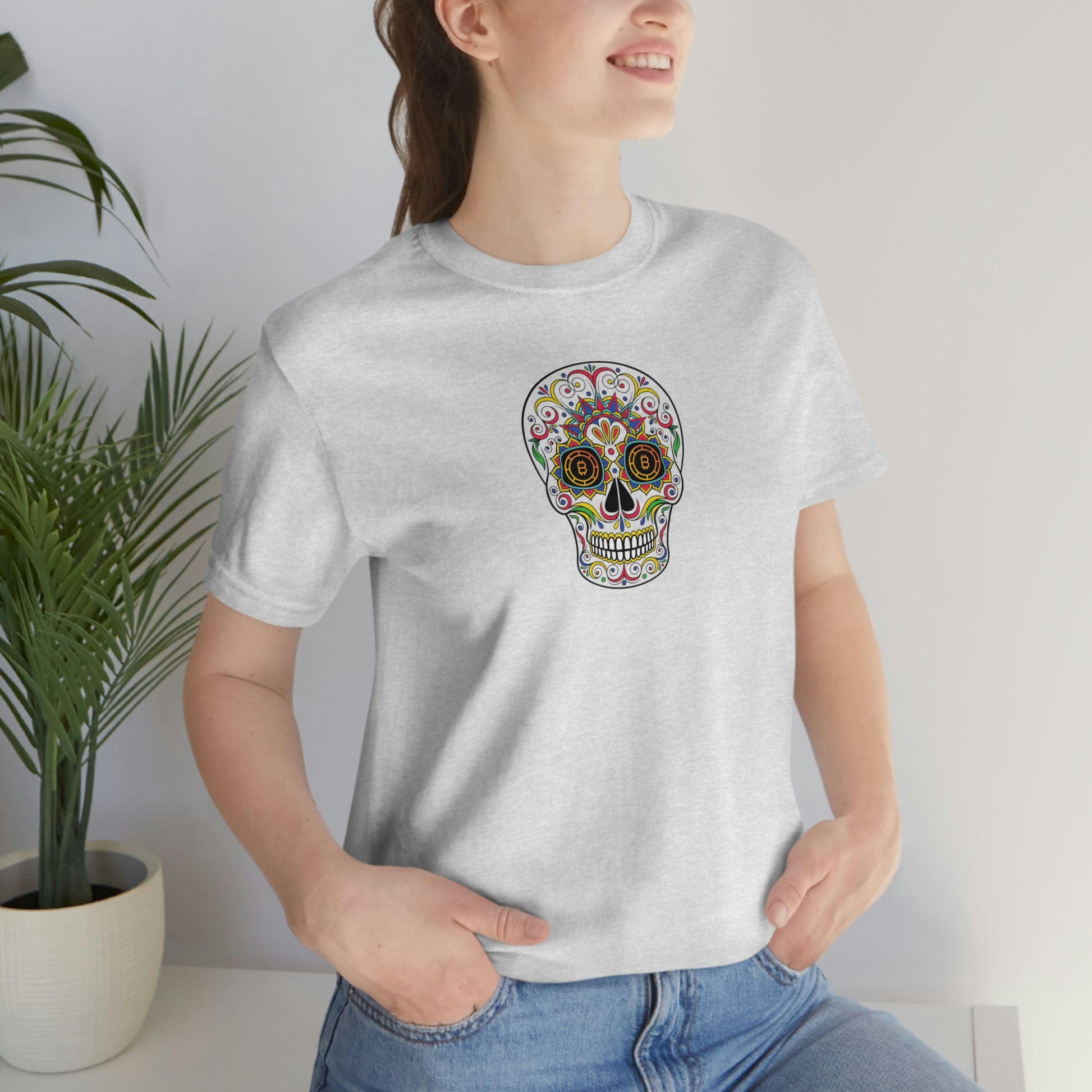 Why not take some of the cool designs celebrating Día de los Muertos and combine them with a creative way to subtly express our conviction or interest in Bitcoin? Yea, that's what we were thinking! hahaha We hope you like these designs. We tried to work in variations of the Bitcoin logo that would compliment the Día de los Muertos skull designs. Who knows...maybe you will attract some fellow orange-pilled individuals along your way and maybe even help to educate others. Ok, well, maybe that's a little deep for a t-shirt - so, anyway, we hope you enjoy these designs!