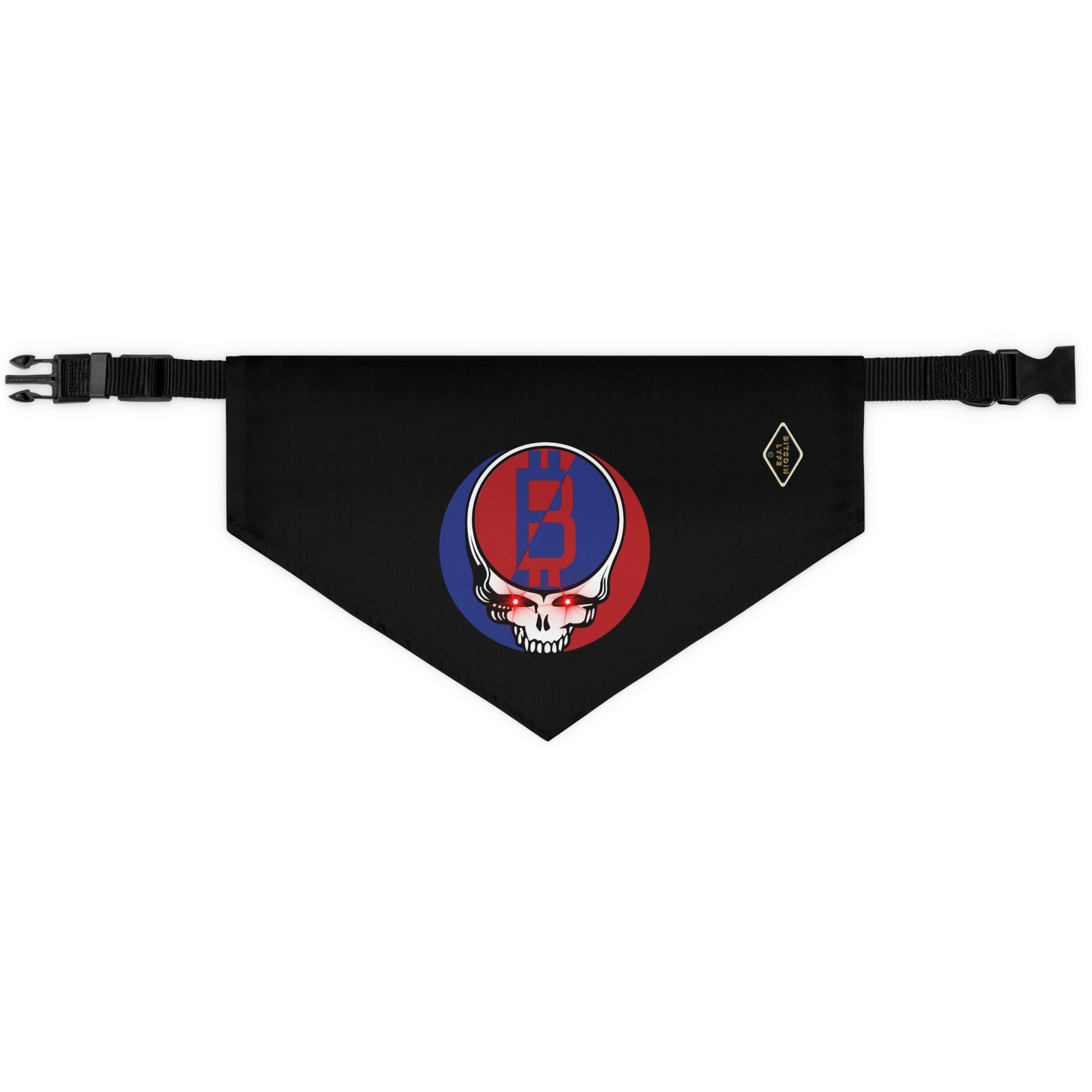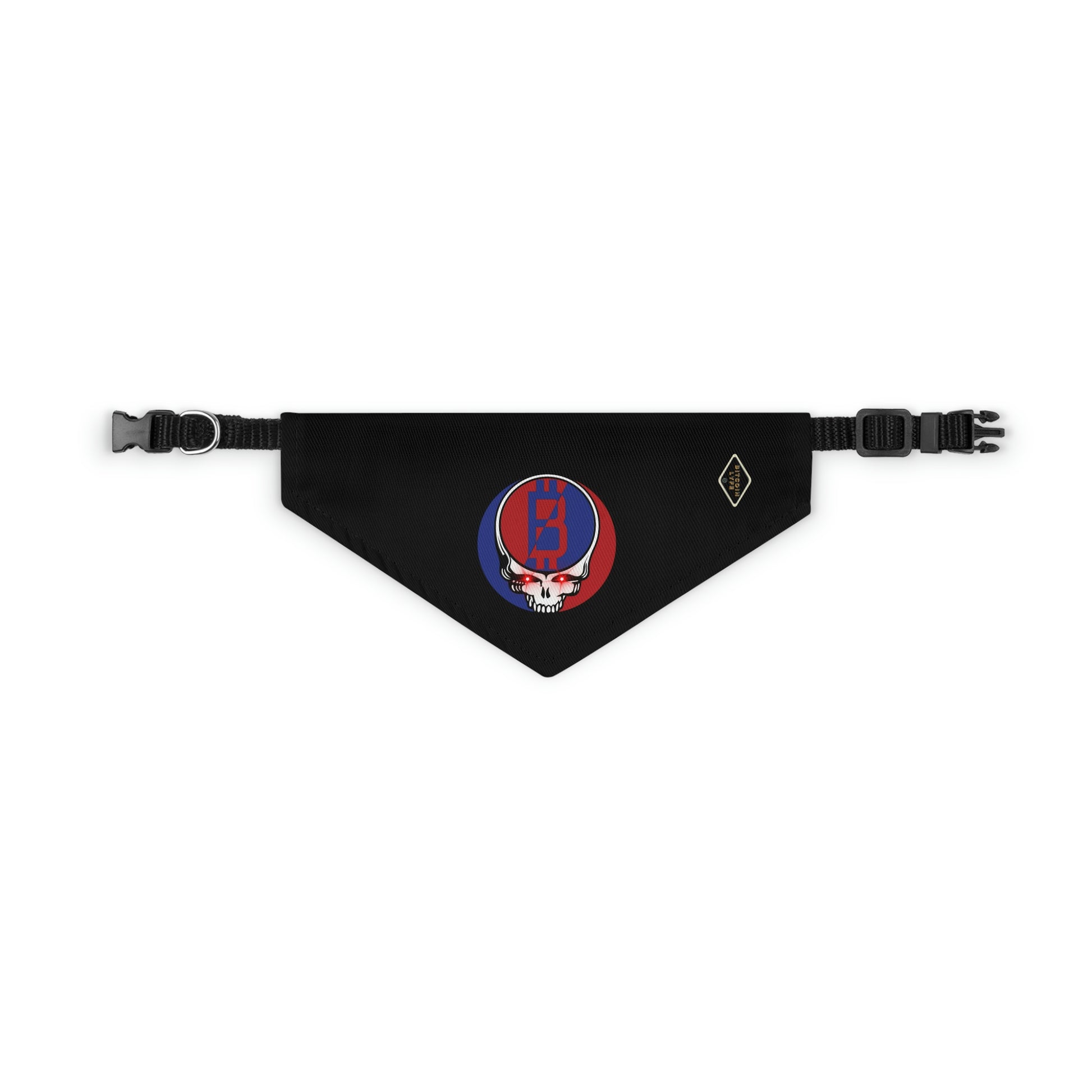 The pet bandana collar puts a fun spin on standard animal accessories, and this one helps your best furry friend to express their conviction for Bitcoin. It is made of polyester duck fabric and is printed on one side. The bandana collar is available in three sizes to fit any pet. The construction and printing is durable enough for machine washing. The collar fastening helps to keep the bandana fitting correctly, even during play.