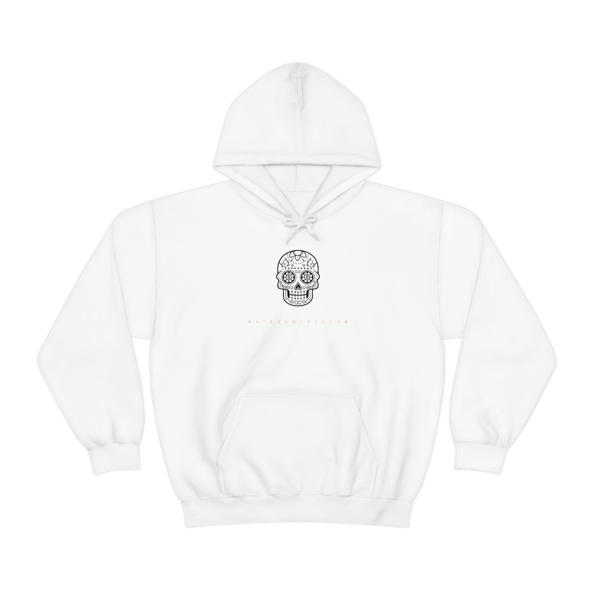Why not take some of the cool designs celebrating Día de los Muertos and combine them with a creative way to subtly express our conviction or interest in Bitcoin? Yea, that's what we were thinking! hahaha We hope you like these designs. We tried to work in variations of the Bitcoin logo that would compliment the Día de los Muertos skull designs. Who knows...maybe you will attract some fellow orange-pilled individuals along your way and maybe even help to educate others. Ok, well, maybe that's a little deep for a hoodie - so, anyway, we hope you enjoy these designs!