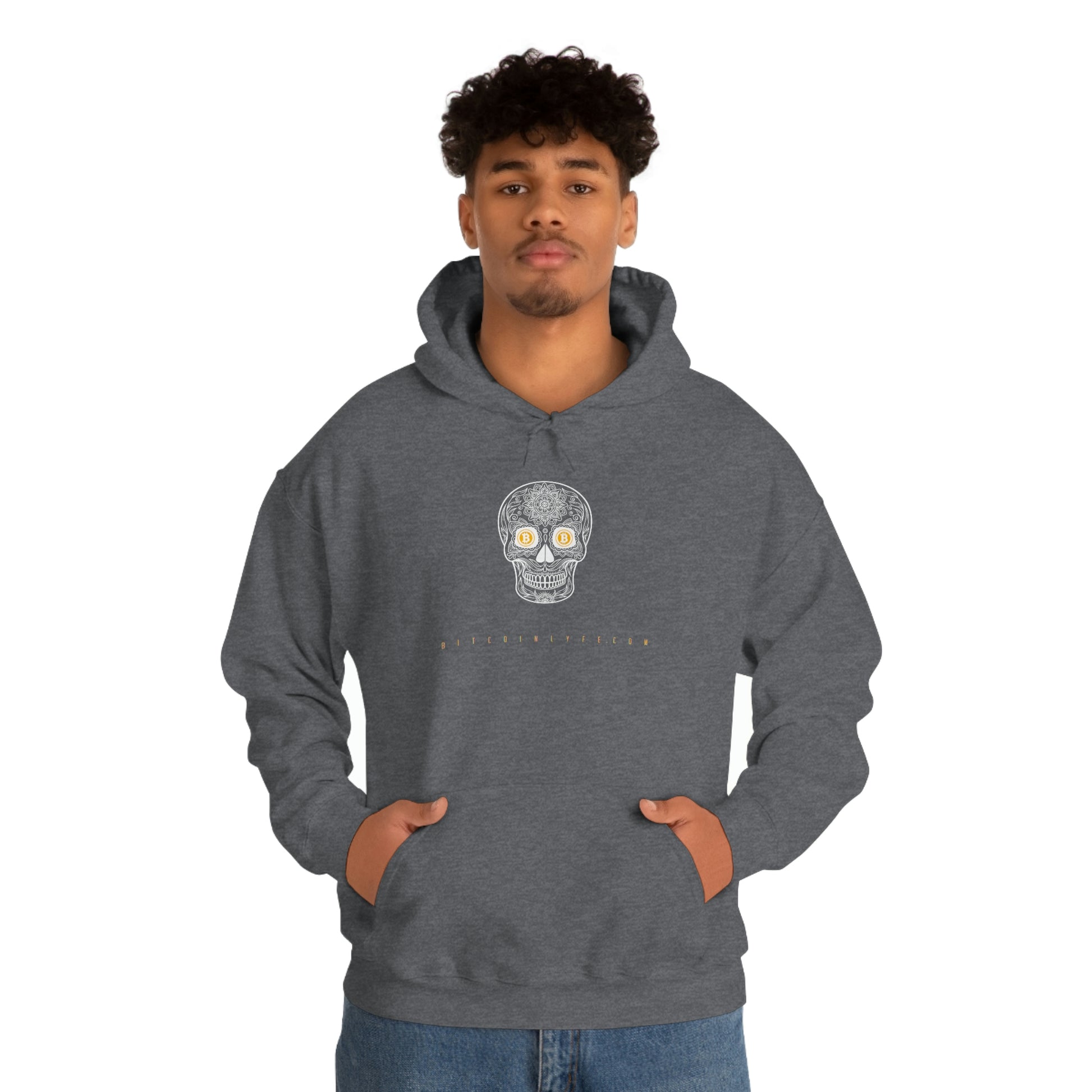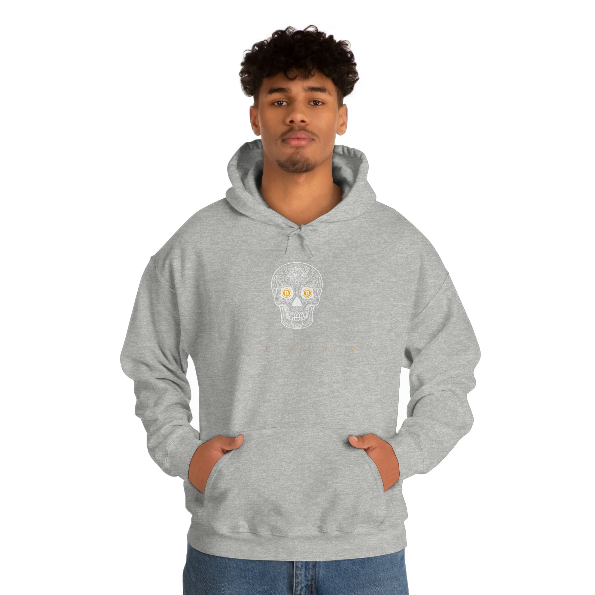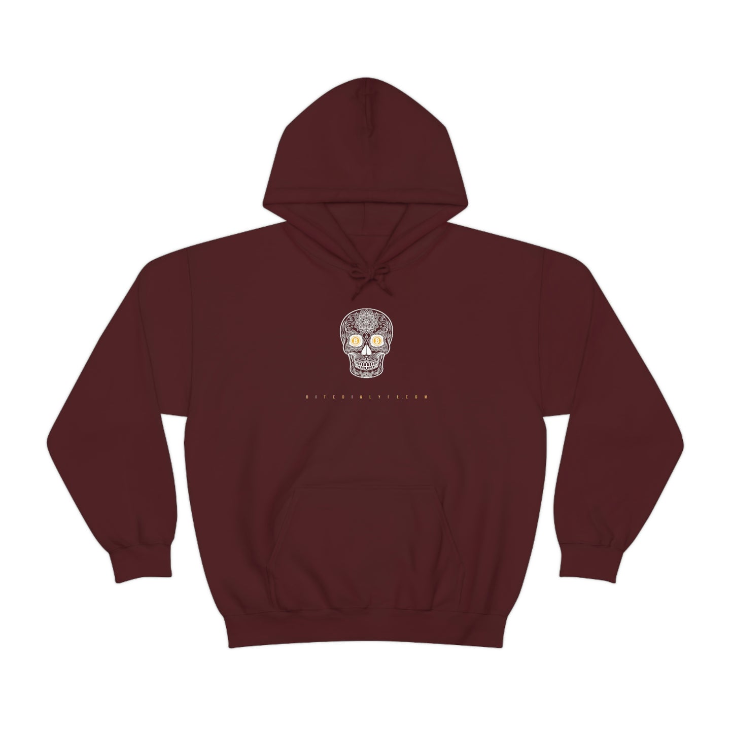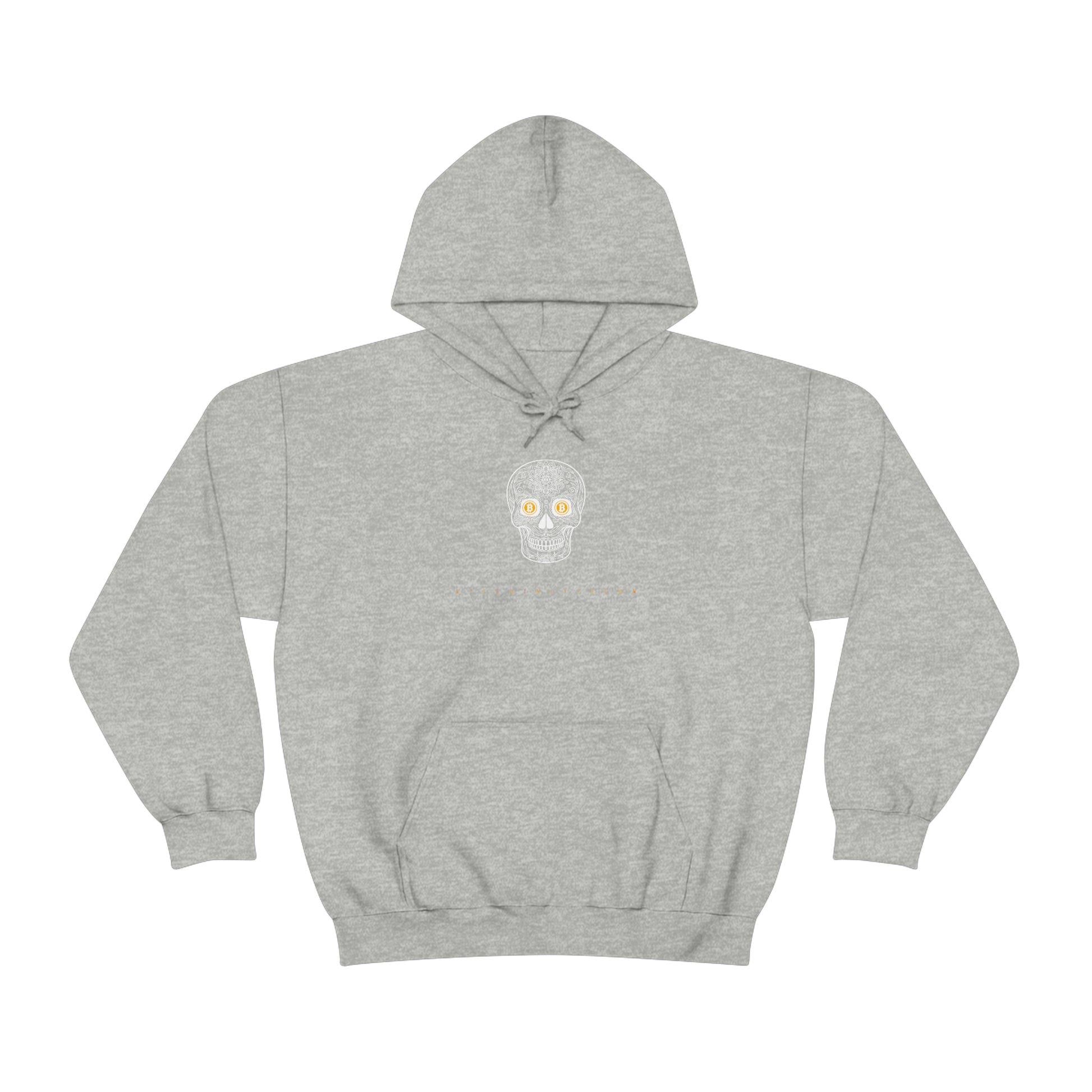 Why not take some of the cool designs celebrating Día de los Muertos and combine them with a creative way to subtly express our conviction or interest in Bitcoin? Yea, that's what we were thinking! hahaha We hope you like these designs. We tried to work in variations of the Bitcoin logo that would compliment the Día de los Muertos skull designs. Who knows...maybe you will attract some fellow orange-pilled individuals along your way and maybe even help to educate others. Ok, well, maybe that's a little deep for a hoodie - so, anyway, we hope you enjoy these designs!