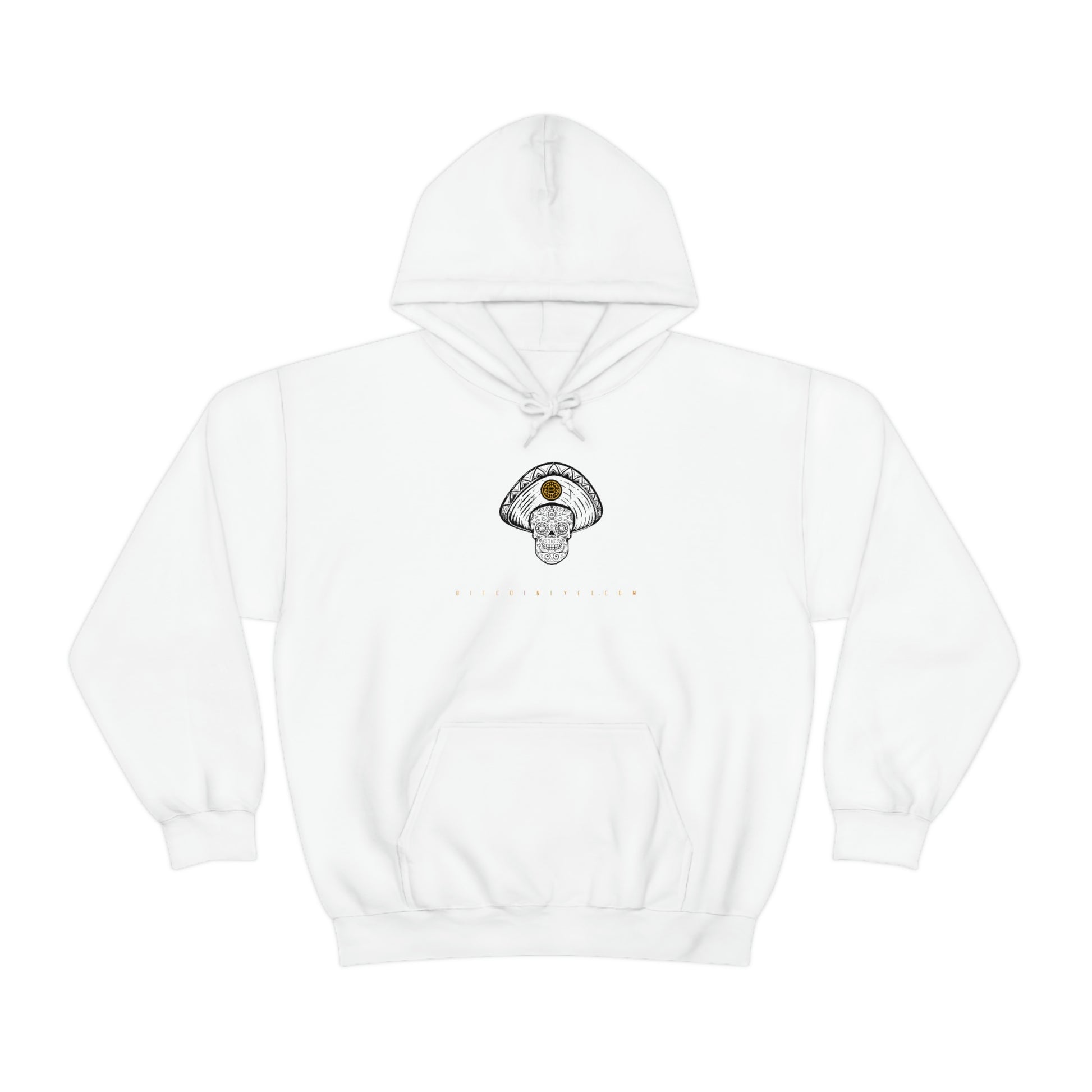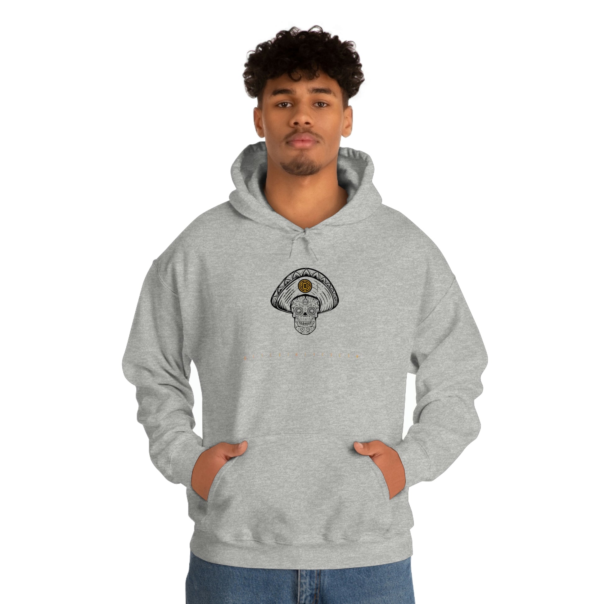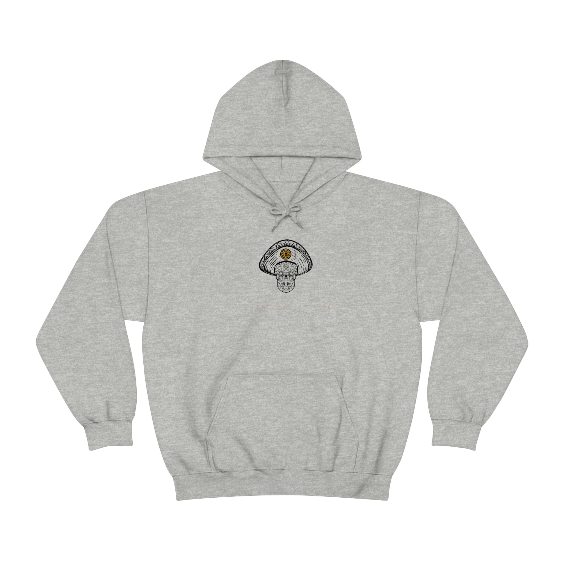 Why not take some of the cool designs celebrating Día de los Muertos and combine them with a creative way to subtly express our conviction or interest in Bitcoin? Yea, that's what we were thinking! hahaha We hope you like these designs. We tried to work in variations of the Bitcoin logo that would compliment the Día de los Muertos skull designs. Who knows...maybe you will attract some fellow orange-pilled individuals along your way and maybe even help to educate others. Ok, well, maybe that's a little deep for a hoodie - so, anyway, we hope you enjoy these designs!