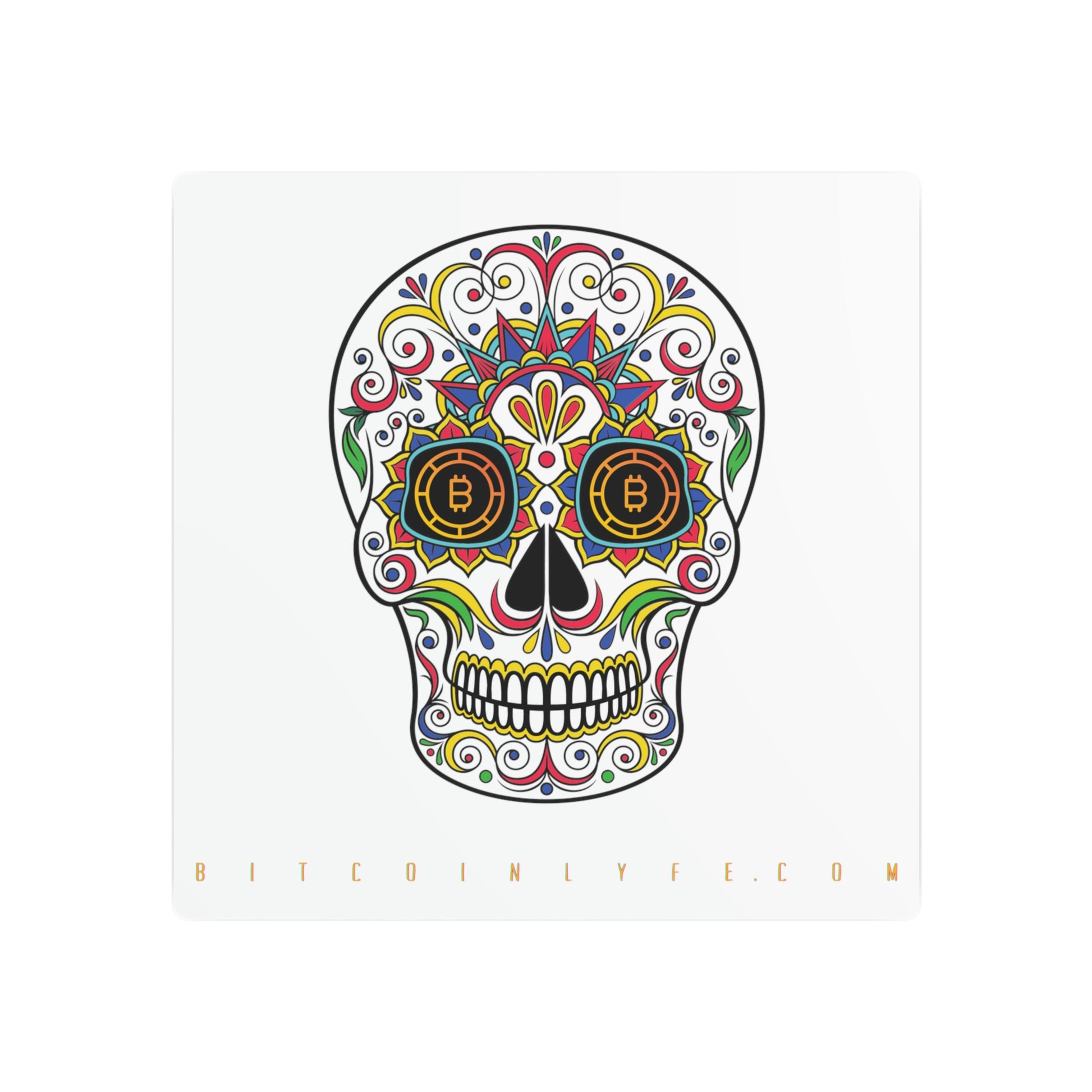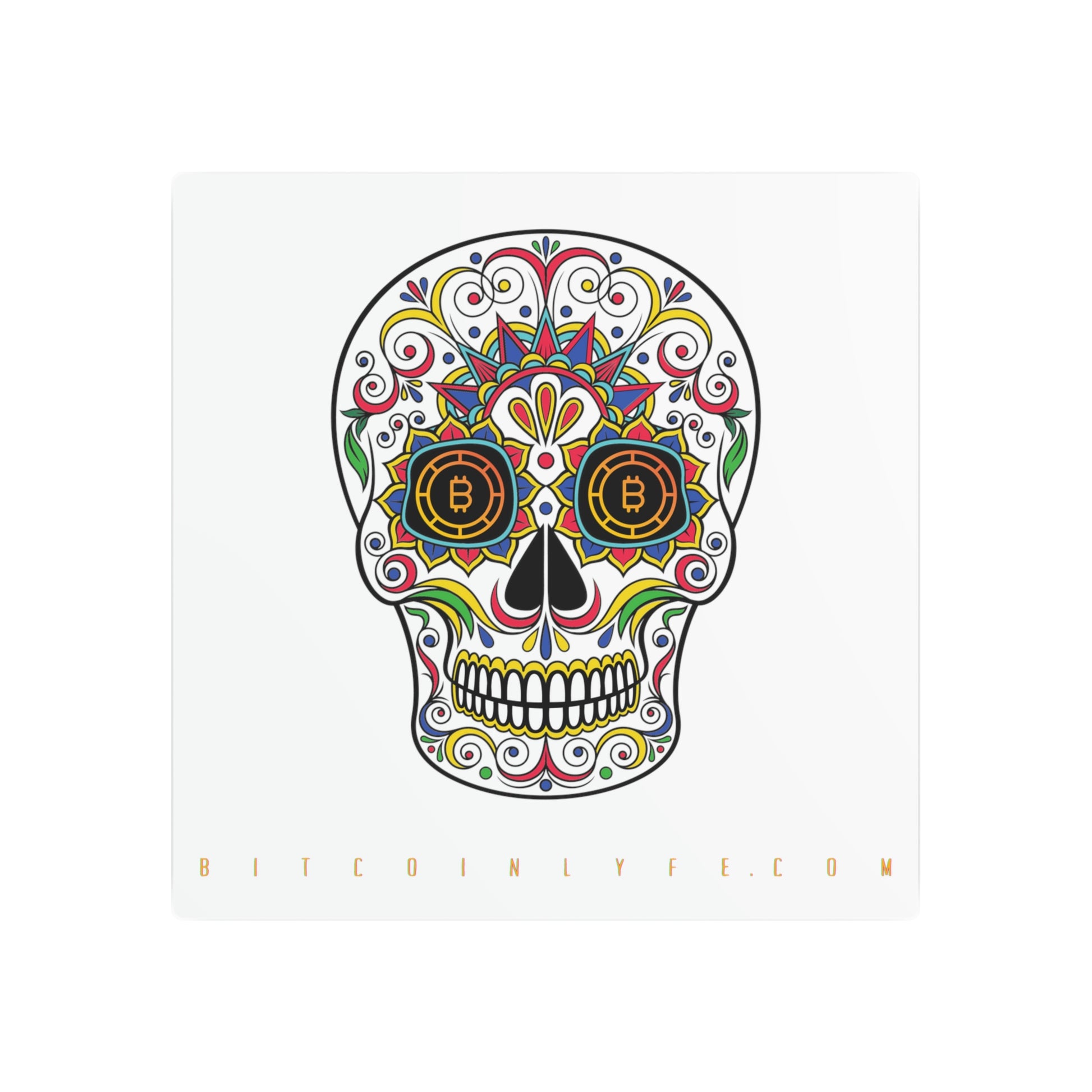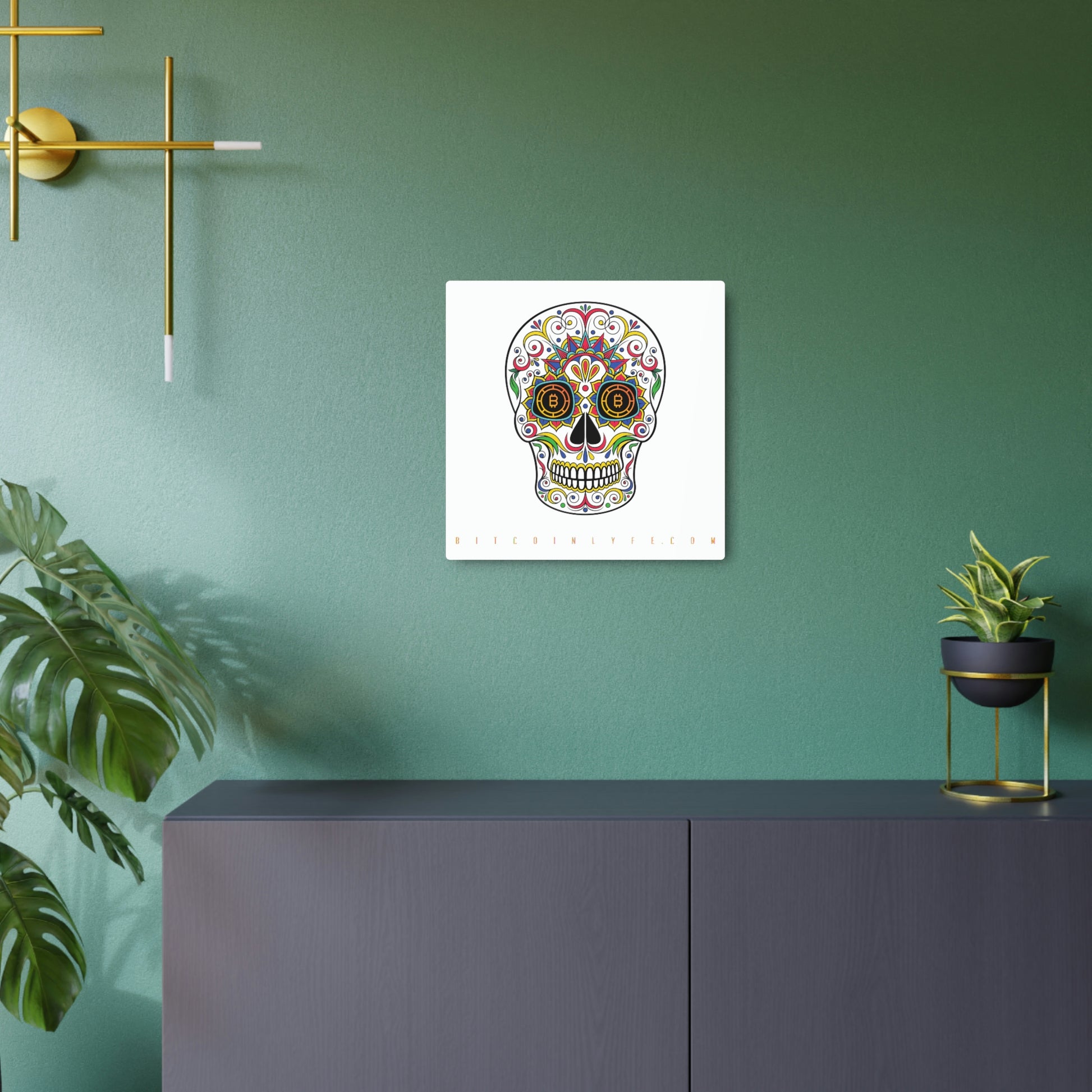 Made with 3mm aluminum composite, these Día de los Muertos Bitcoin signs come with a beautiful matte finish that is ideal for printing. Each sign comes with one mounting block for effortless hanging.