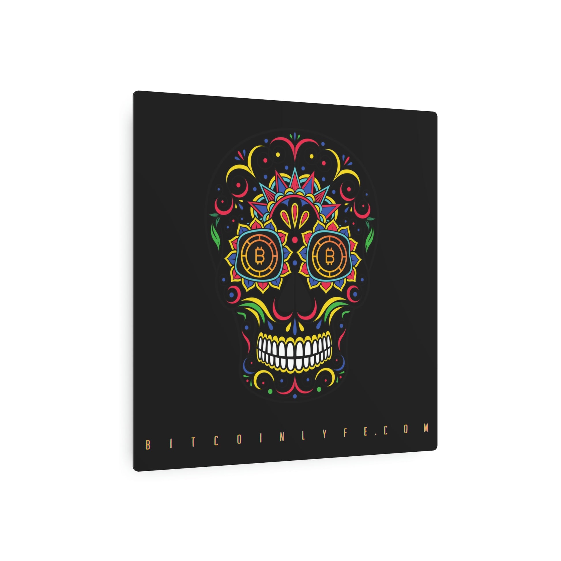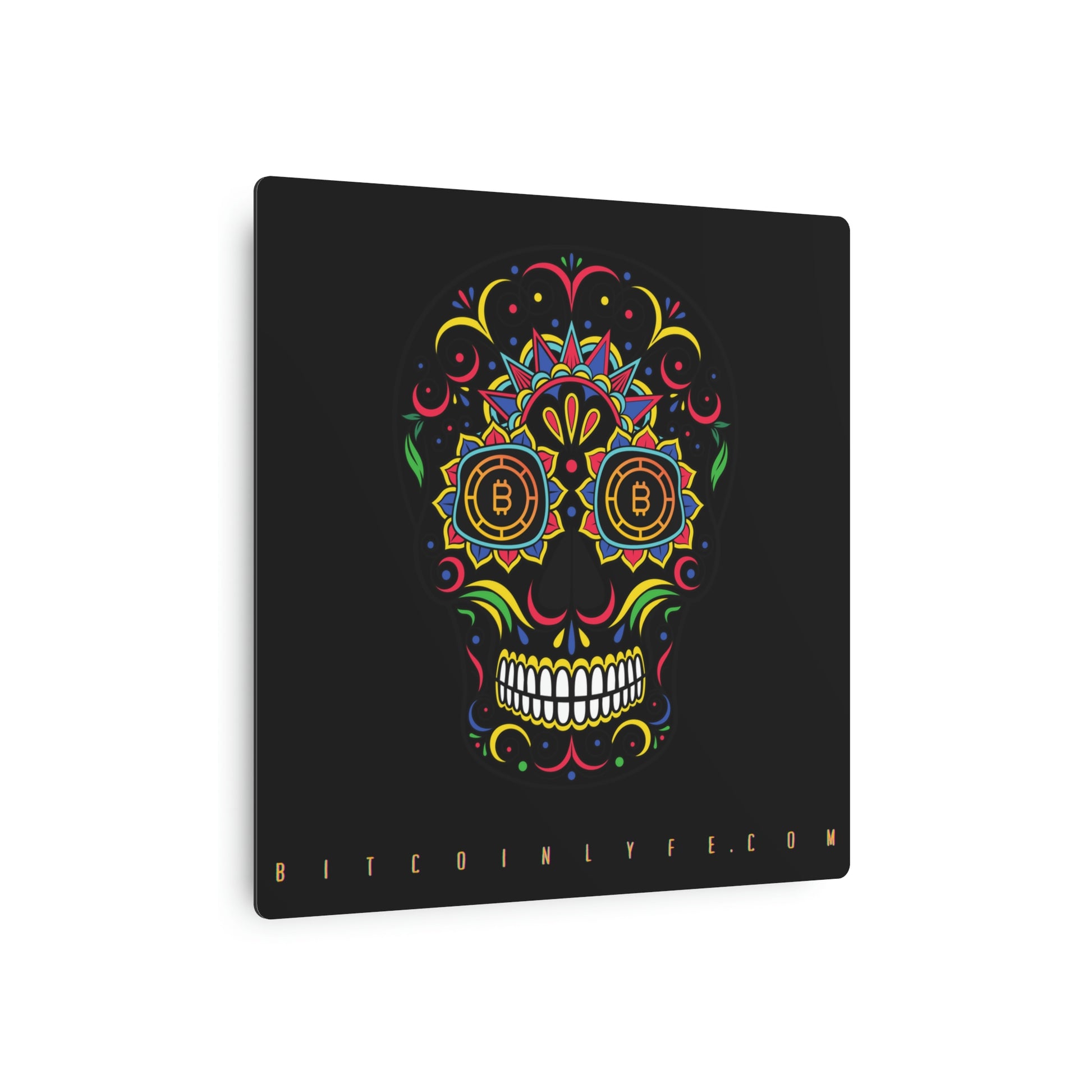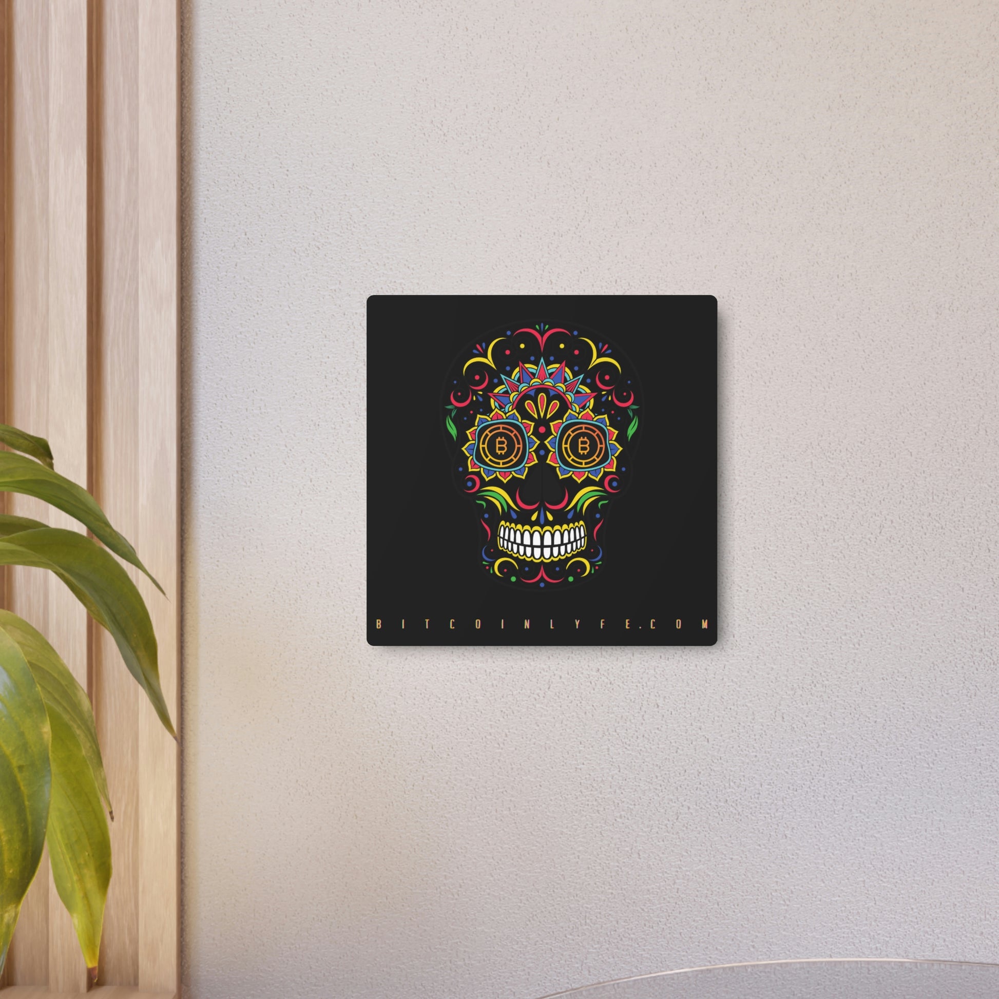 Made with 3mm aluminum composite, these Día de los Muertos Bitcoin signs come with a beautiful matte finish that is ideal for printing. Each sign comes with one mounting block for effortless hanging.