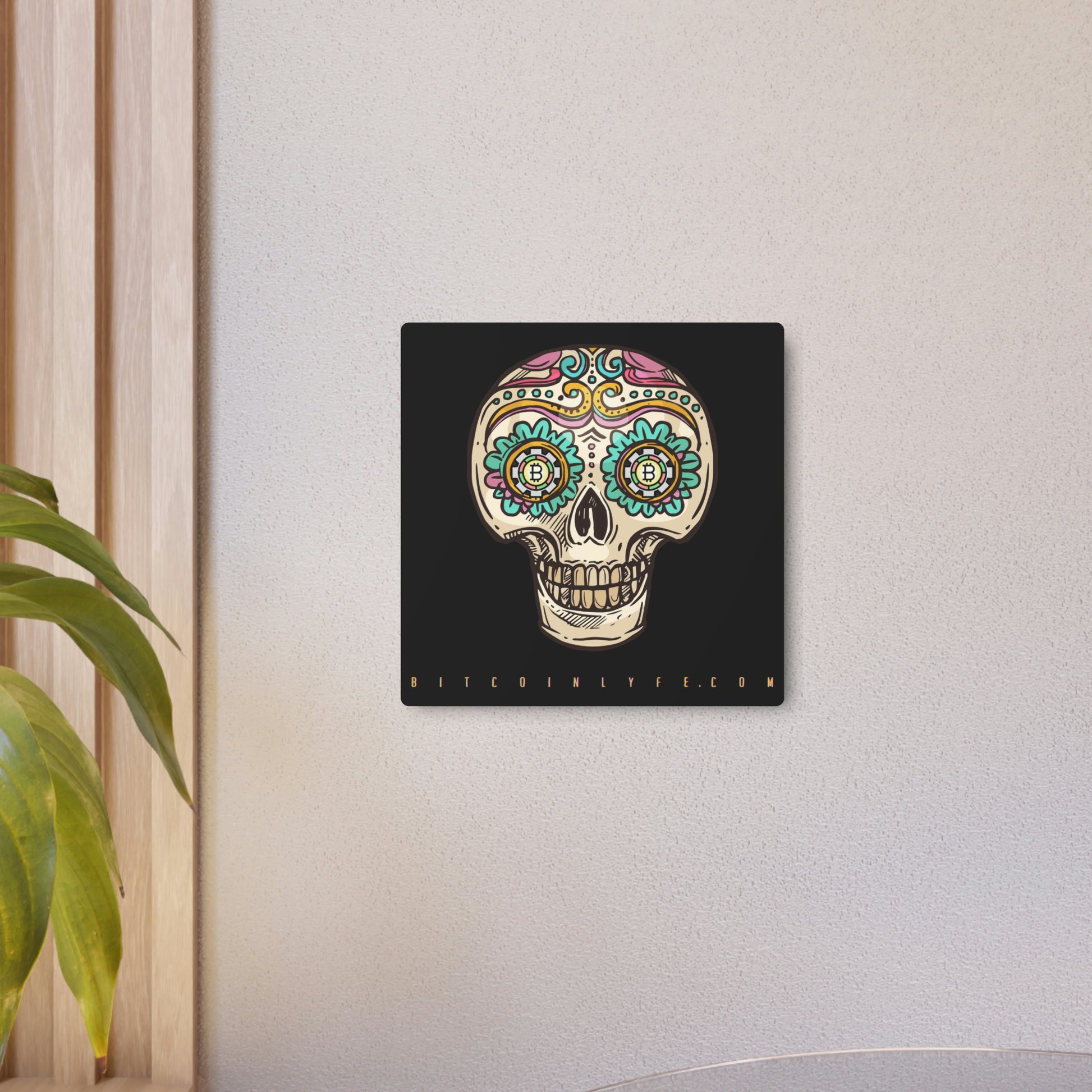 Made with 3mm aluminum composite, these Día de los Muertos Bitcoin signs come with a beautiful matte finish that is ideal for printing. Each sign comes with one mounting block for effortless hanging.