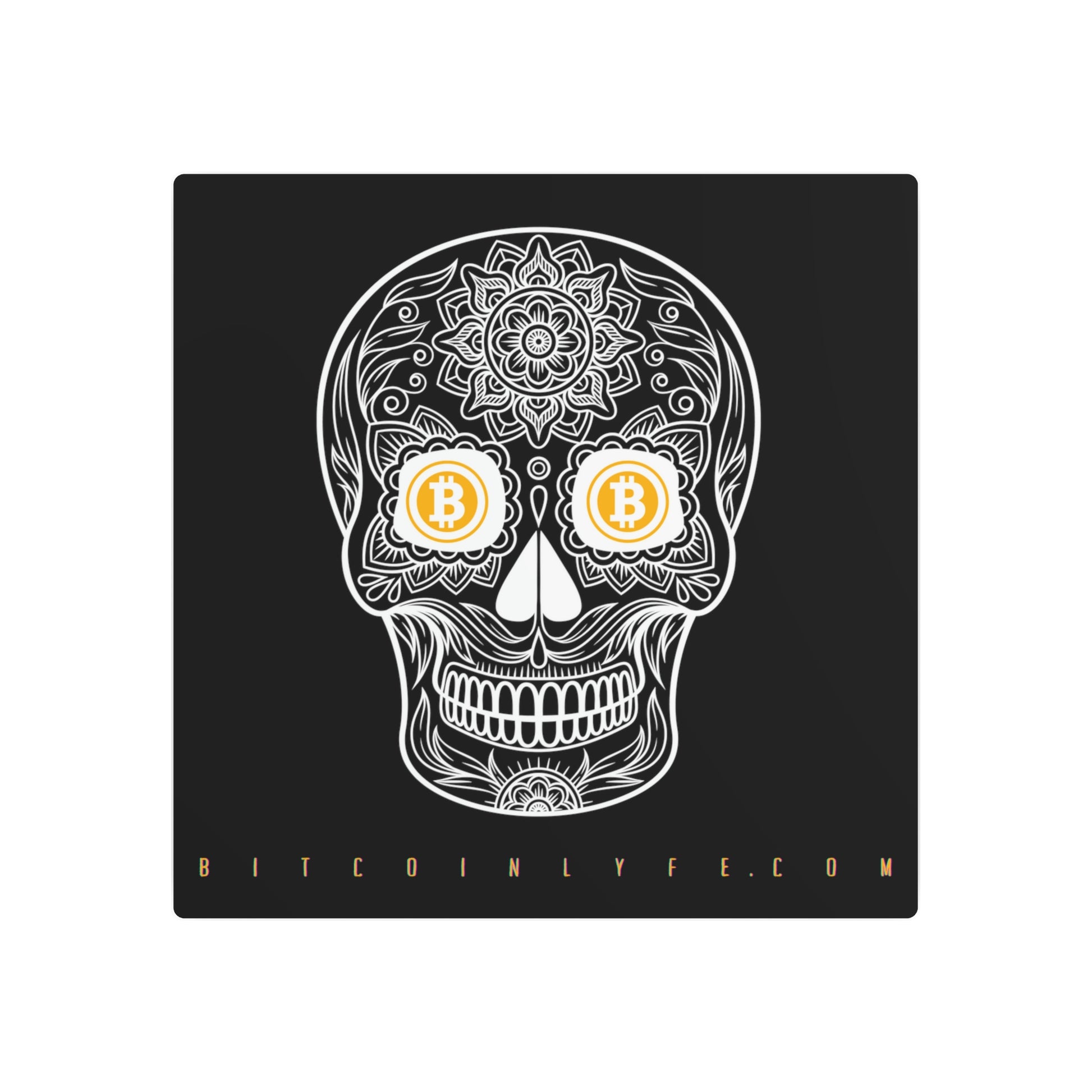 Made with 3mm aluminum composite, these Día de los Muertos Bitcoin signs come with a beautiful matte finish that is ideal for printing. Each sign comes with one mounting block for effortless hanging.