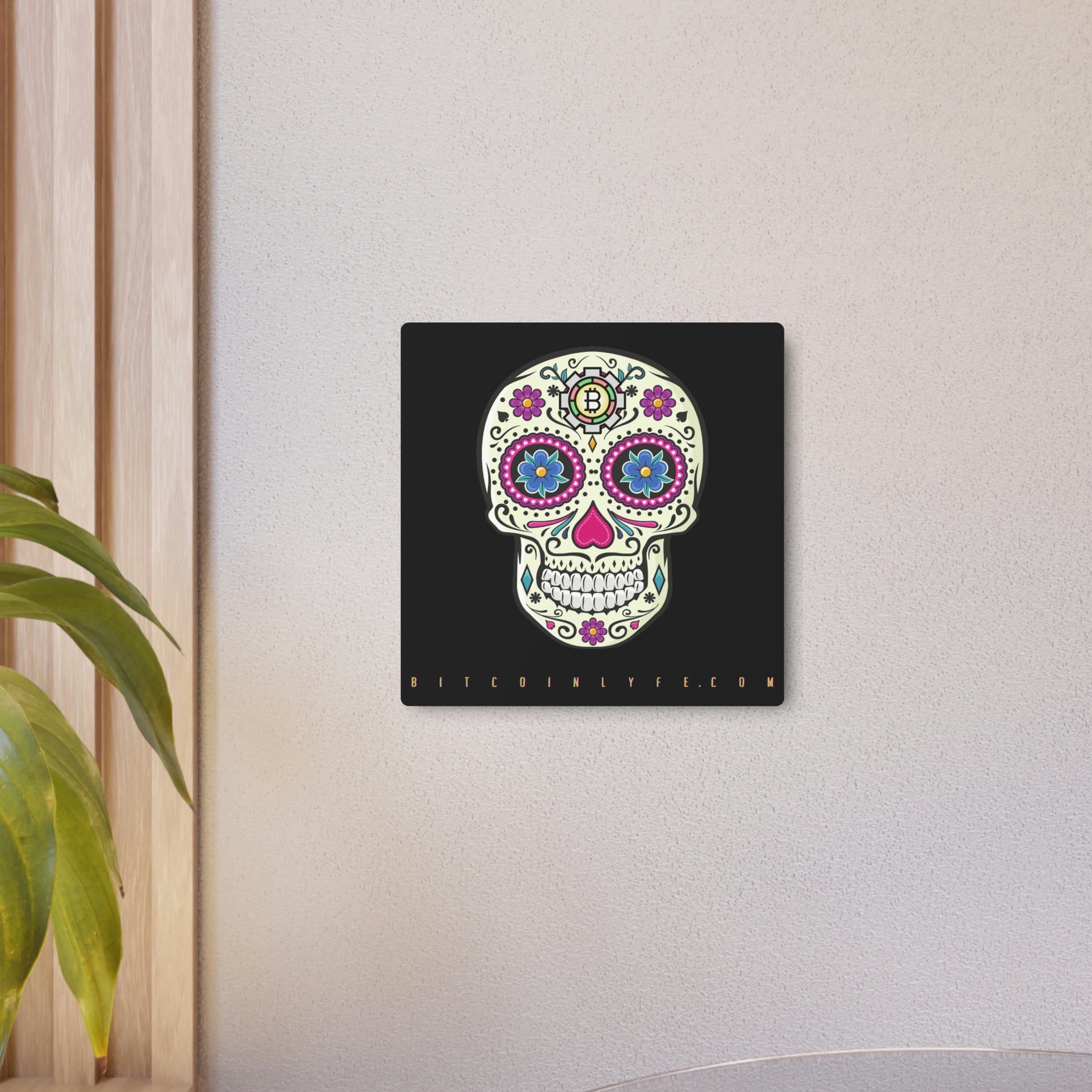 Made with 3mm aluminum composite, these Día de los Muertos Bitcoin signs come with a beautiful matte finish that is ideal for printing. Each sign comes with one mounting block for effortless hanging.