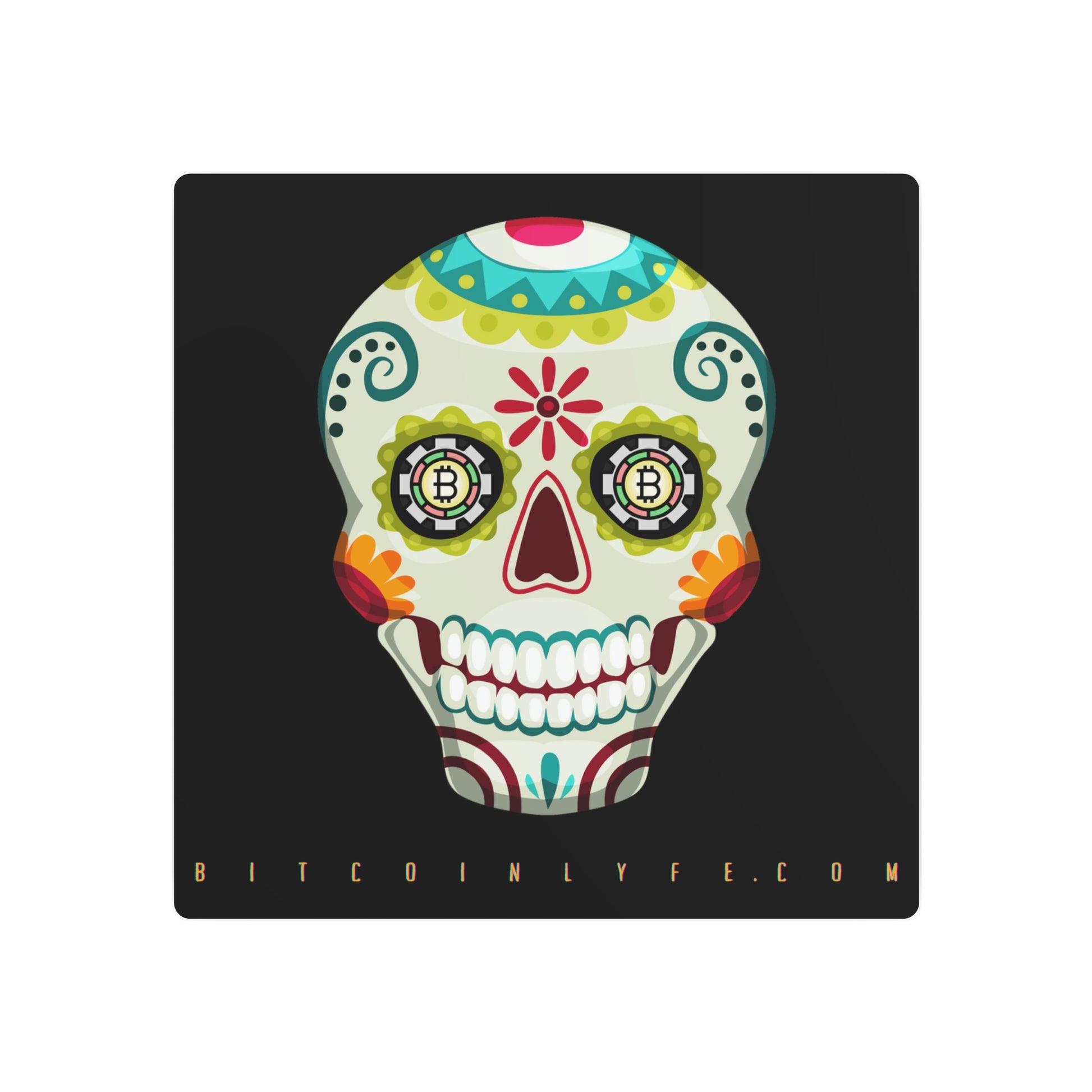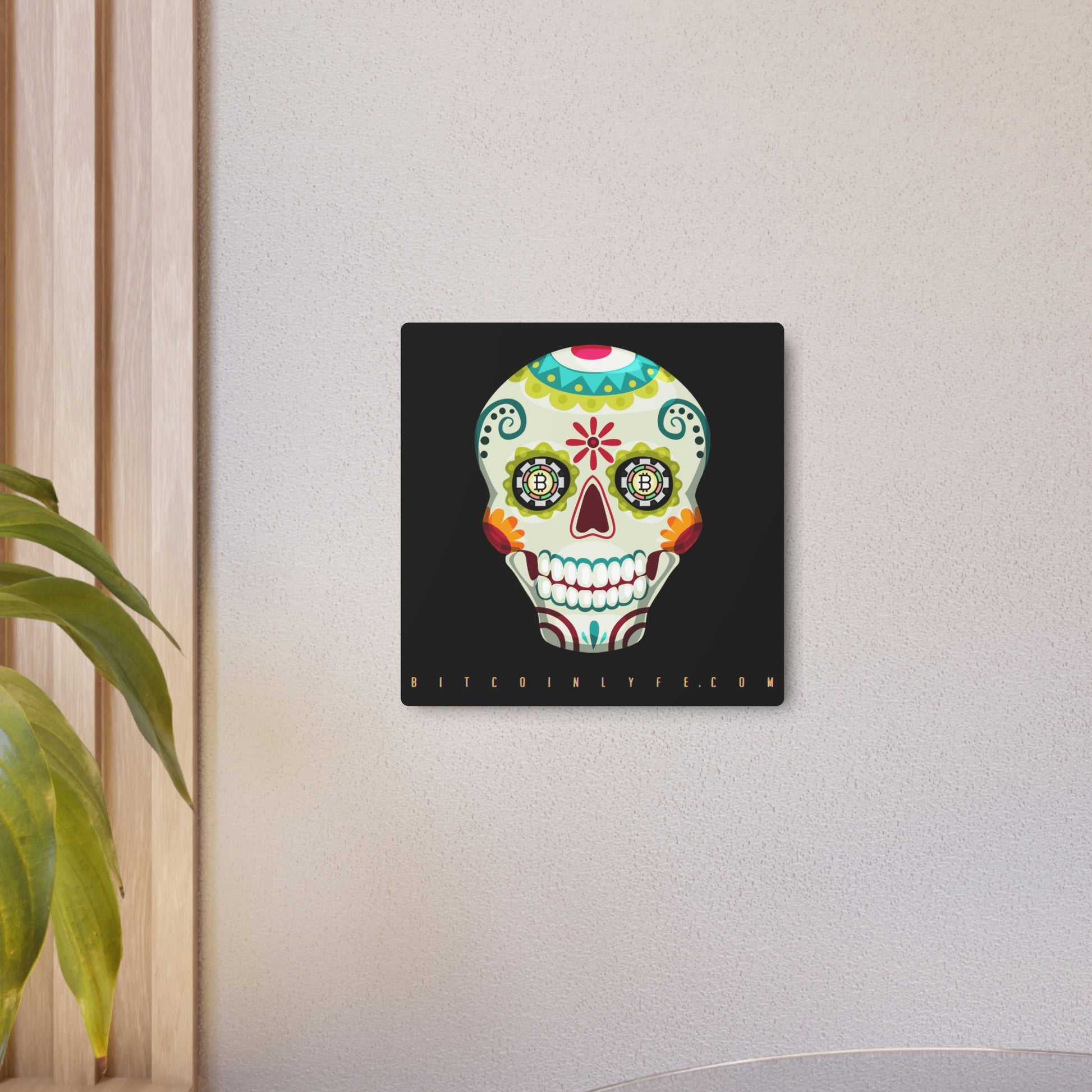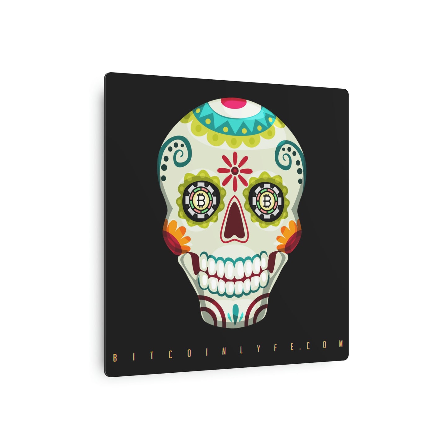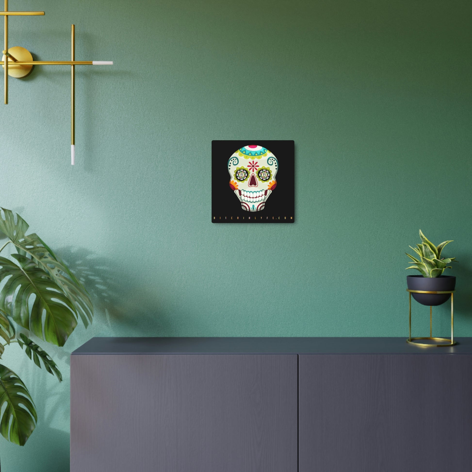 Made with 3mm aluminum composite, these Día de los Muertos Bitcoin signs come with a beautiful matte finish that is ideal for printing. Each sign comes with one mounting block for effortless hanging.