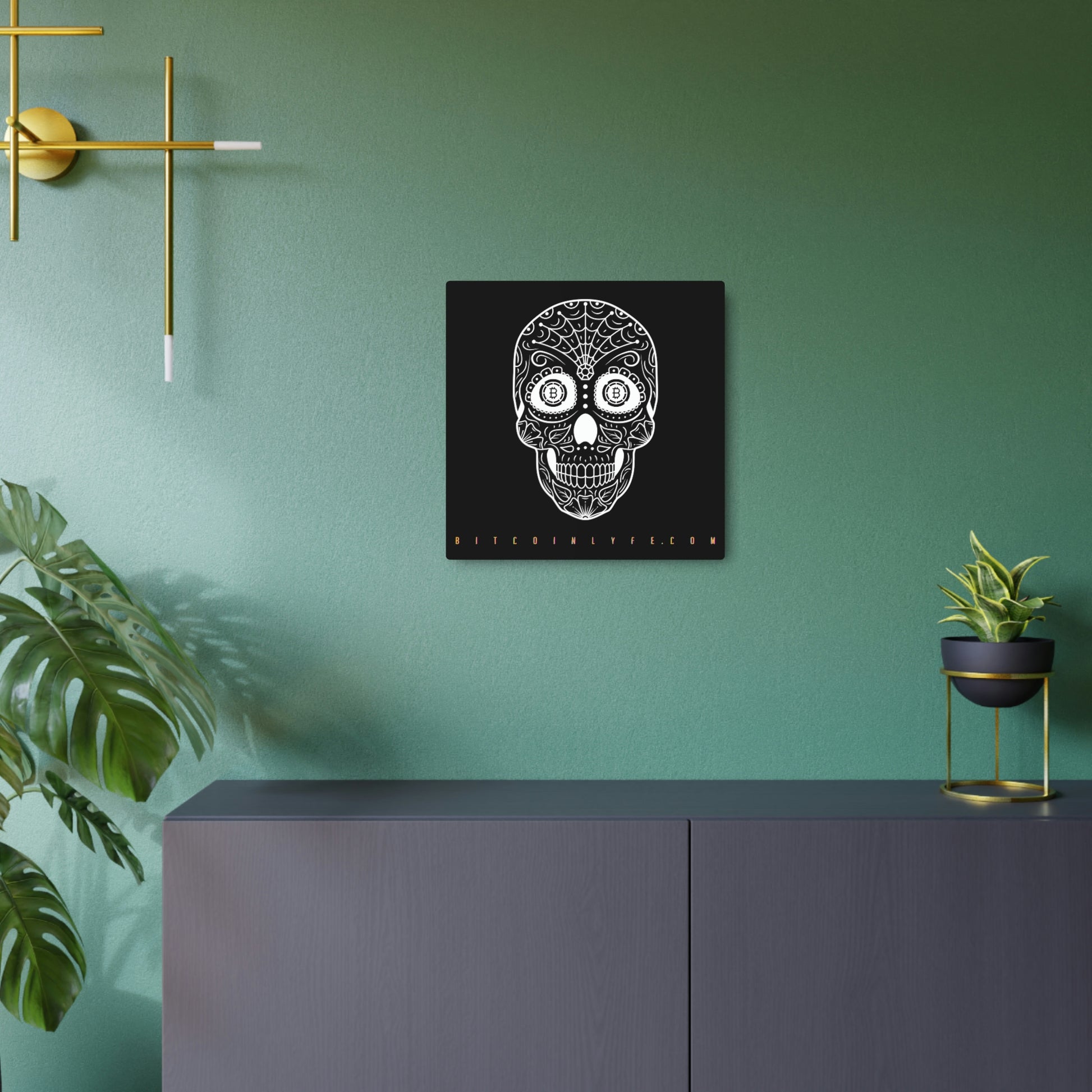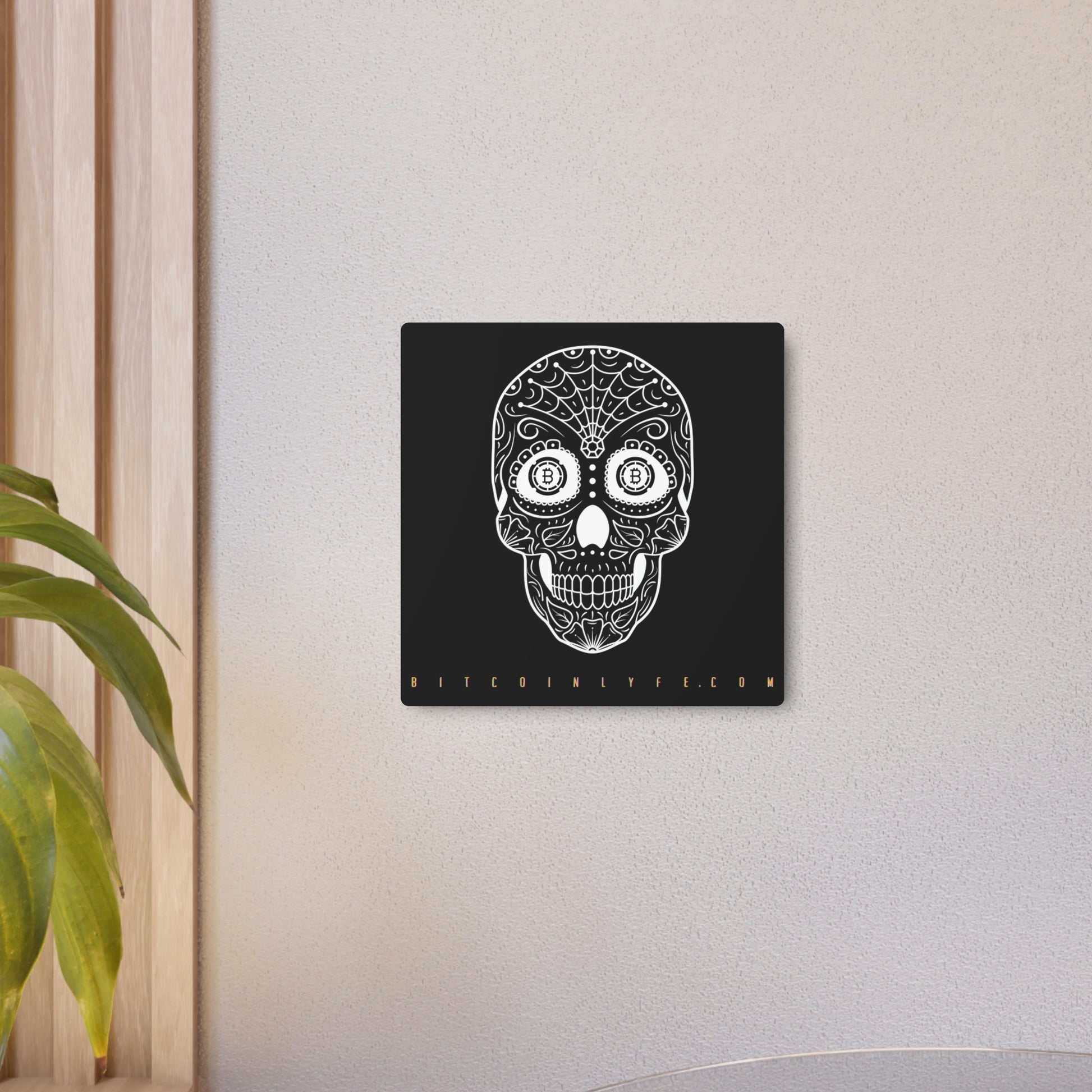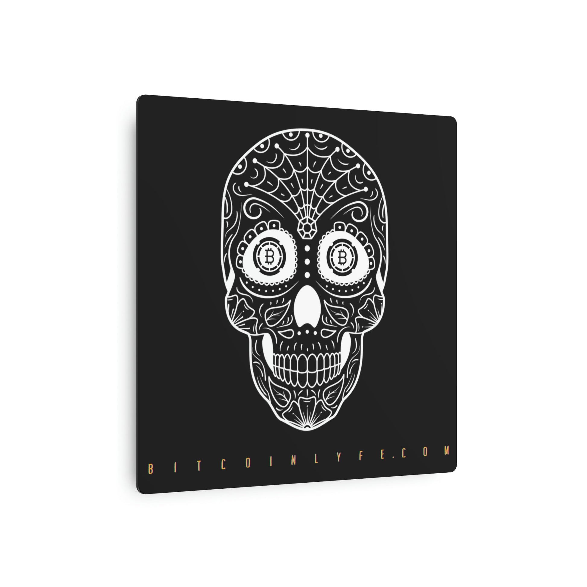 Made with 3mm aluminum composite, these Día de los Muertos Bitcoin signs come with a beautiful matte finish that is ideal for printing. Each sign comes with one mounting block for effortless hanging.