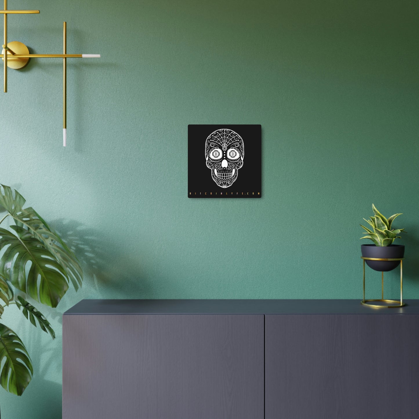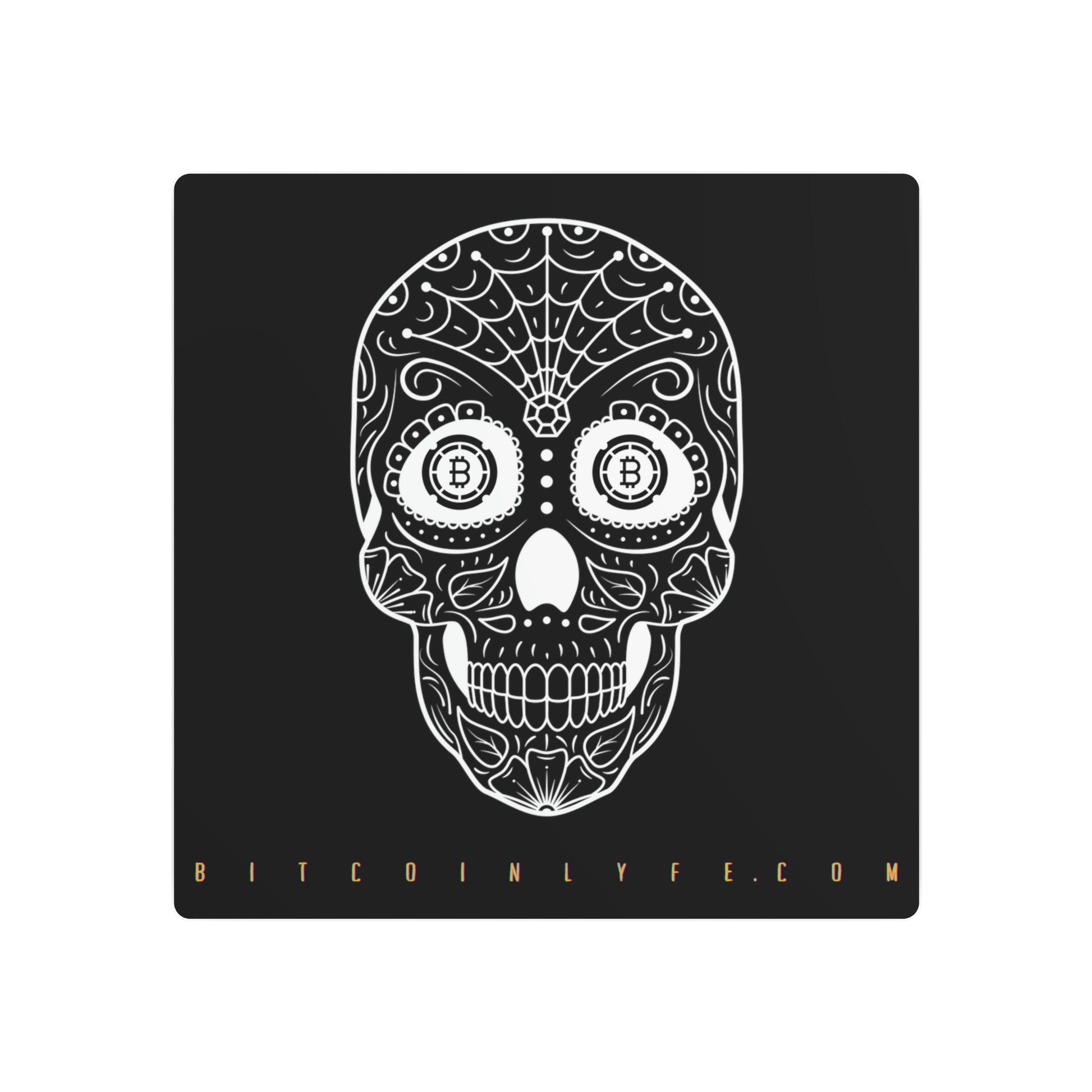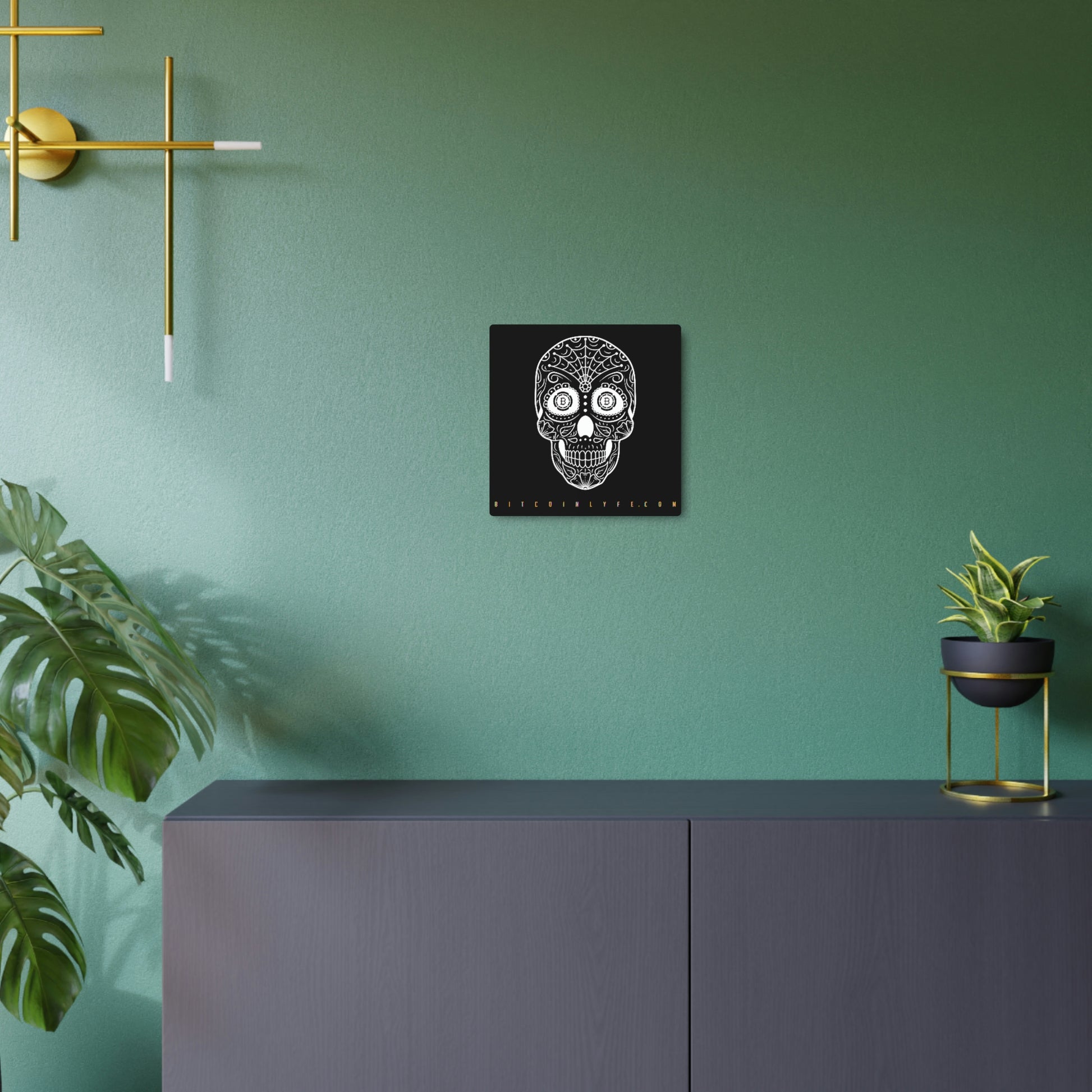 Made with 3mm aluminum composite, these Día de los Muertos Bitcoin signs come with a beautiful matte finish that is ideal for printing. Each sign comes with one mounting block for effortless hanging.