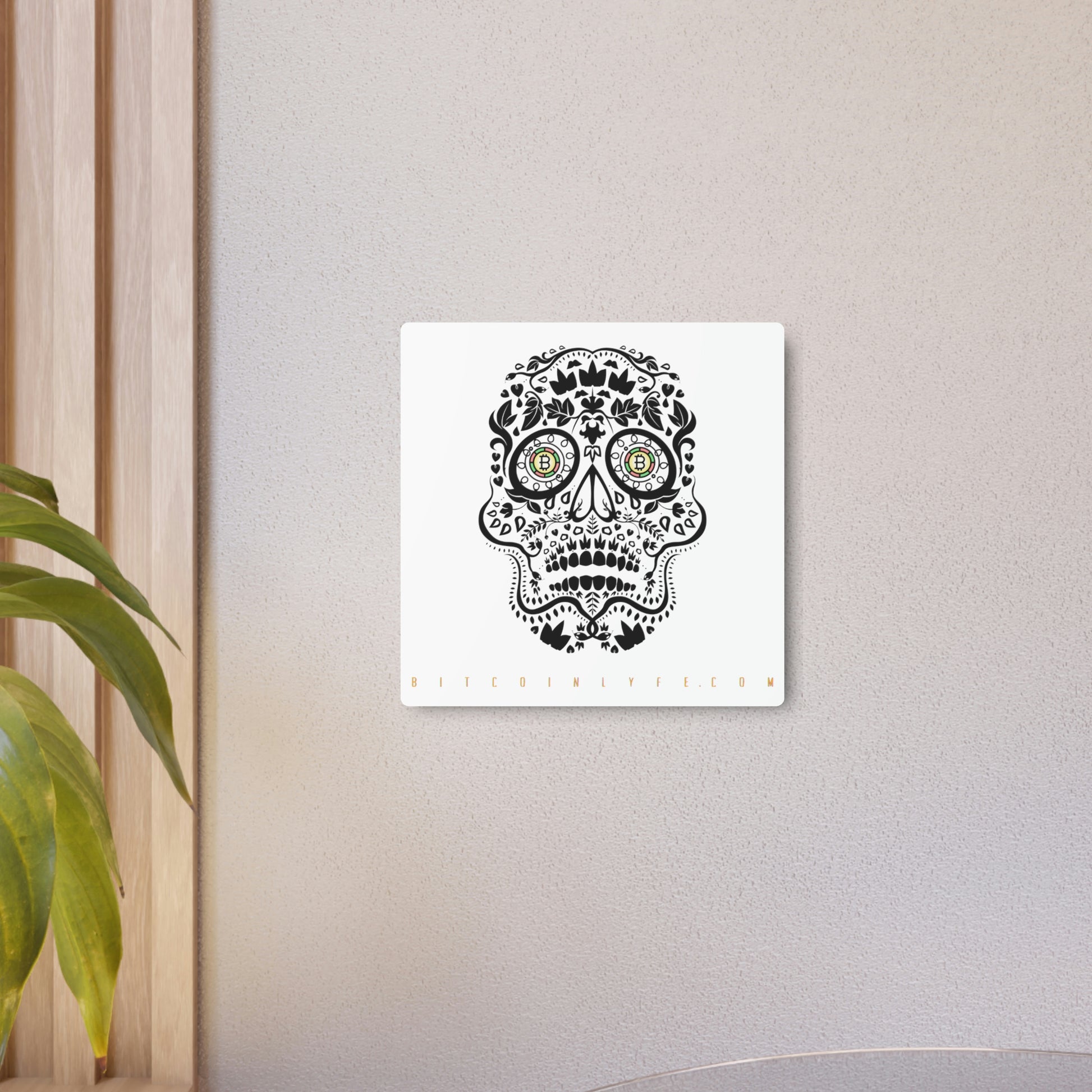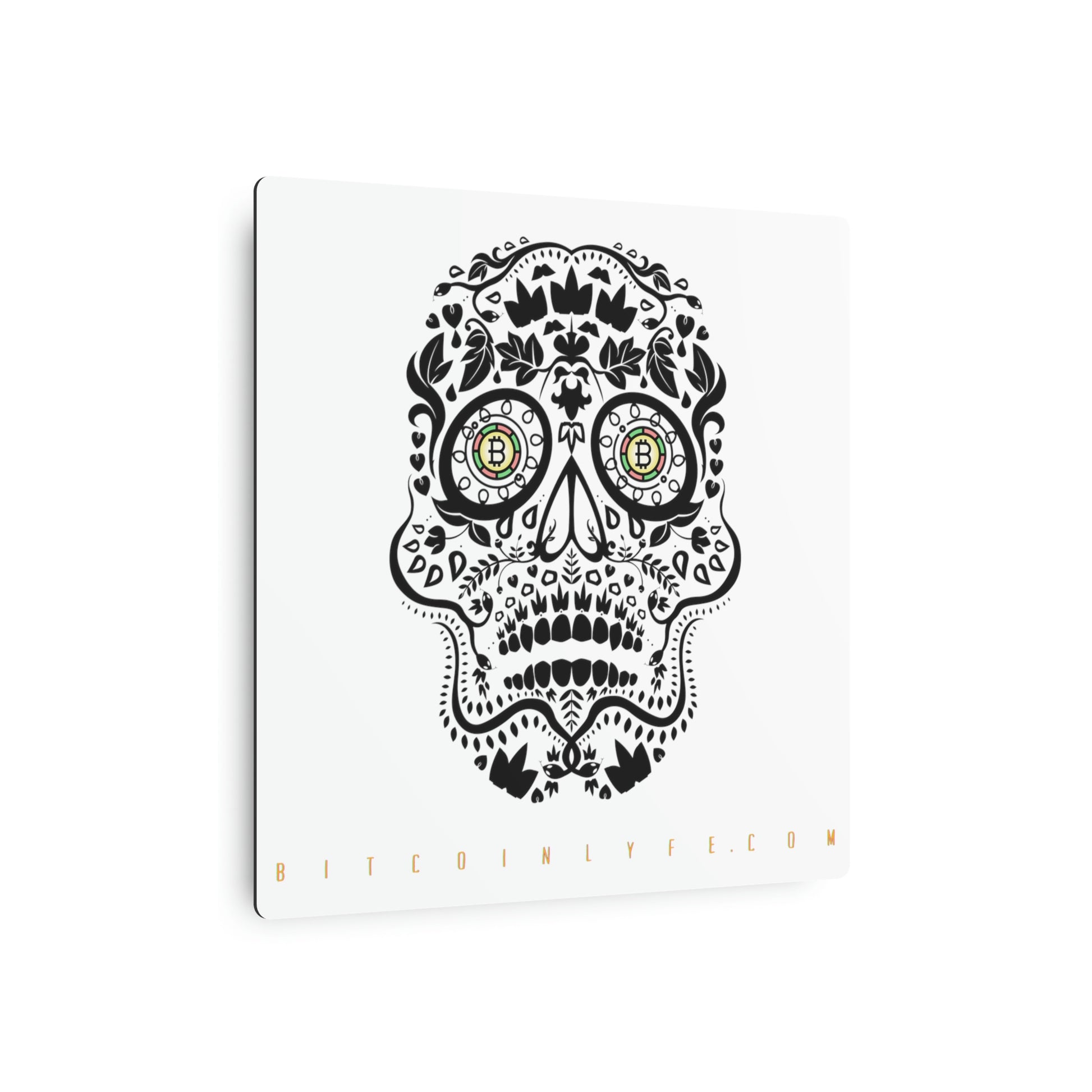 Made with 3mm white aluminum composite, these Día de los Muertos Bitcoin signs come with a beautiful matte finish that is ideal for printing. Each sign comes with one mounting block for effortless hanging.