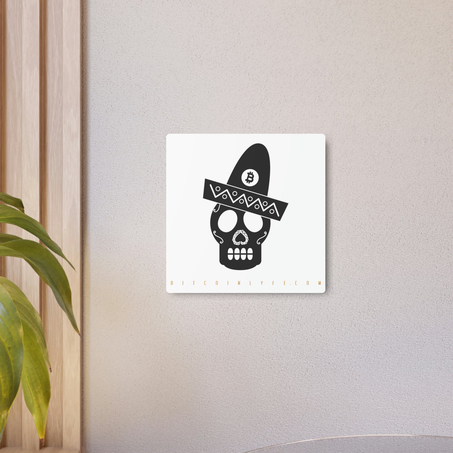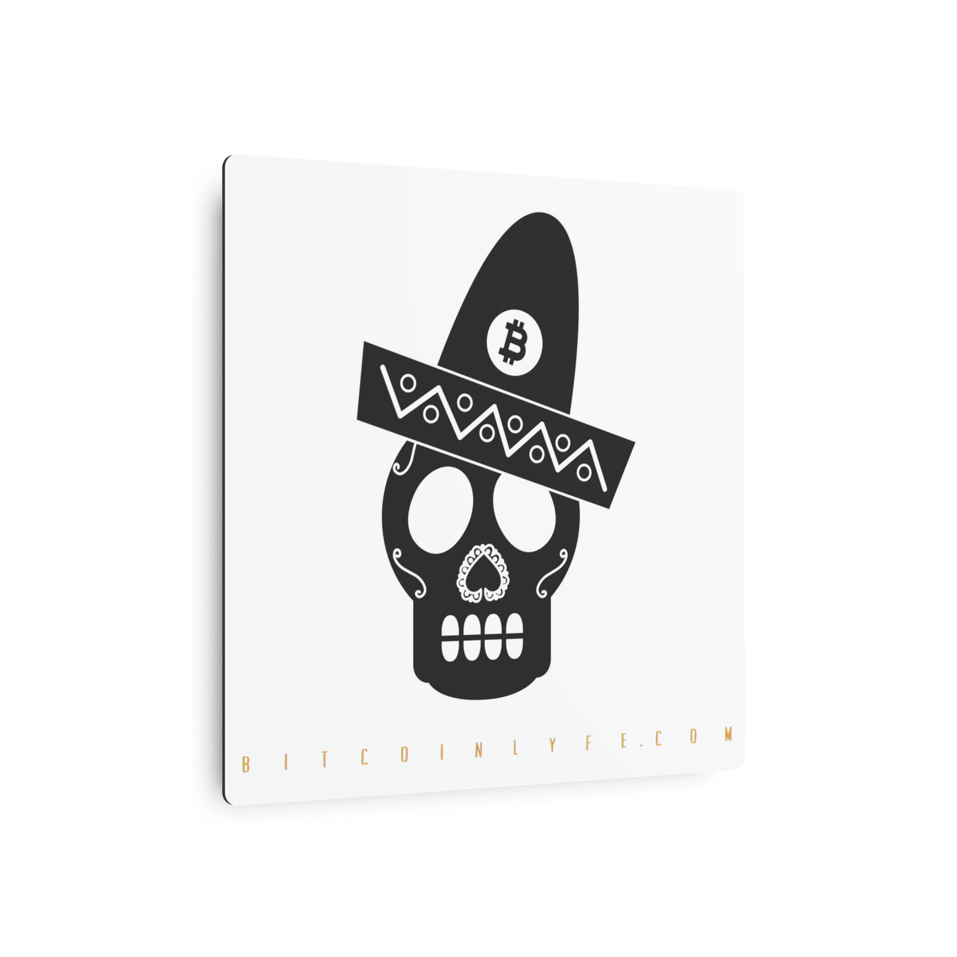 Made with 3mm aluminum composite, these Día de los Muertos Bitcoin signs come with a beautiful matte finish that is ideal for printing. Each sign comes with one mounting block for effortless hanging.