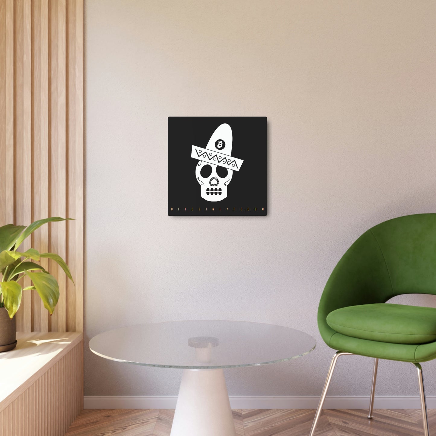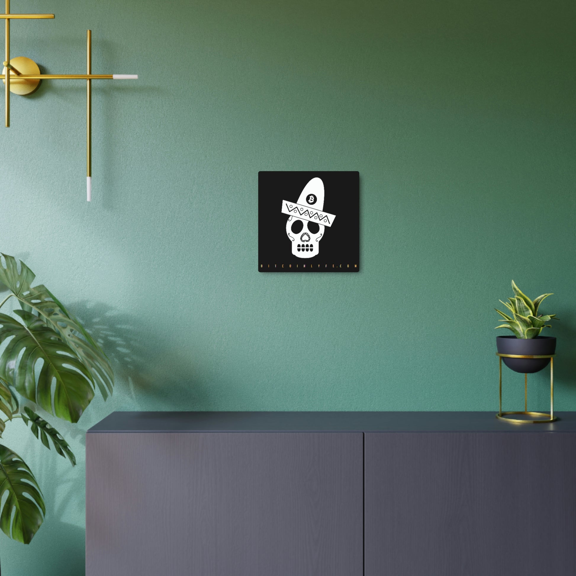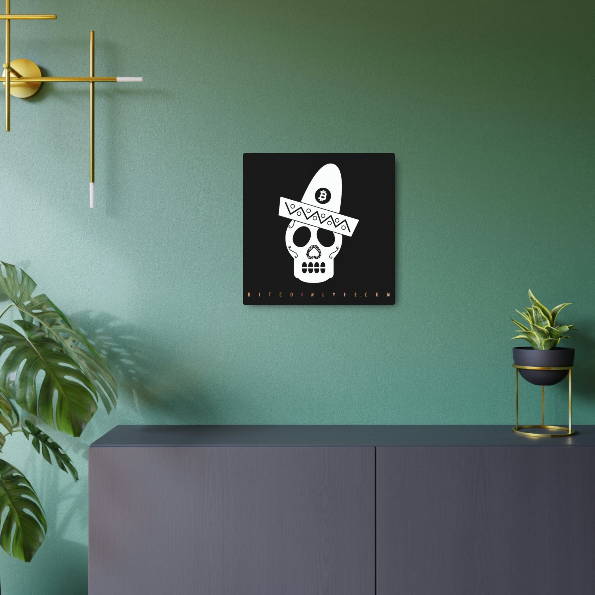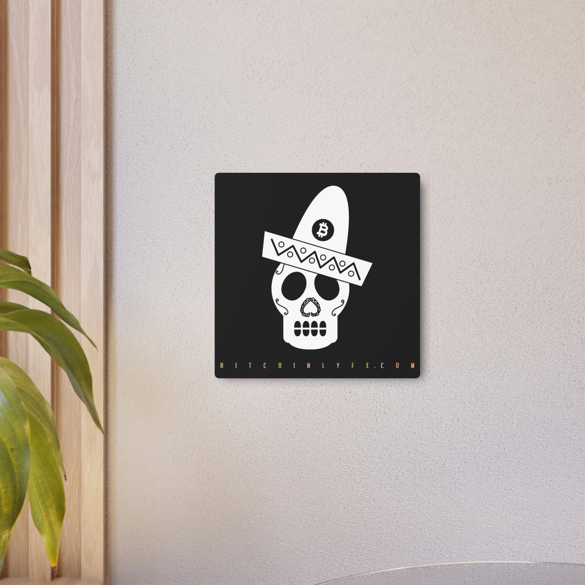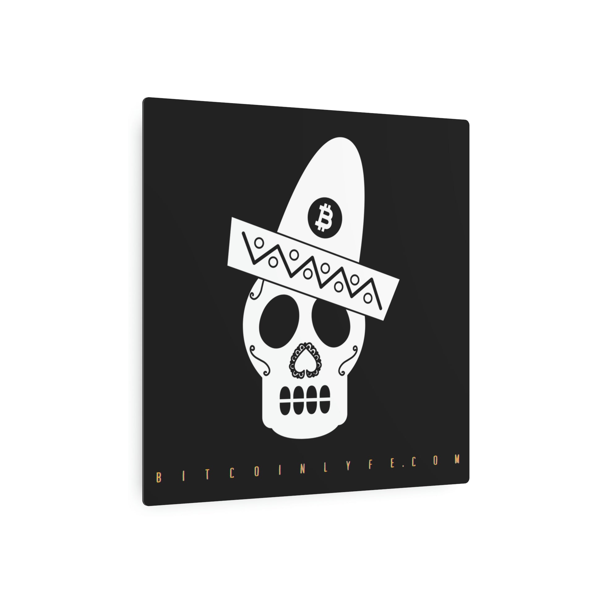 Made with 3mm aluminum composite, these Día de los Muertos Bitcoin signs come with a beautiful matte finish that is ideal for printing. Each sign comes with one mounting block for effortless hanging.