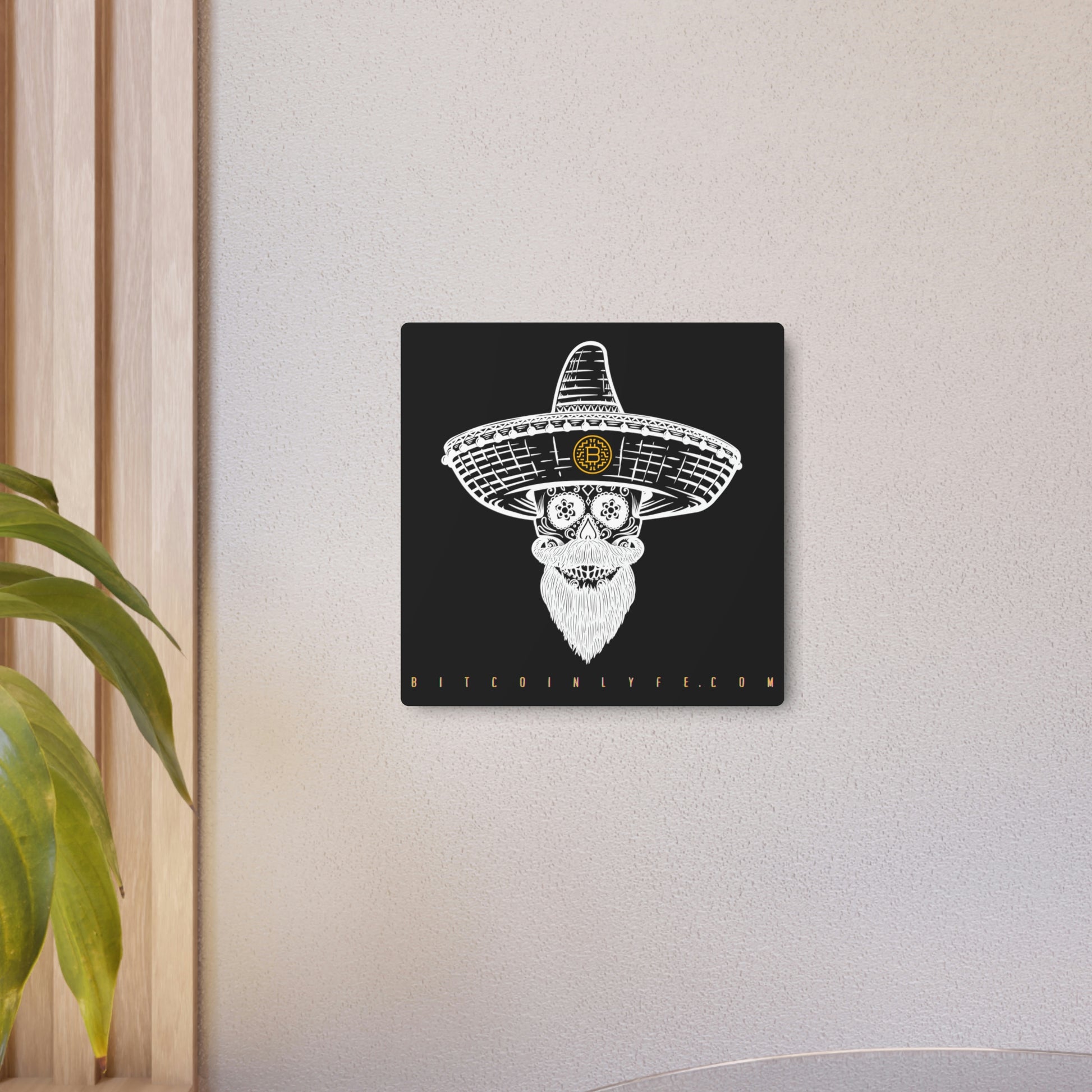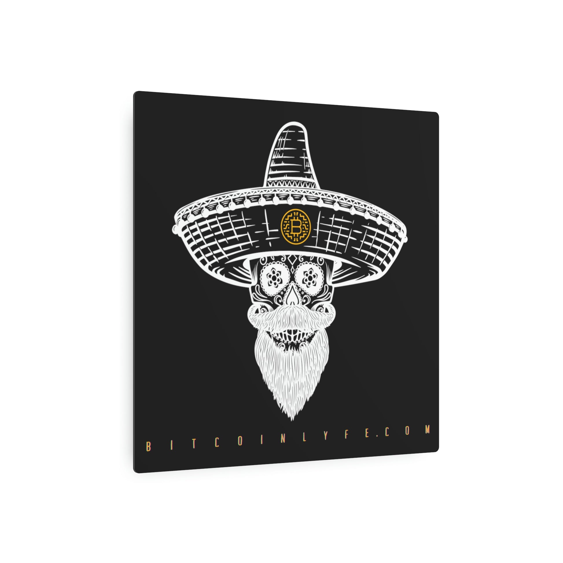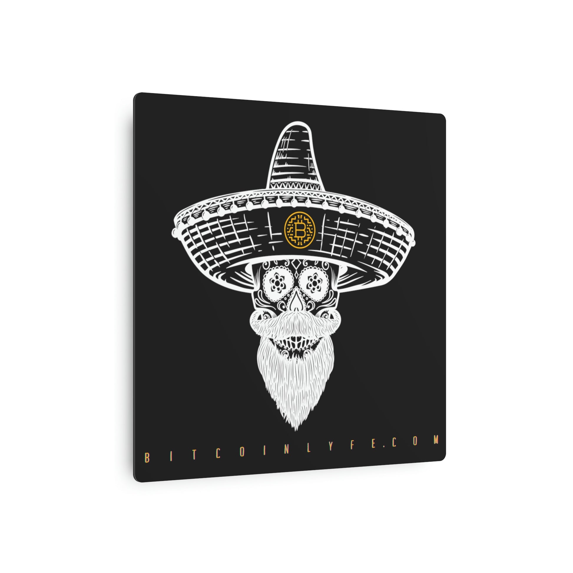 Made with 3mm aluminum composite, these Día de los Muertos Bitcoin signs come with a beautiful matte finish that is ideal for printing. Each sign comes with one mounting block for effortless hanging.