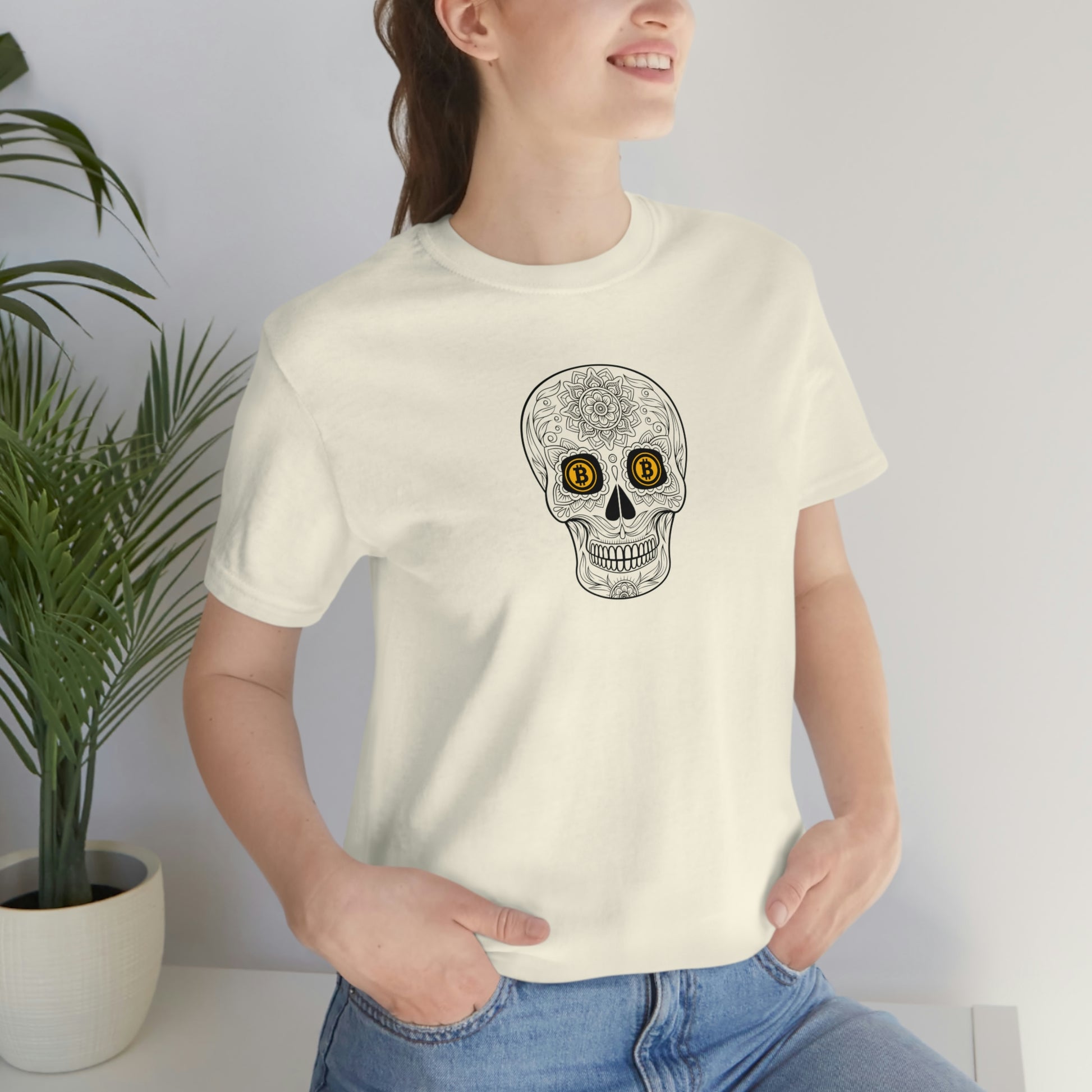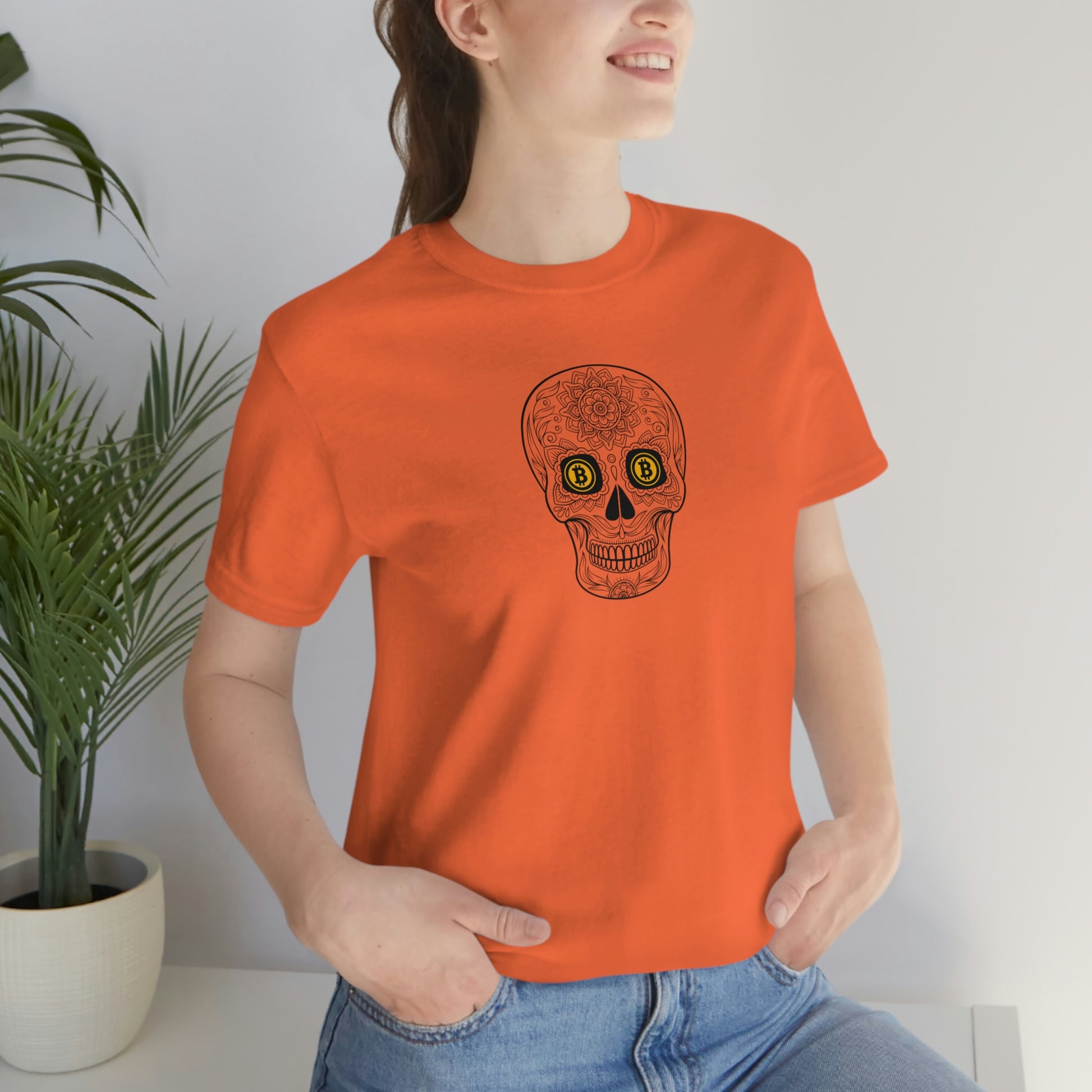 Why not take some of the cool designs celebrating Día de los Muertos and combine them with a creative way to subtly express our conviction or interest in Bitcoin? Yea, that's what we were thinking! hahaha We hope you like these designs. We tried to work in variations of the Bitcoin logo that would compliment the Día de los Muertos skull designs. Who knows...maybe you will attract some fellow orange-pilled individuals along your way and maybe even help to educate others. Ok, well, maybe that's a little deep for a t-shirt - so, anyway, we hope you enjoy these designs!