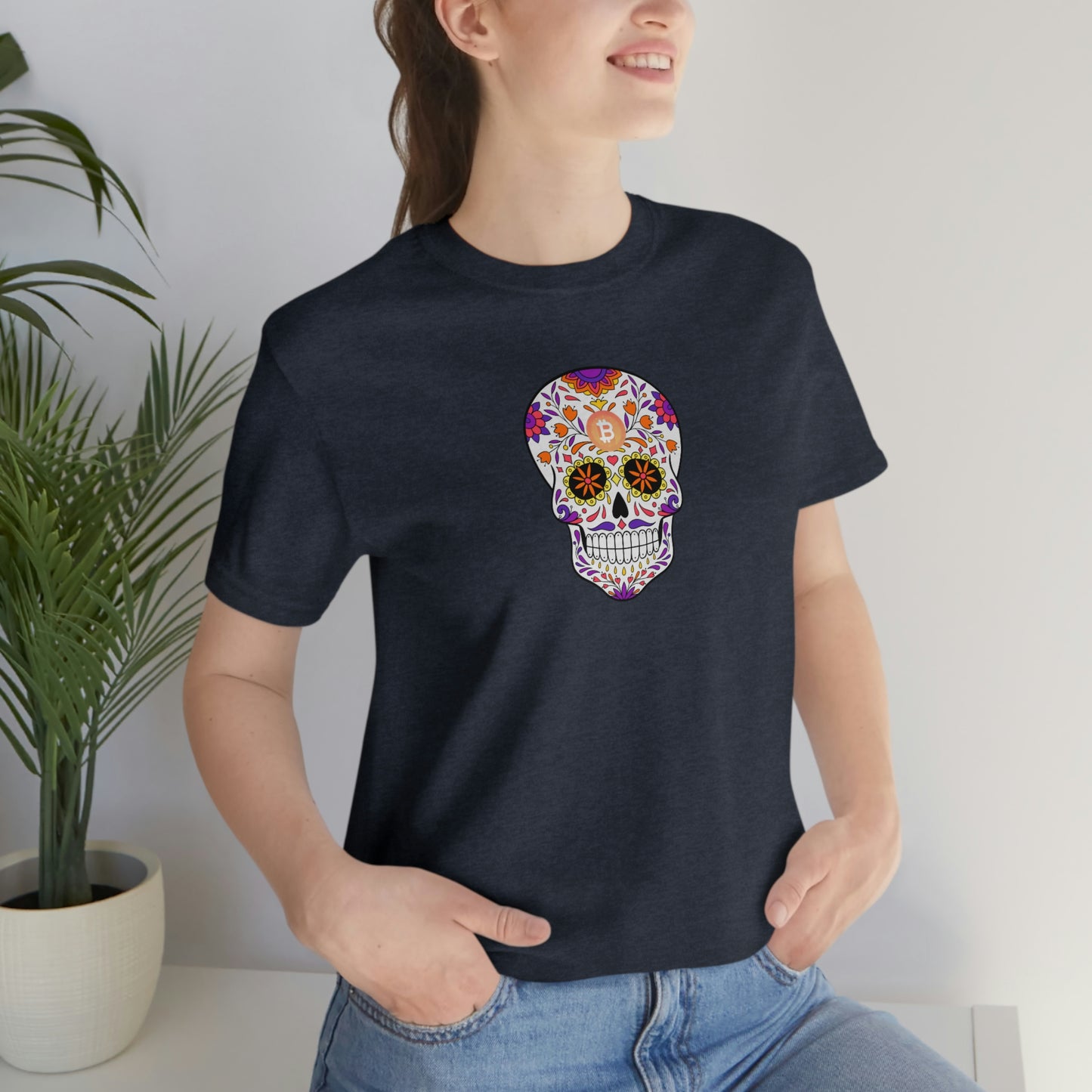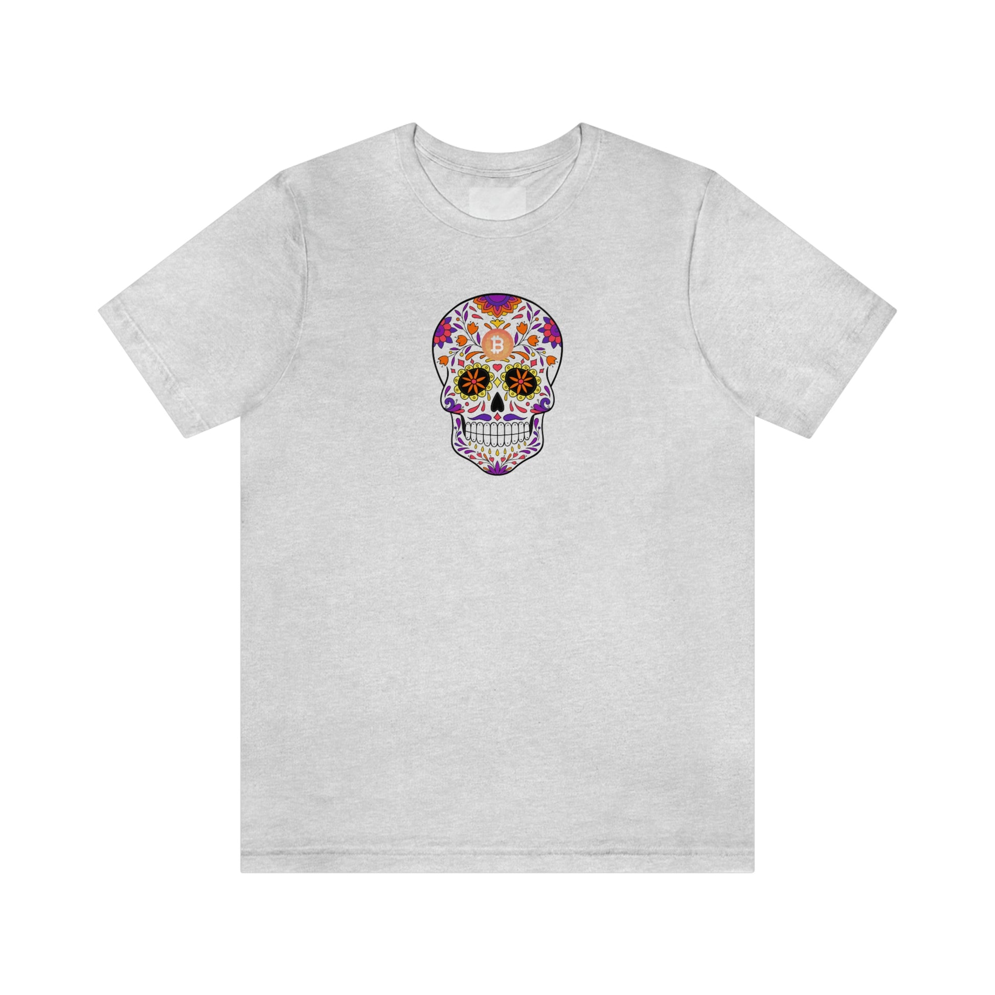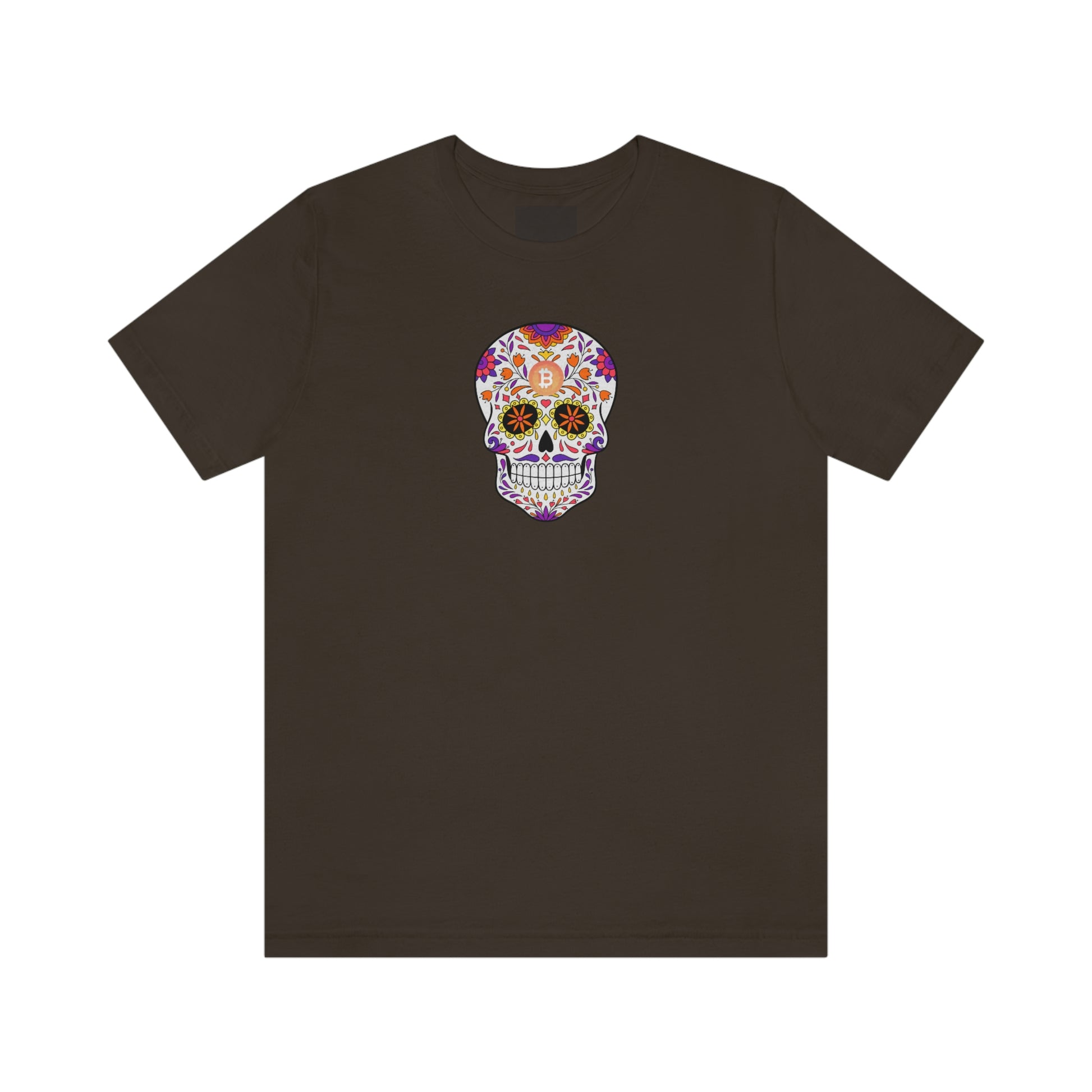 Why not take some of the cool designs celebrating Día de los Muertos and combine them with a creative way to subtly express our conviction or interest in Bitcoin? Yea, that's what we were thinking! hahaha We hope you like these designs. We tried to work in variations of the Bitcoin logo that would compliment the Día de los Muertos skull designs. Who knows...maybe you will attract some fellow orange-pilled individuals along your way and maybe even help to educate others. Ok, well, maybe that's a little deep for a t-shirt - so, anyway, we hope you enjoy these designs!