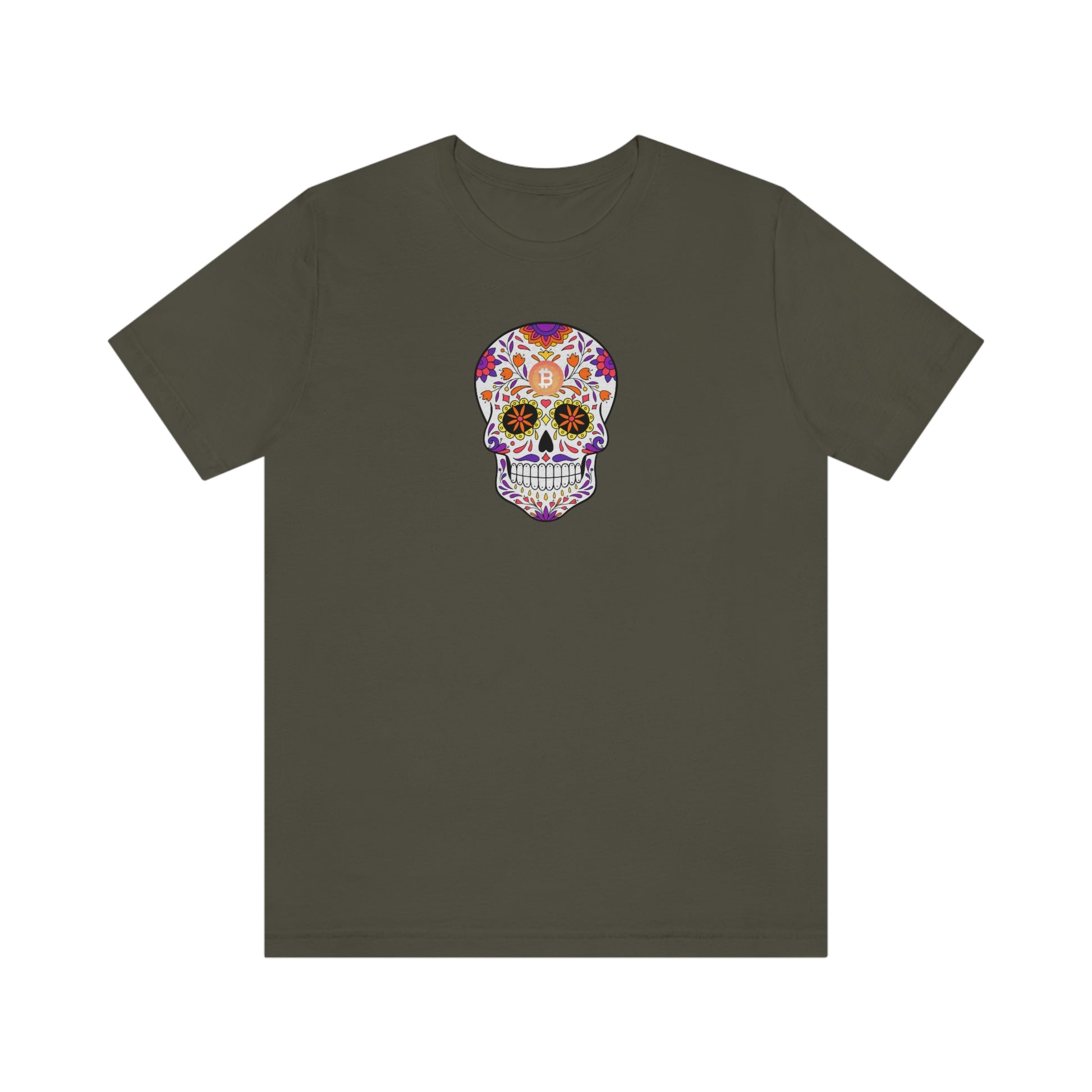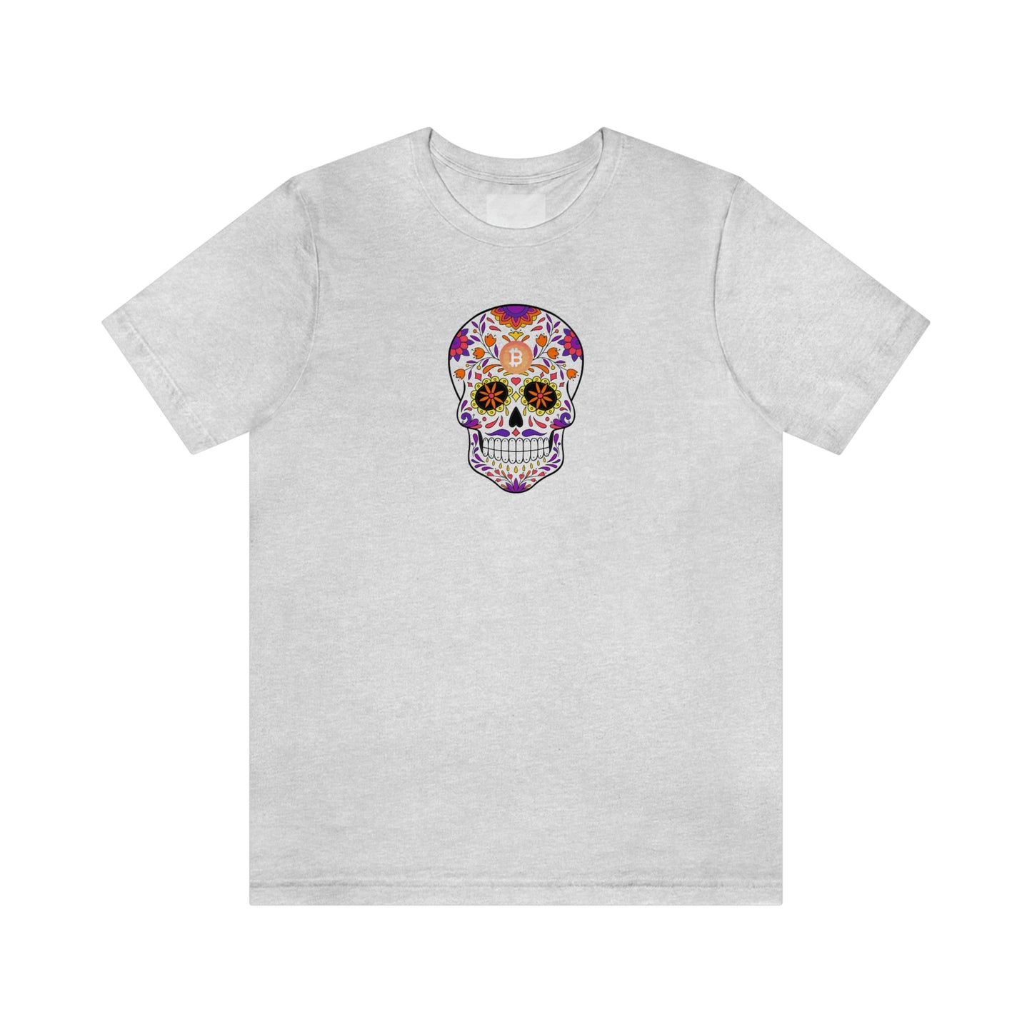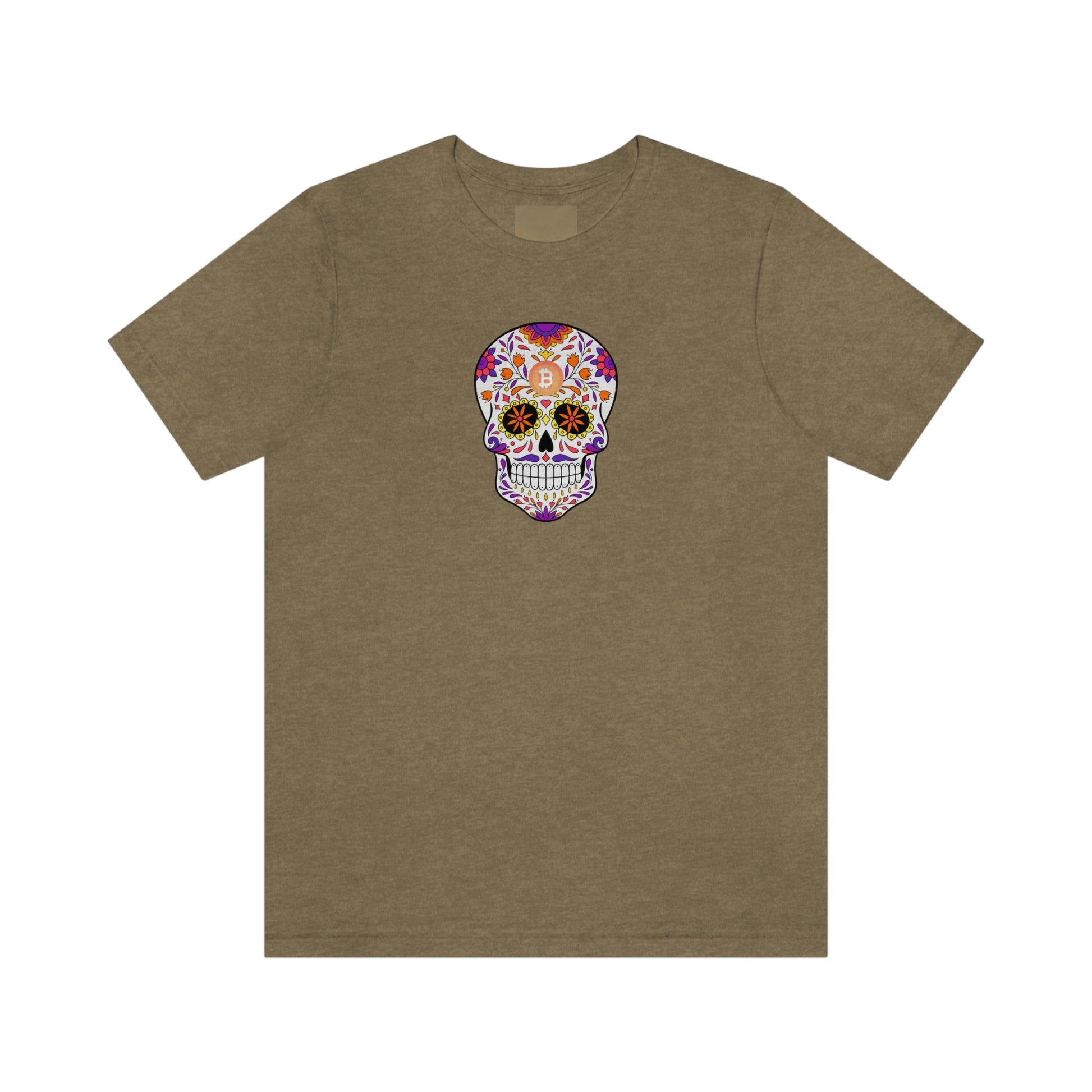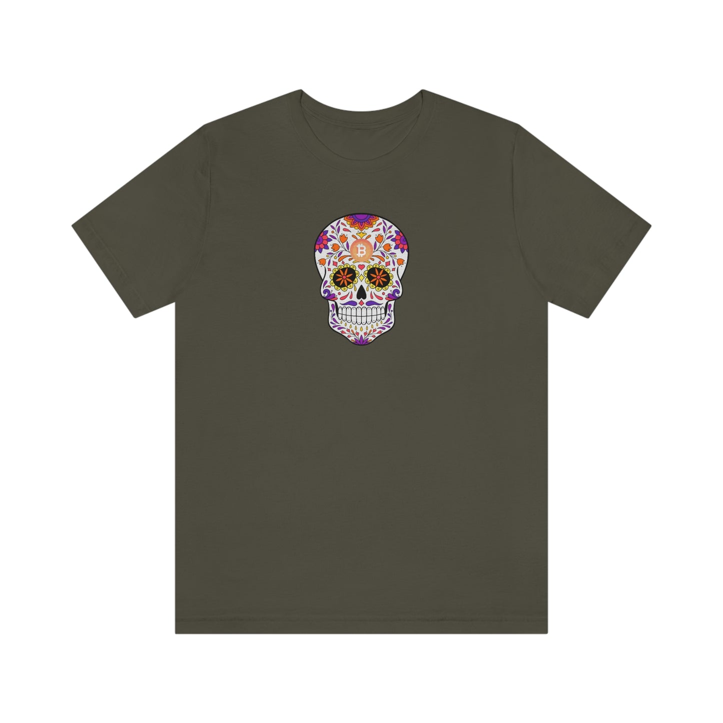 Why not take some of the cool designs celebrating Día de los Muertos and combine them with a creative way to subtly express our conviction or interest in Bitcoin? Yea, that's what we were thinking! hahaha We hope you like these designs. We tried to work in variations of the Bitcoin logo that would compliment the Día de los Muertos skull designs. Who knows...maybe you will attract some fellow orange-pilled individuals along your way and maybe even help to educate others. Ok, well, maybe that's a little deep for a t-shirt - so, anyway, we hope you enjoy these designs!