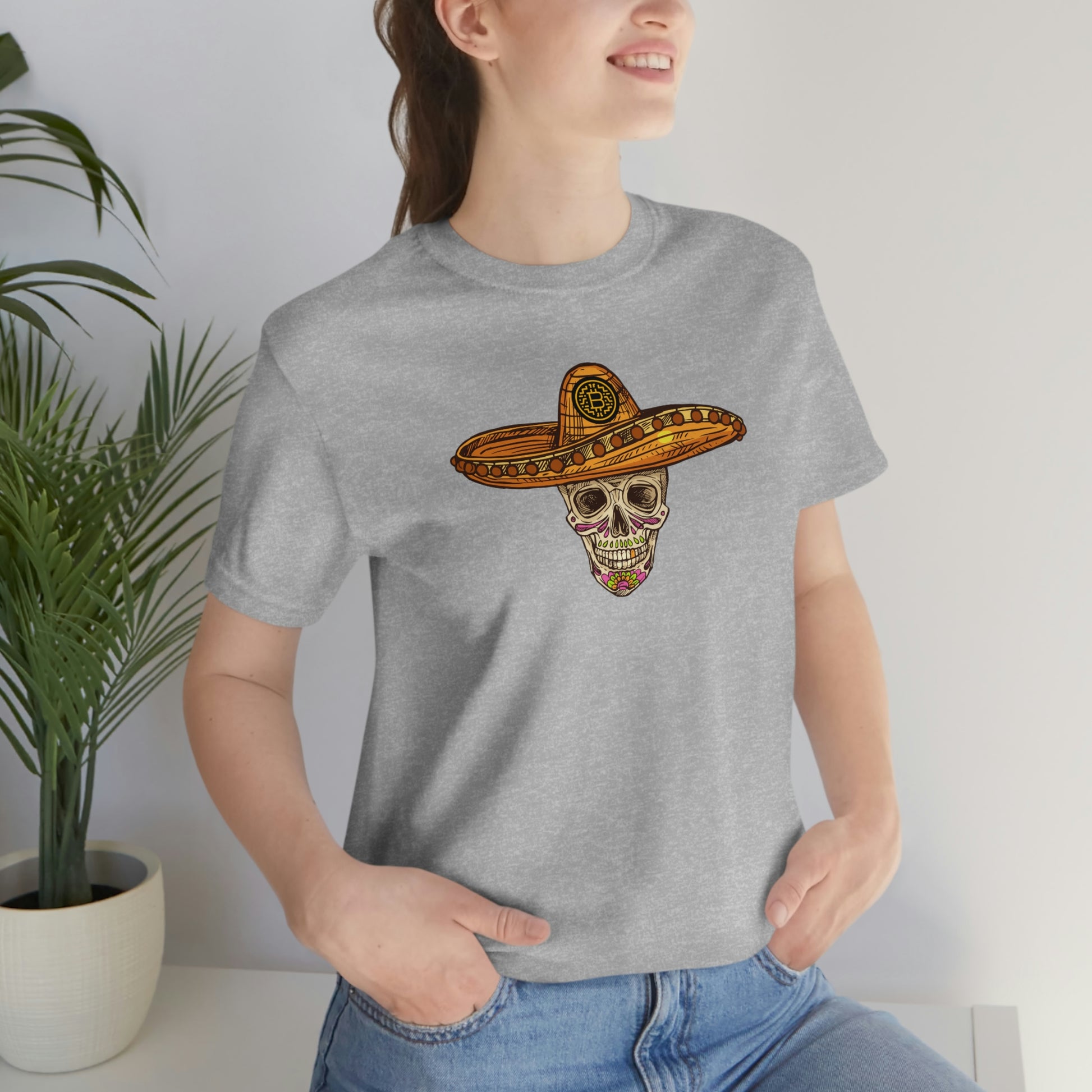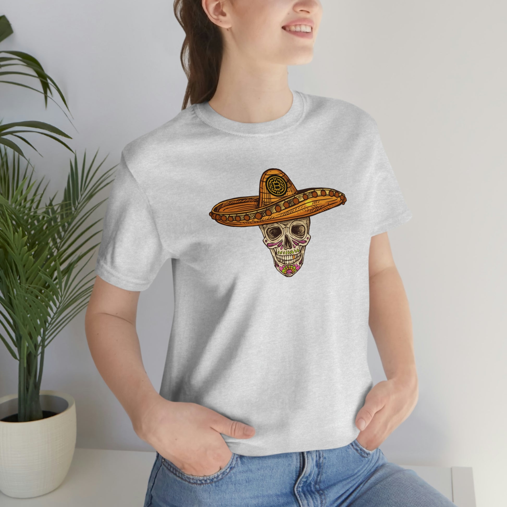 Why not take some of the cool designs celebrating Día de los Muertos and combine them with a creative way to subtly express our conviction or interest in Bitcoin? Yea, that's what we were thinking! hahaha We hope you like these designs. We tried to work in variations of the Bitcoin logo that would compliment the Día de los Muertos skull designs. Who knows...maybe you will attract some fellow orange-pilled individuals along your way and maybe even help to educate others. Ok, well, maybe that's a little deep for a t-shirt - so, anyway, we hope you enjoy these designs!