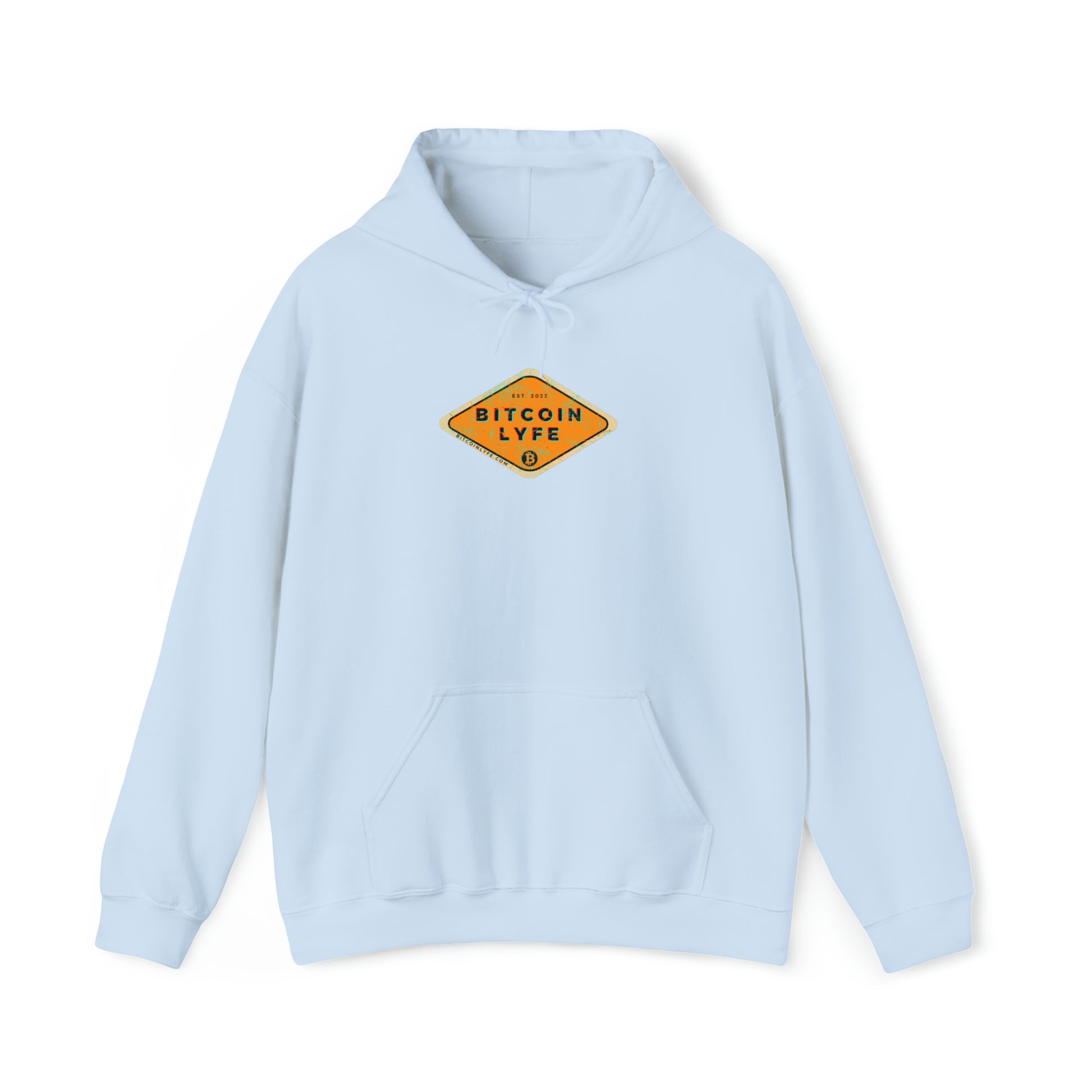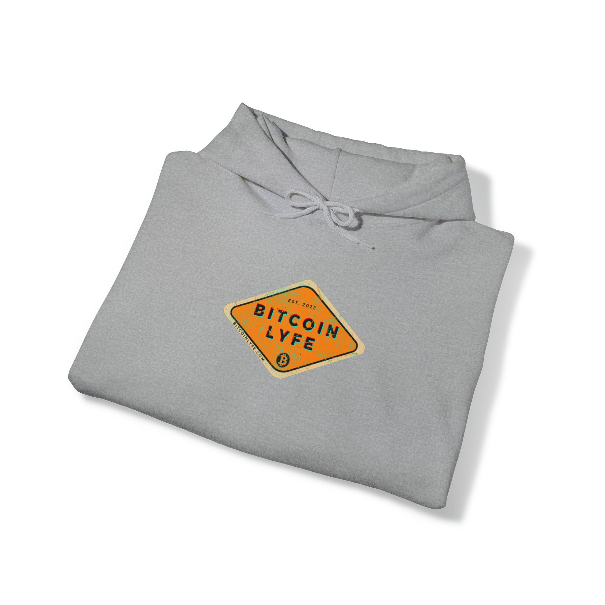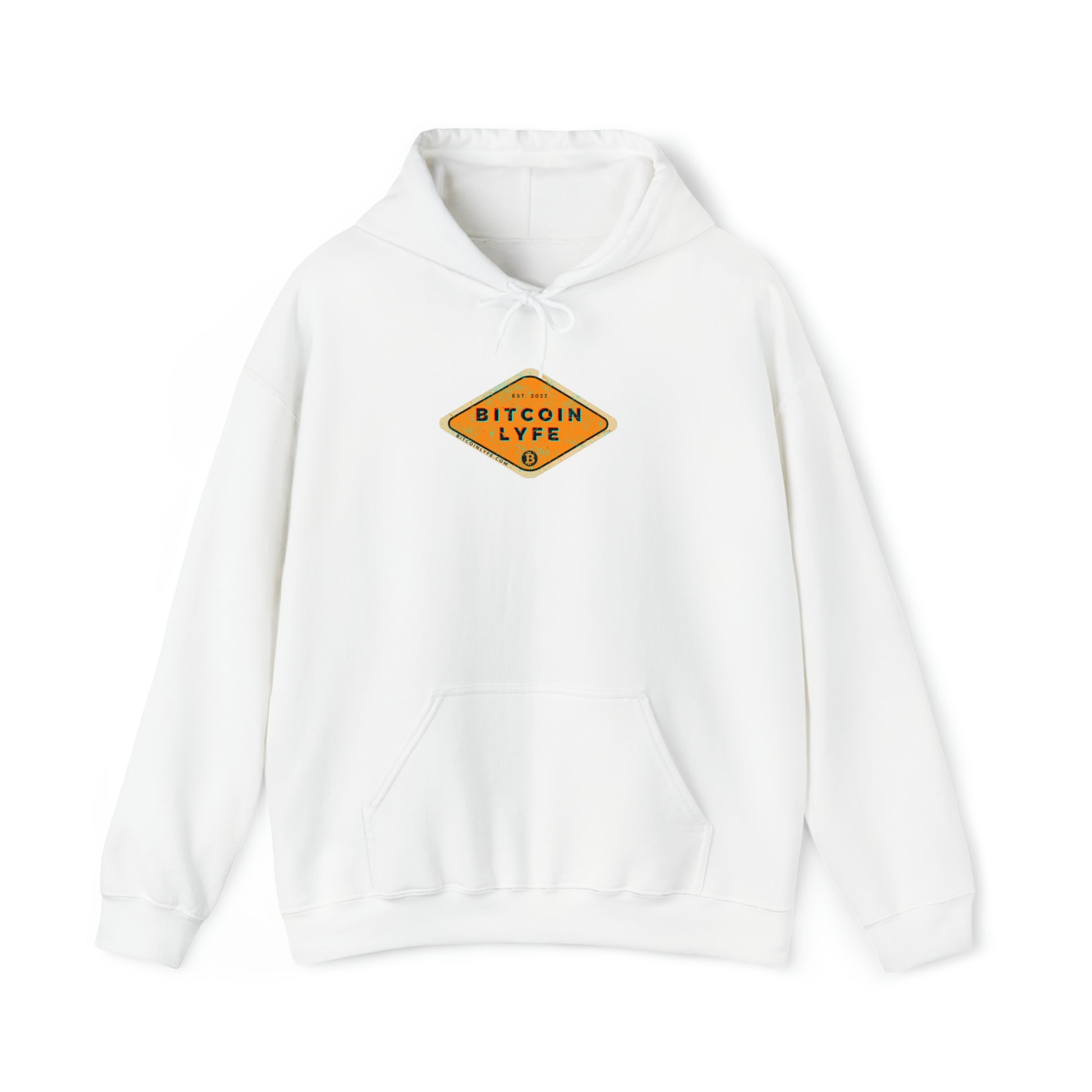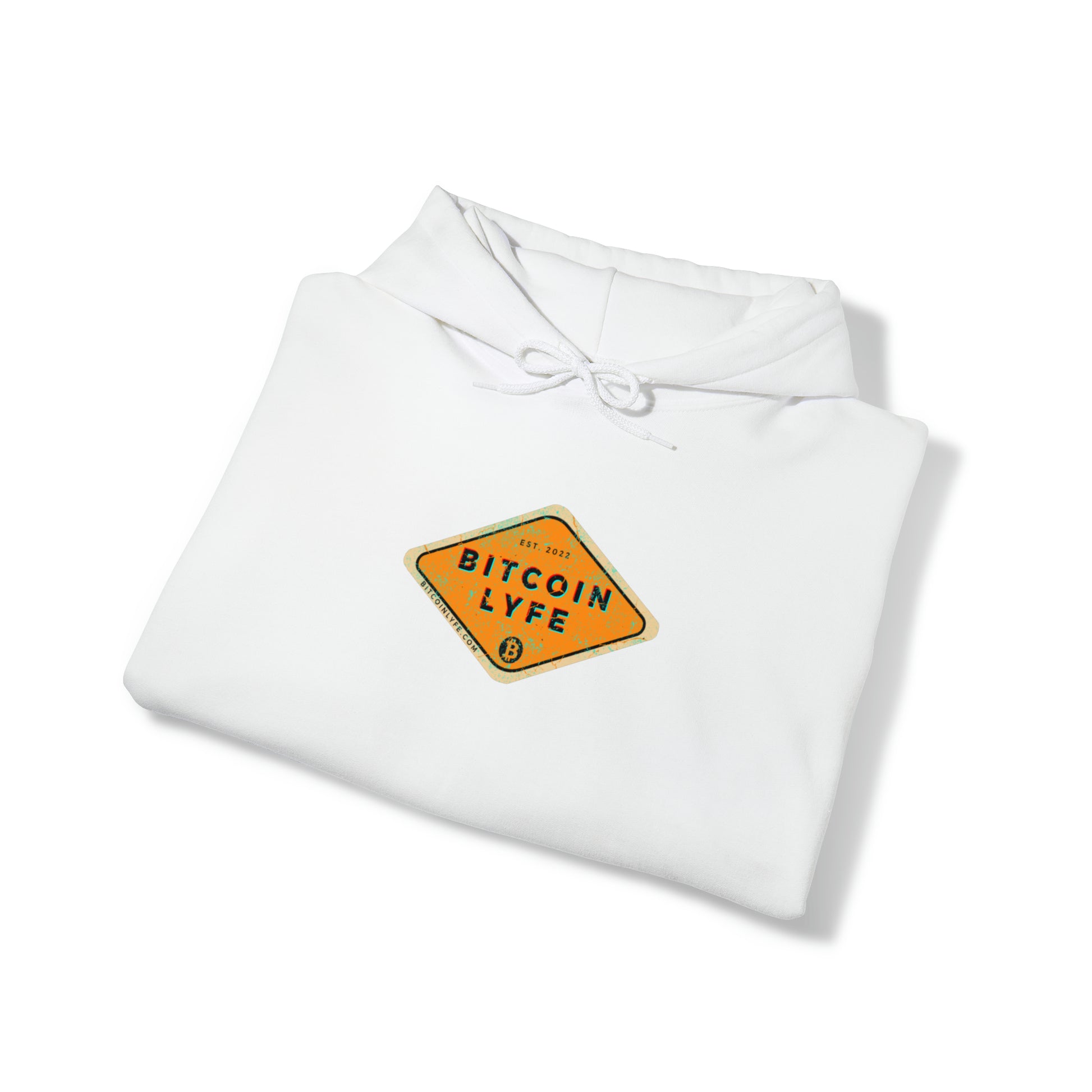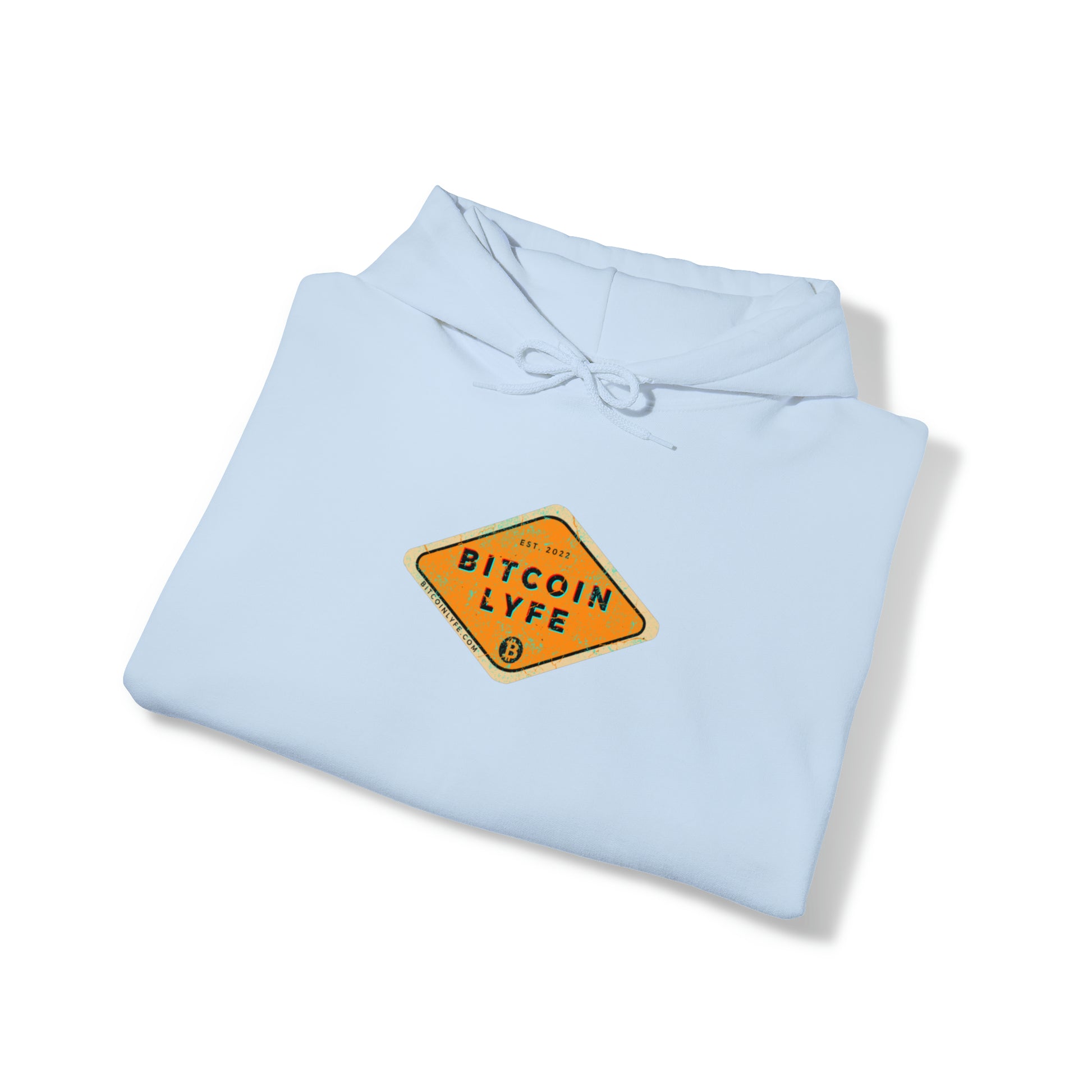 Show your pride in Bitcoin and Bitcoin LYFE with this awesome hoodie with a distressed Bitcoin LYFE logo! This unisex heavy blend hooded sweatshirt is relaxation itself. Made with a thick blend of cotton and polyester, it feels plush, soft and warm, a perfect choice for any cold day. In the front, the spacious kangaroo pocket adds daily practicality while the hood's drawstring is the same color as the base sweater for extra style points.