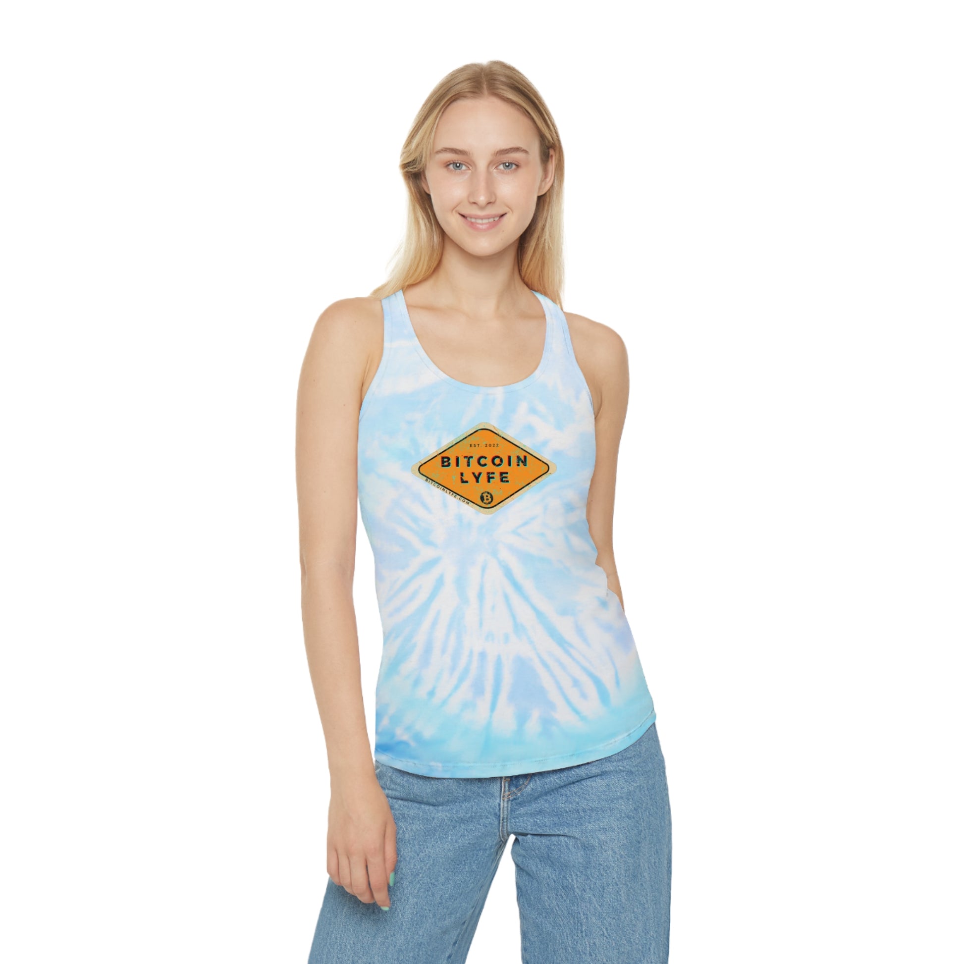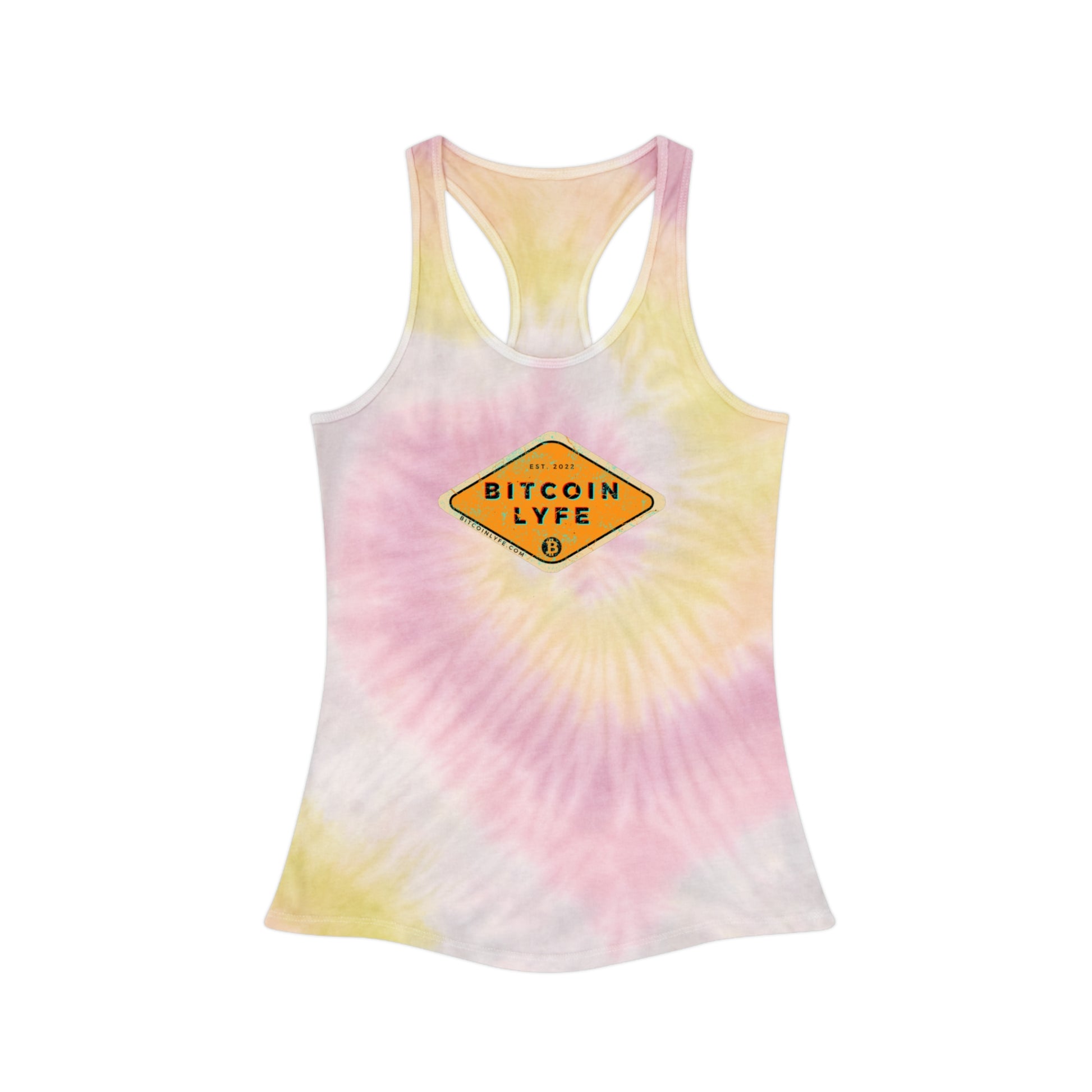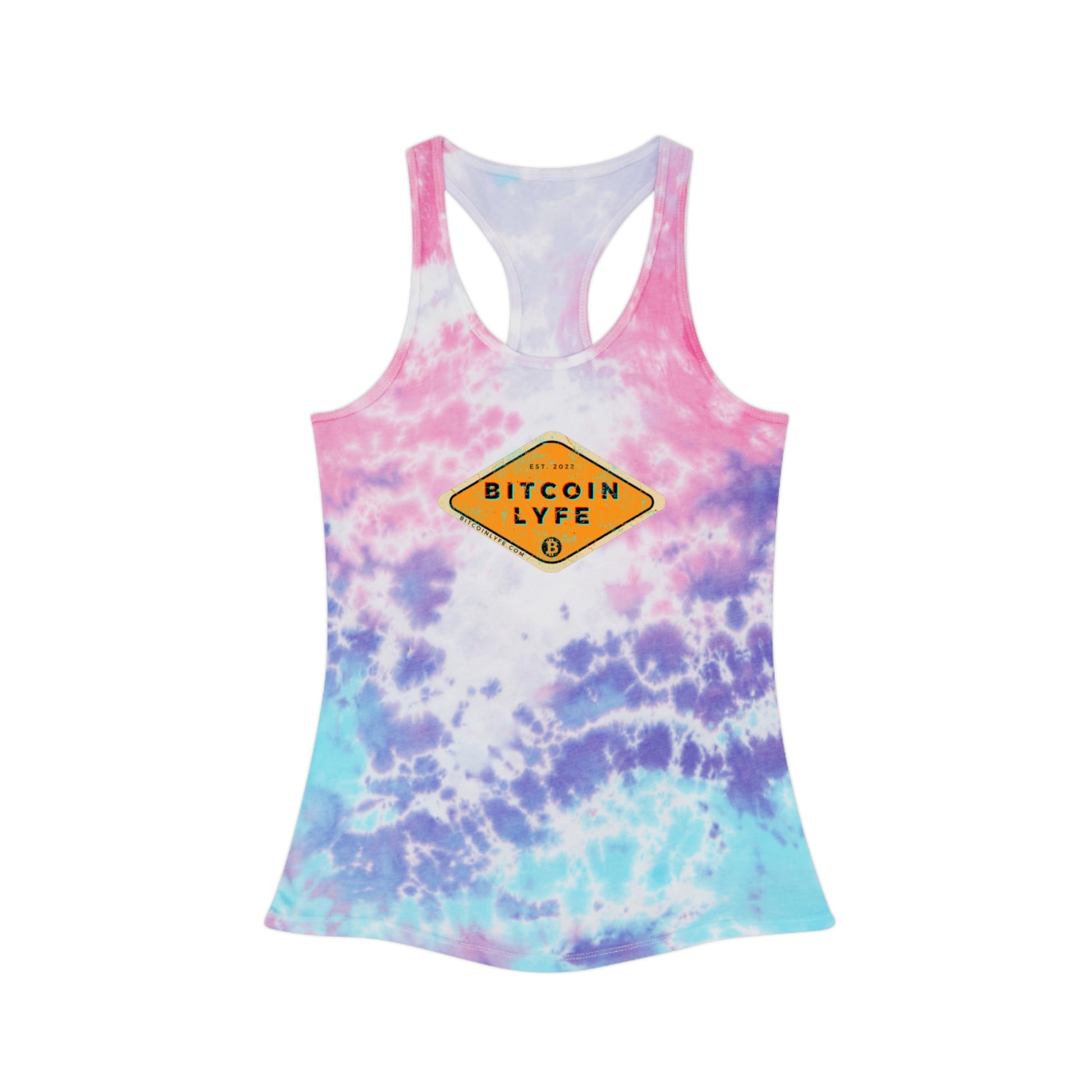 Distressed Bitcoin LYFE Tie Dye Racerback Tank Top