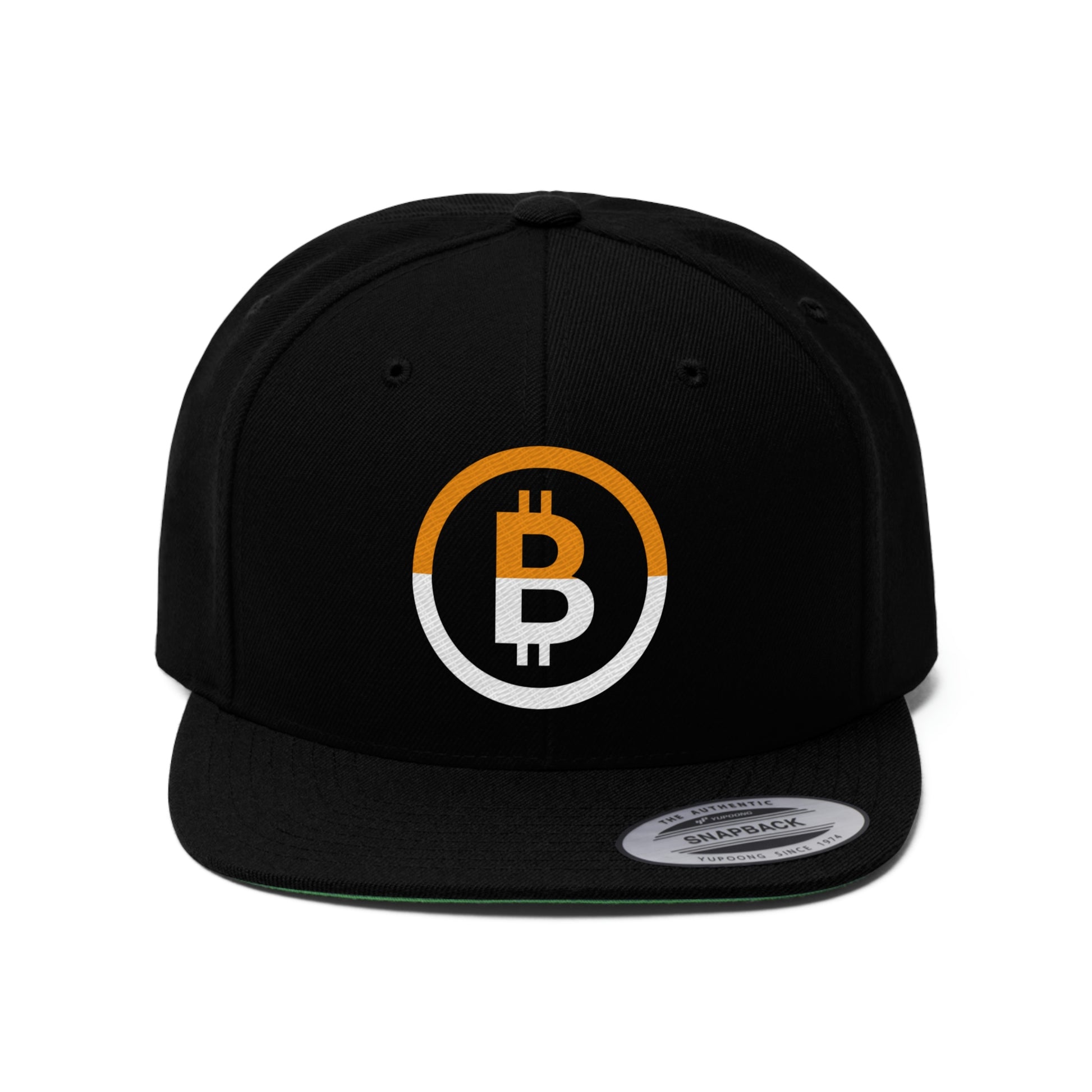 This Bitcoin 6-panel cap is a modern take on a classic design. This hat is the perfect choice thanks to its sharp styling, spirited color and lively green underbill. The old-school snapback closure and iconic flat bill add a subtle charm that takes you back to the good ol’ days ...with BTC laser eyes focused on the future. :-)
