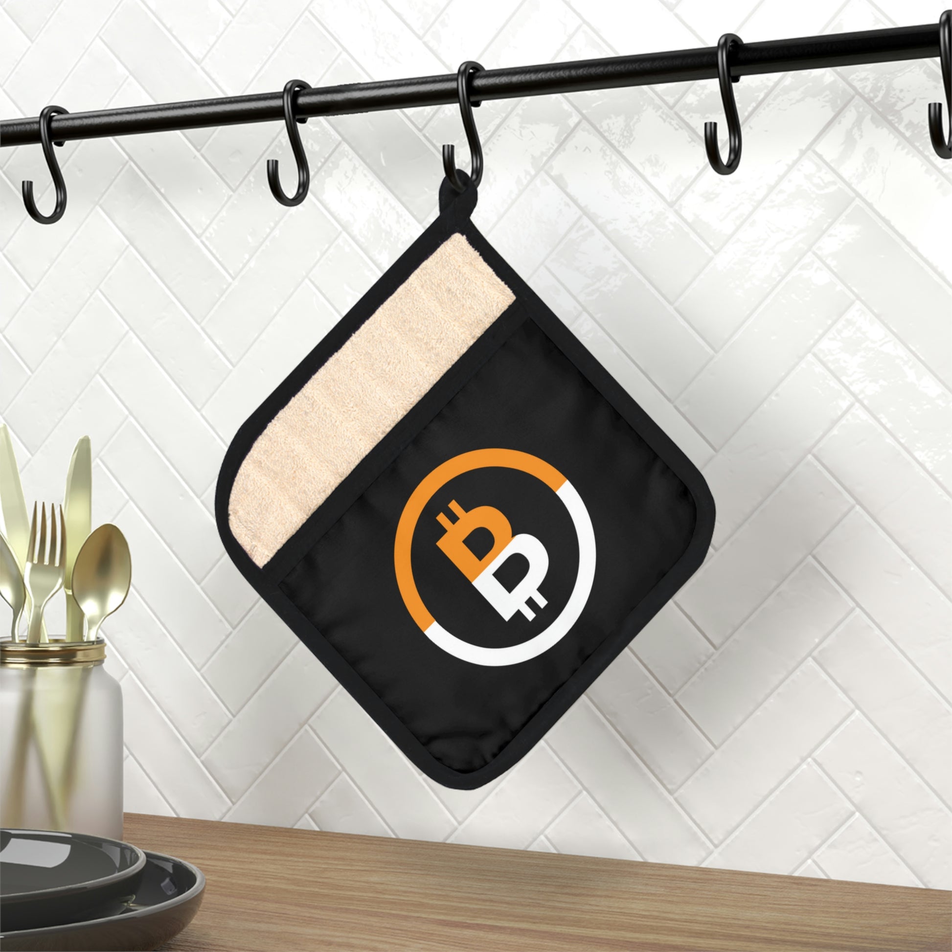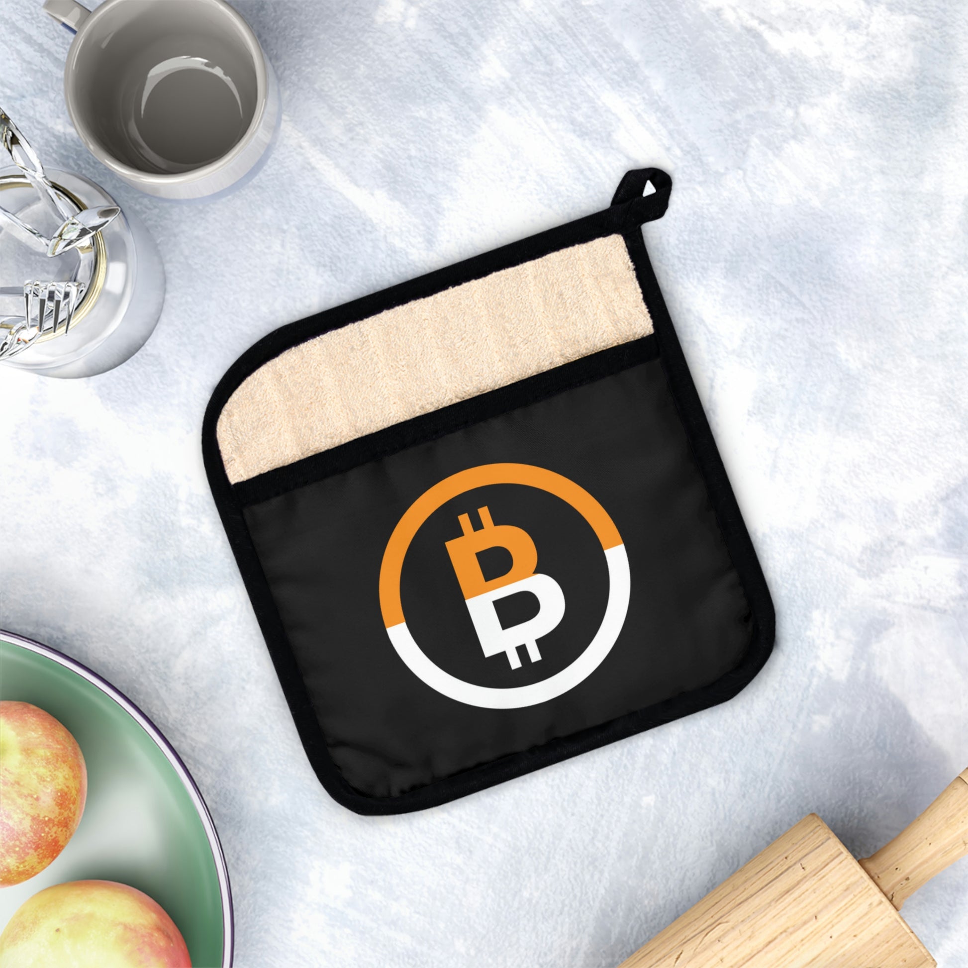 This Bitcoin pot holder was designed to be a stylish kitchen helper that ups any kitchen's decor with a custom flair. Measuring at 9x9 inches in size, it’s perfect for handling hot kitchen pots, or taking out oven trays thanks to its heat resistance of up to 350F. What’s more, the cotton hanging loop allows for convenient storage when not in use.