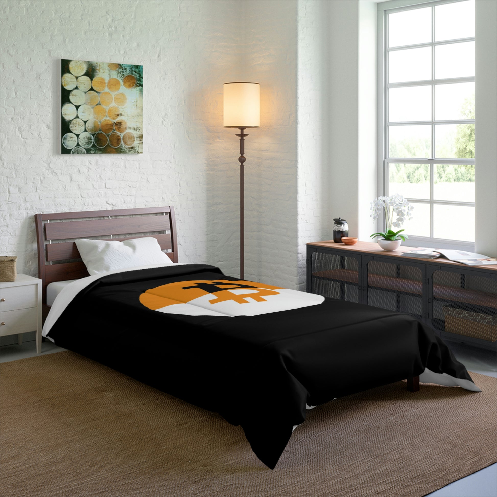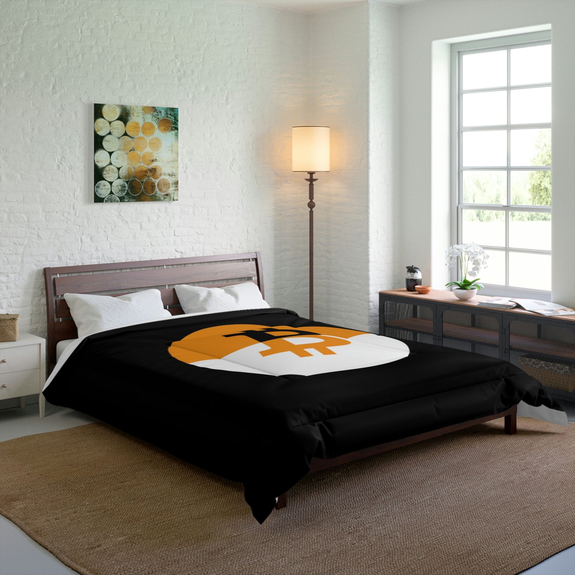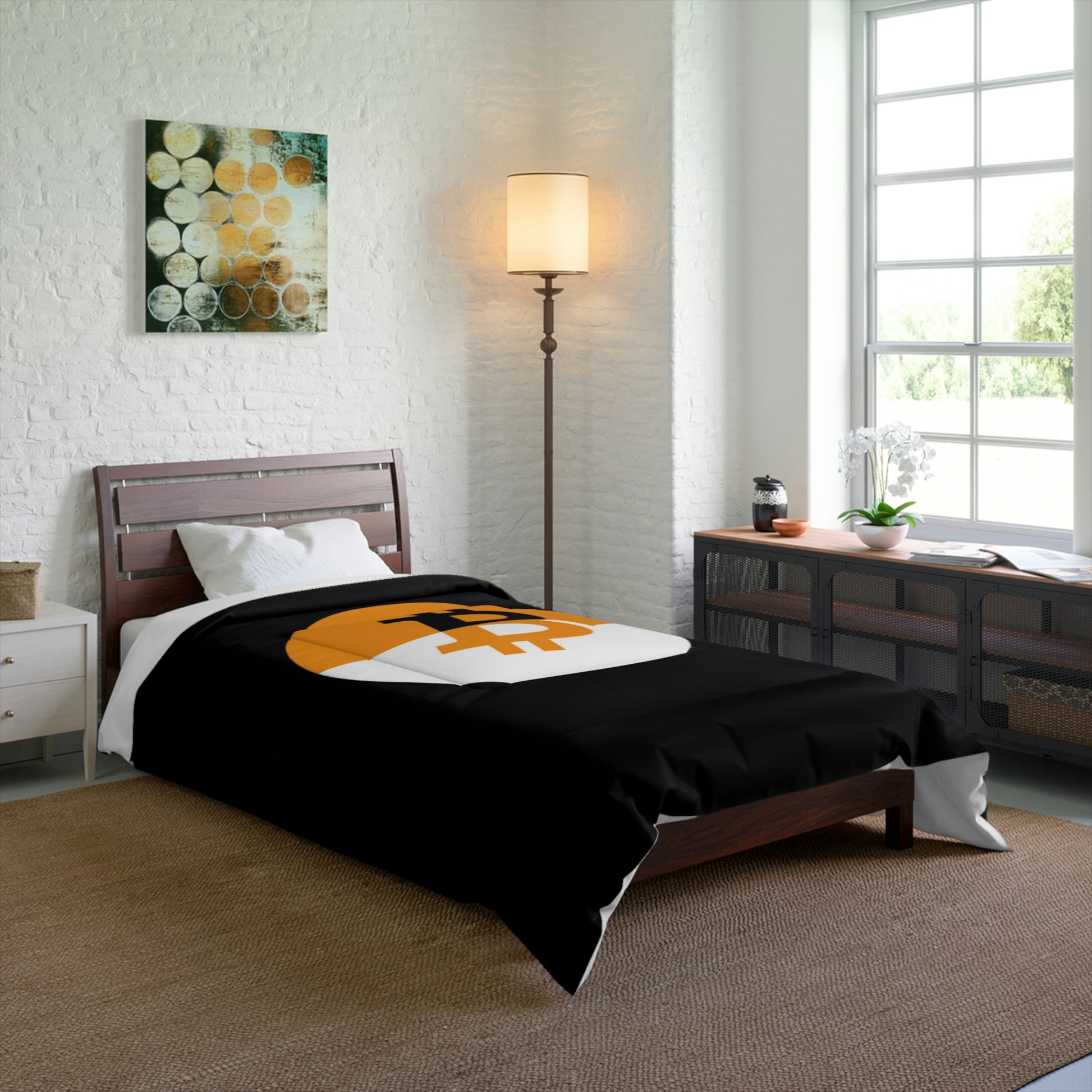 Comfy, fluffy, and warm. Cozy up underneath our snug comforter for a deep and relaxing sleep. This Bitcoin comforter is the perfect solution for cold days in bed with coffee, waiting for the morning light to peak through the window and wake up the house.